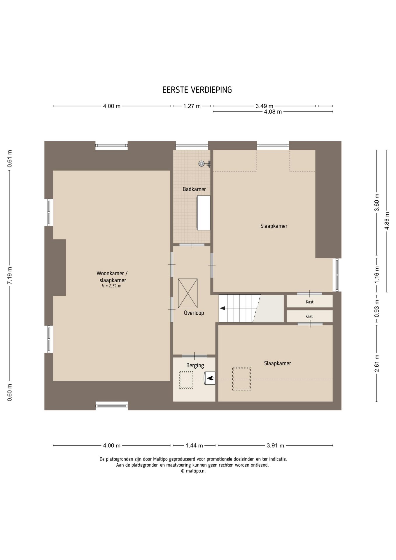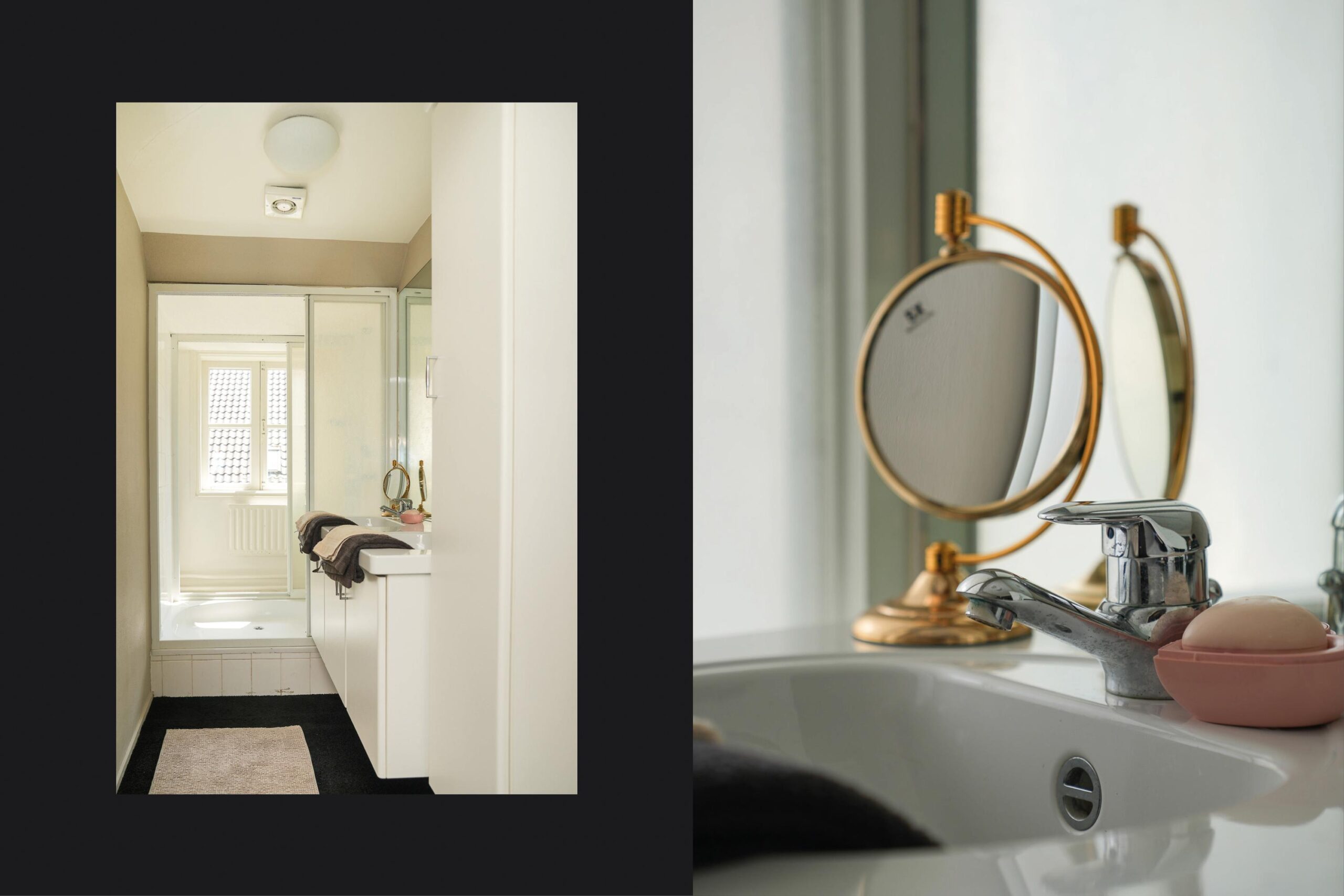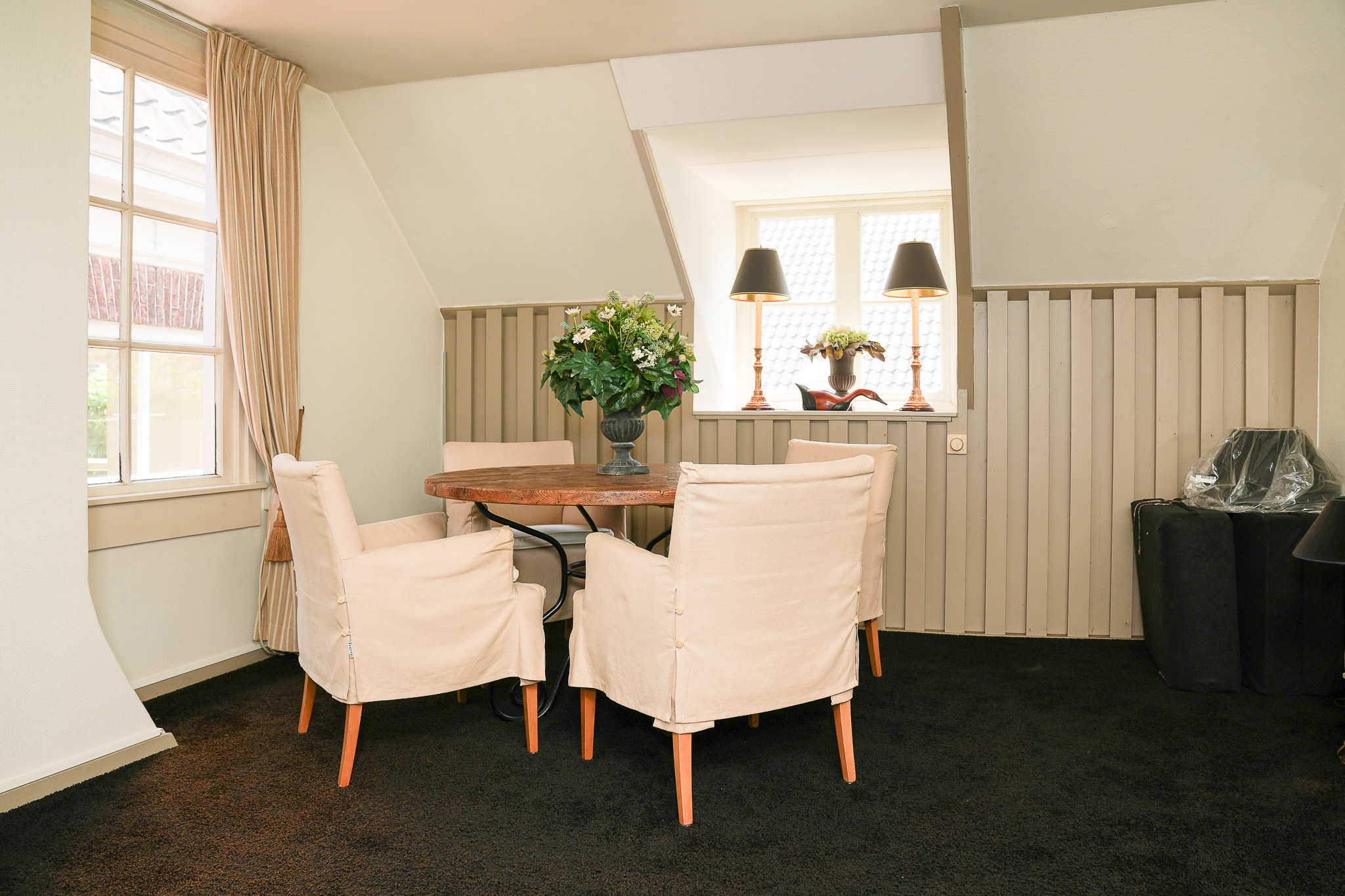 De verdieping telt drie royale en sfeervolle kamers. Eén kamer fungeert momenteel als woonkamer, maar kan eenvoudig verdeeld worden in twee aparte ruimtes: ideaal om het werkgedeelte en woonfunctie strikt te scheiden. Tevens is er een badkamer en een praktische inpandige berging met de nieuwe CV-installatie.