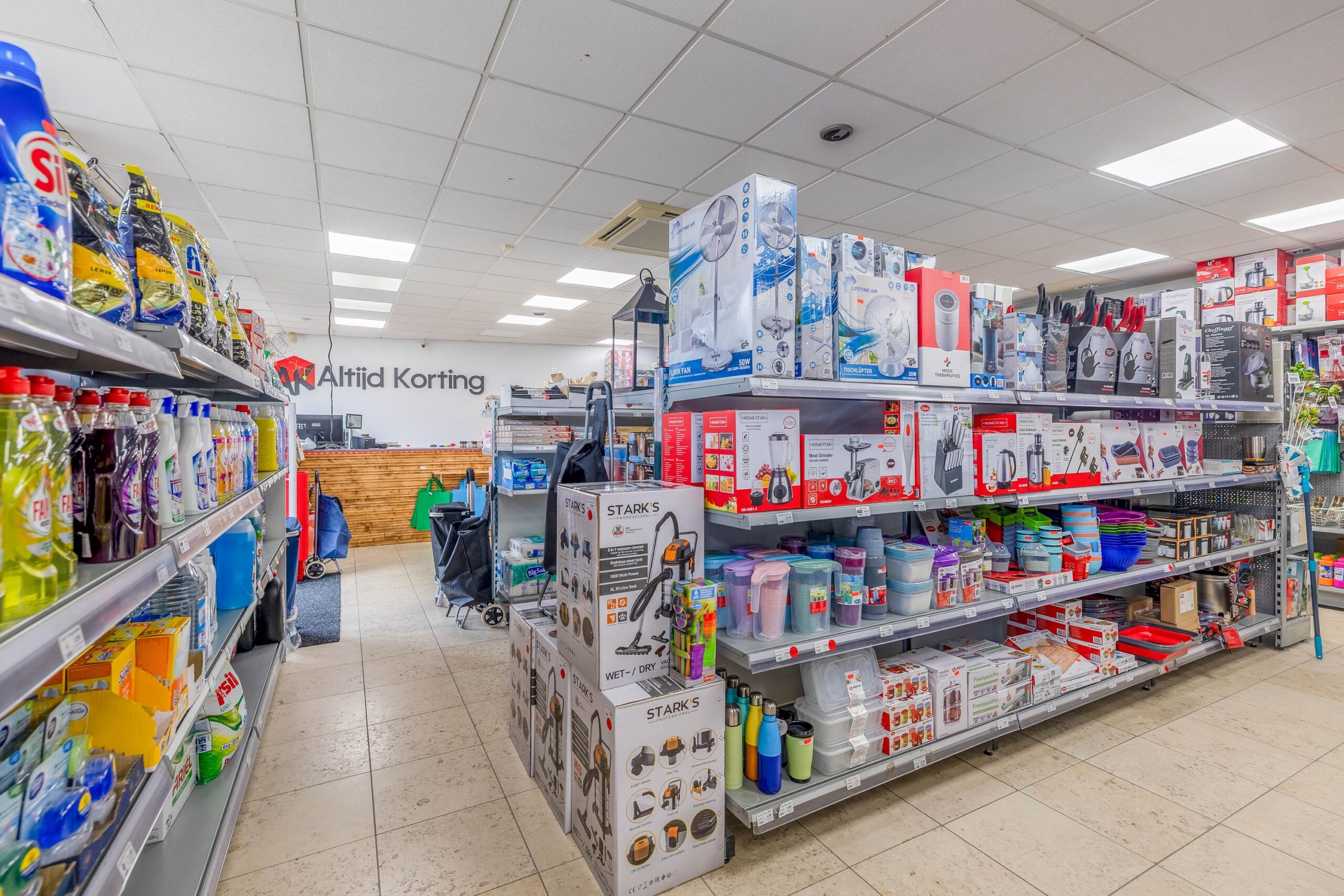 De voorzijde van de winkel beschikt over grote raampartijen welke zorgen voor ruim voldoende daglicht en zichtbaarheid. De winkelruimte beschikt over circa 120 m2 vloeroppervlakte en is voorzien van een systeemplafond met hierin verlichtingspunten verwerkt, een tegelvloer en heeft direct toegang tot het magazijn. In het magazijn is 1 grote opslag beschikbaar en 2 aparte bergruimtes, daarnaast bevindt zich hier de pantry welke voorzien is van een spoelbak en is er een toilet met fonteintje aanwezig. De entree is voorzien van een rolluik en de etalage beschikt over zonwering.