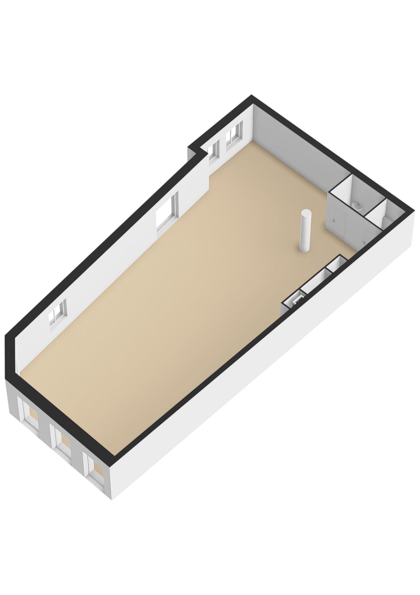 Wanneer u op de hoek van het pand bent, bevindt zich hier de entree van de te huur aangeboden ruimte. De ruimte wordt opgeleverd met een warmtepomp, WTW-unit, cementdekvloer inclusief vloerverwarming en een groepenkast met hoofdschakelaar en 1 groep voor wandcontactdozen met 11 wandcontactdozen. Verder is de ruimte een open ruimte zo is er dus alle flexibiliteit om de ruimte in te delen en geheel naar eigen wens af te (laten) werken.