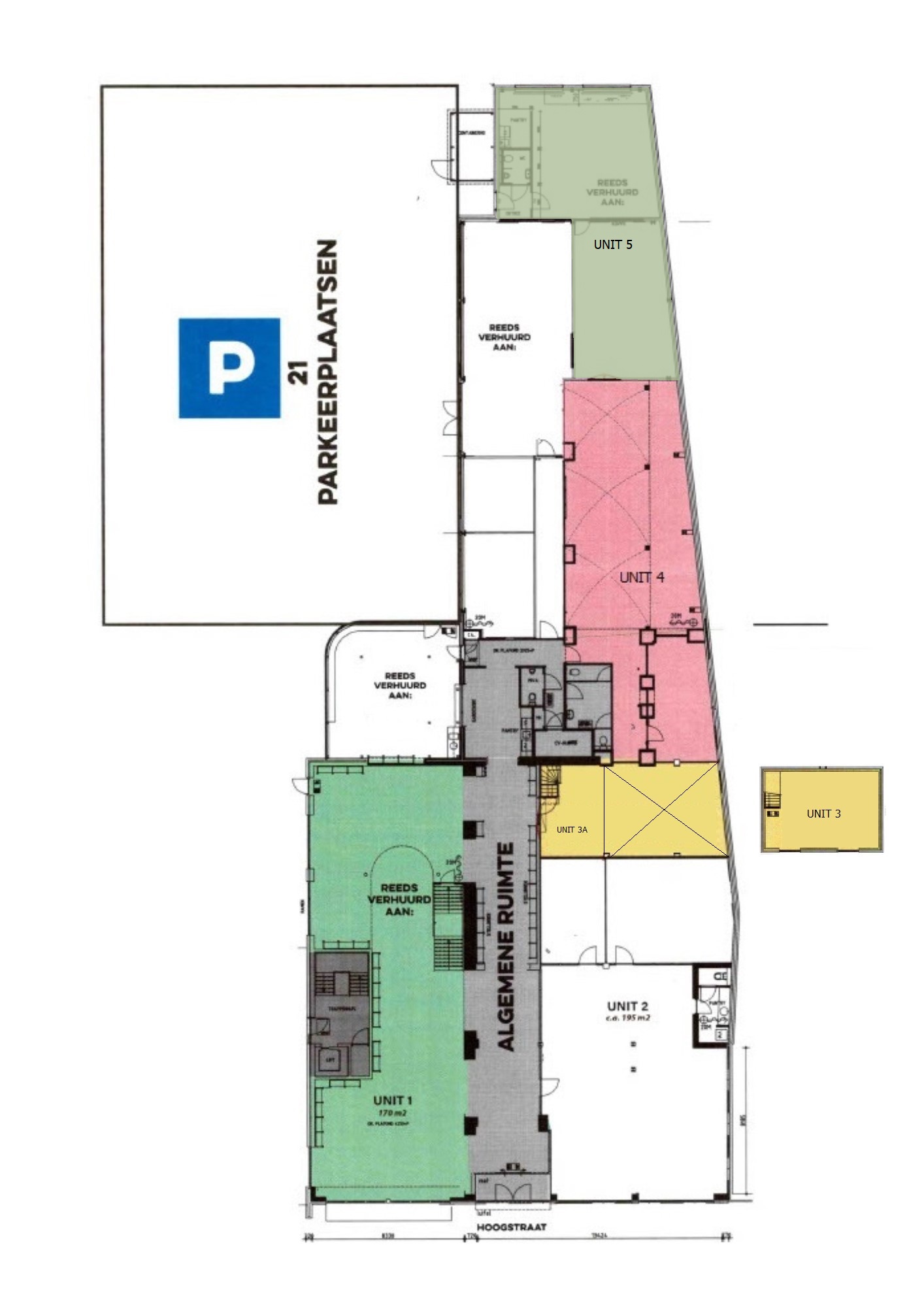 Unit 5 is op de begane grond gelegen aan de achterzijde van het pand. Wanneer u op het parkeerterrein bent, kunt u de eigen entree gebruiken voor deze kantoorruimte. De kantoorruimte beschikt over 2 aparte ruimtes, een welke op dit moment dienst doet als kantoor en de ander als vergaderruimte. Vanuit de huidige kantoorruimte heeft u toegang tot de pantry. Daarnaast is er ook een ruime toiletruimte beschikbaar. Deze unit beschikt over een eigen alarmsysteem, koeling en verwarming.