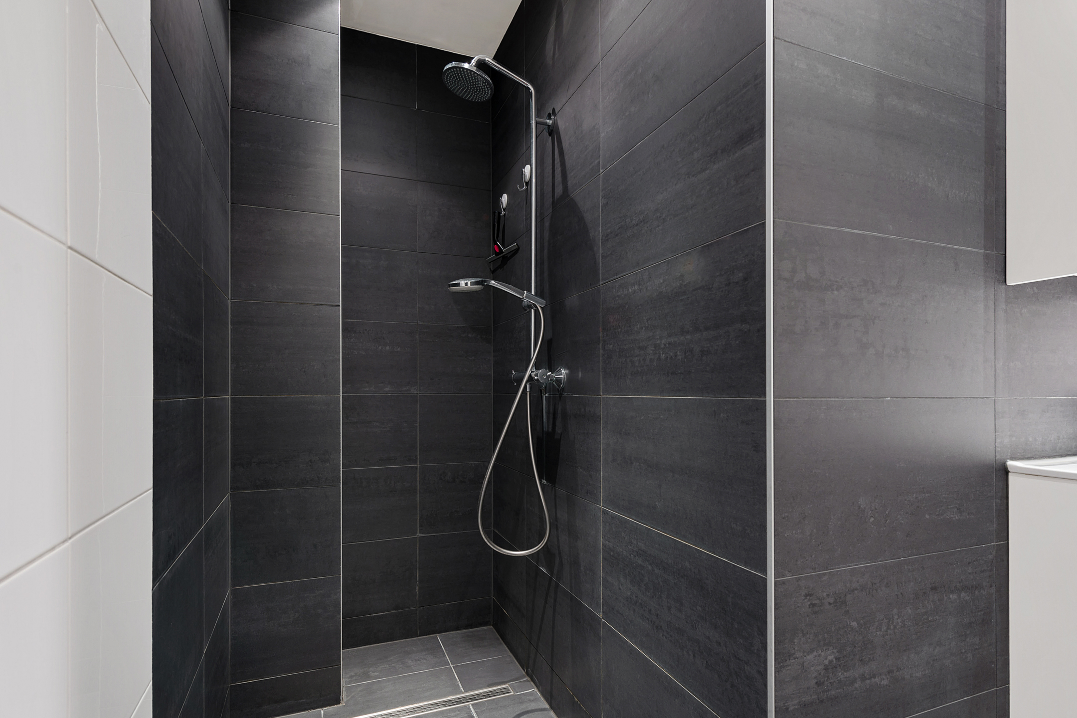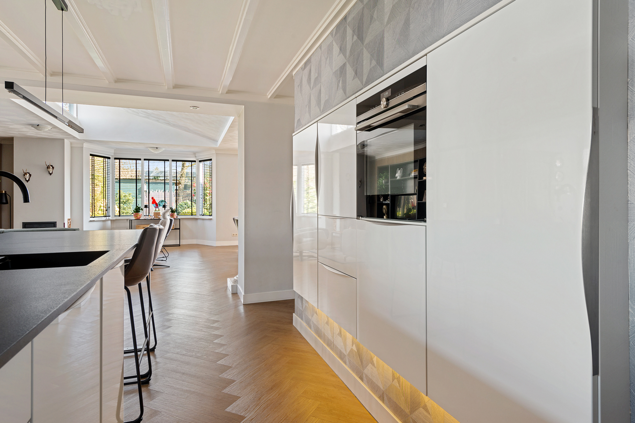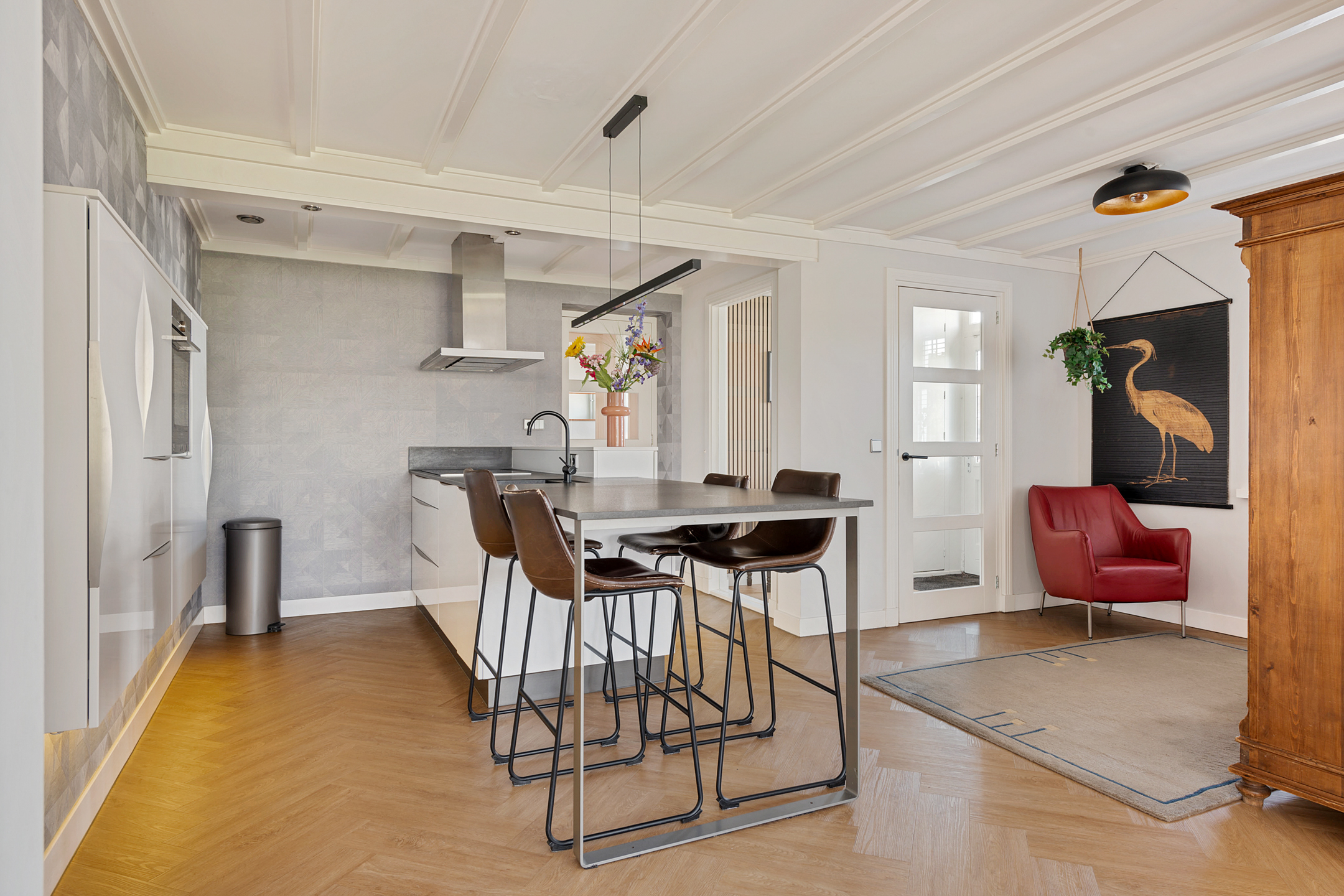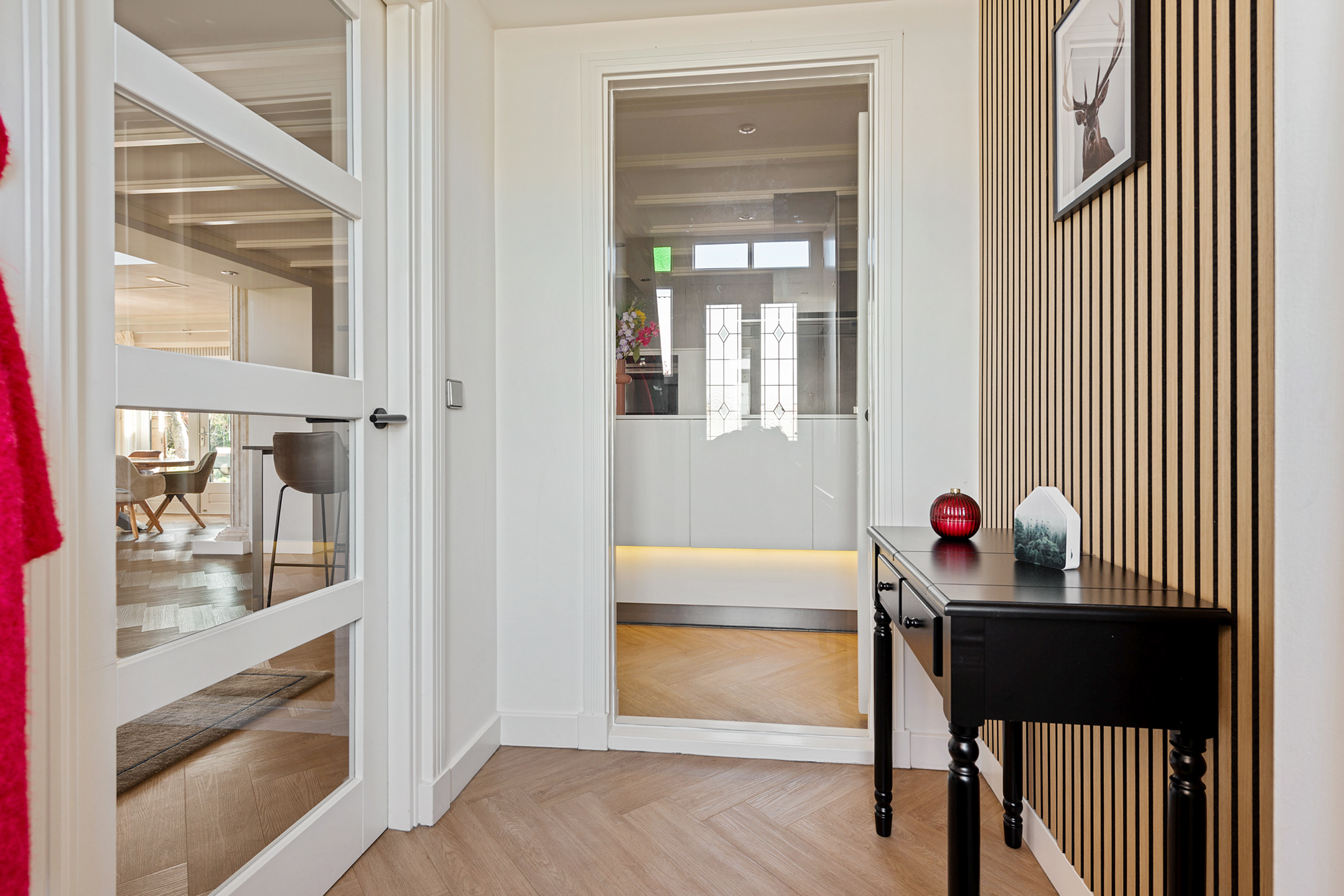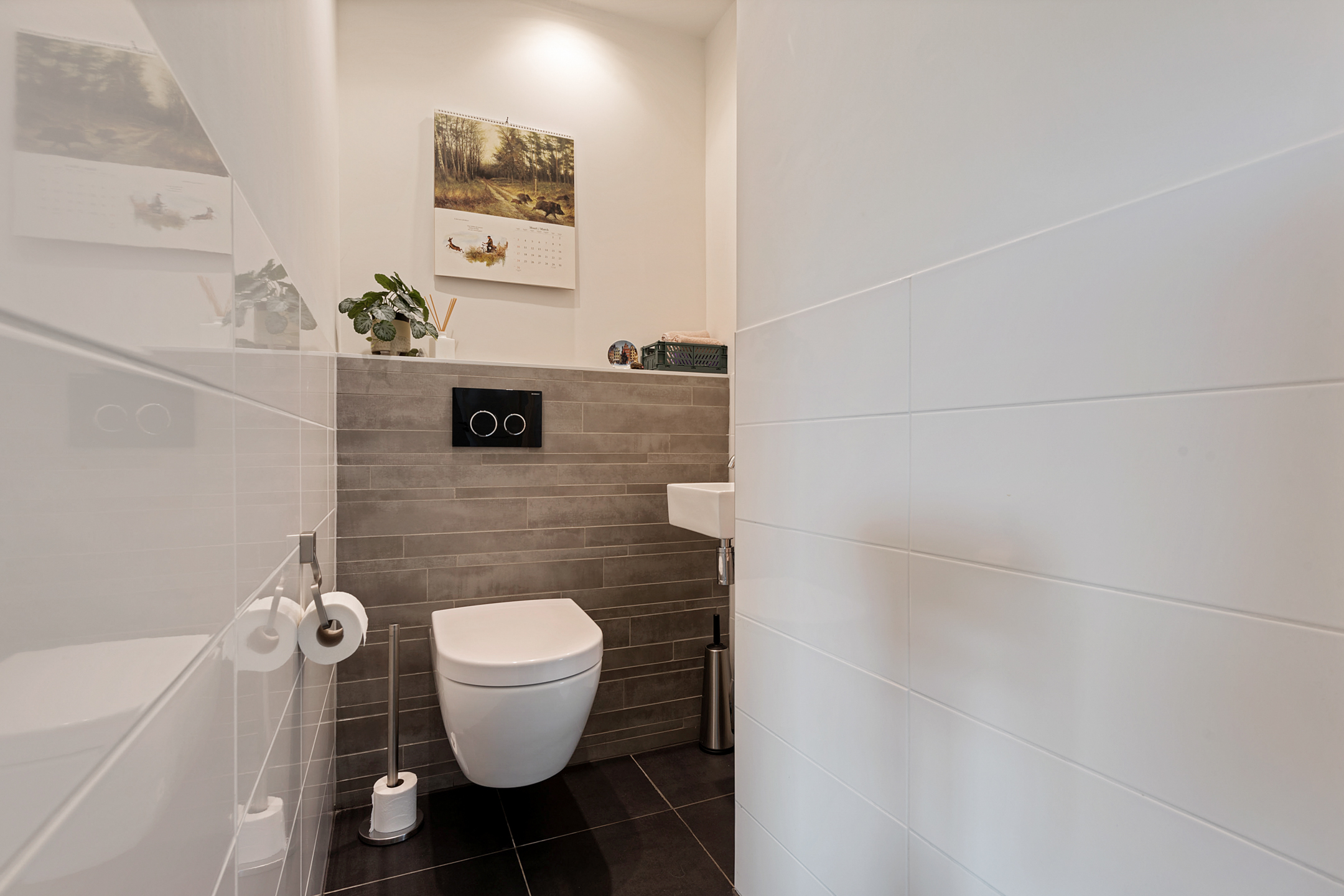 In de hal bevindt zich de meterkast (verdeler in de bedrijfsruimte) en de toegang tot de royale L-vormige woonkamer. De woonkamer is fraai afgewerkt met strak stucwerk op wanden en plafond en een PVC-vloer met comfortabele vloerverwarming. Een erker zorgt voor een prettig tuincontact en veel lichtinval. Daarnaast zorgt een pelletkachel voor extra sfeer en warmte. Aansluitend bereikt u de tuinkamer, die is voorzien van een lichtstraat, heater en een glazen wand. De open keuken bestaat uit een rechte kastenwand en een kookeiland met een bar. De keuken is voorzien van een inductiekookplaat, koelkast, combi-oven/magnetron en een vaatwasser. De hoofdslaapkamer is netjes afgewerkt met stucwerk wanden en plafond en vloerbedekking. Deze kamer beschikt over een inloopkast, kunststof kozijnen en airconditioning. Slaapkamer 2 is voorzien van een laminaatvloer en slaapkamer 3 beschikt over openslaande tuindeuren. Daarnaast zijn er twee een multifunctionele ruimtes die kunnen dienen als speelkamer, kantoor aan huis of als doorgang naar de bedrijfsruimte. In een tussenportaal met toegang tot diverse vertrekken bevindt zich de toiletruimte. De badkamer is volledig betegeld en voorzien van een badkamermeubel met wastafel, een inbouwcloset, douche, designradiator en mechanische ventilatie. Vanuit zowel de woning als de bedrijfsruimte is de verdieping bereikbaar. Deze wordt momenteel gebruikt als een ruime bergzolder.