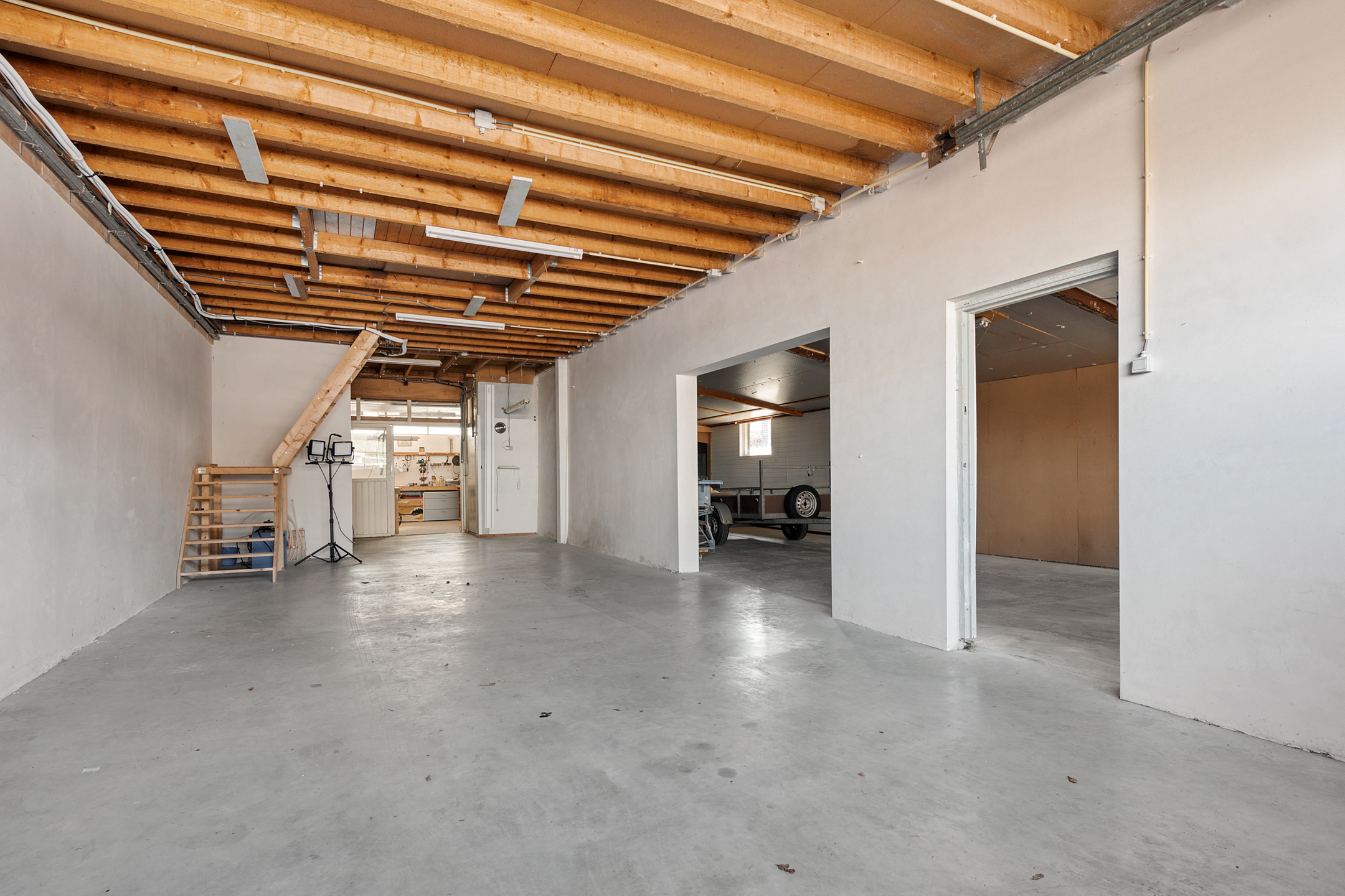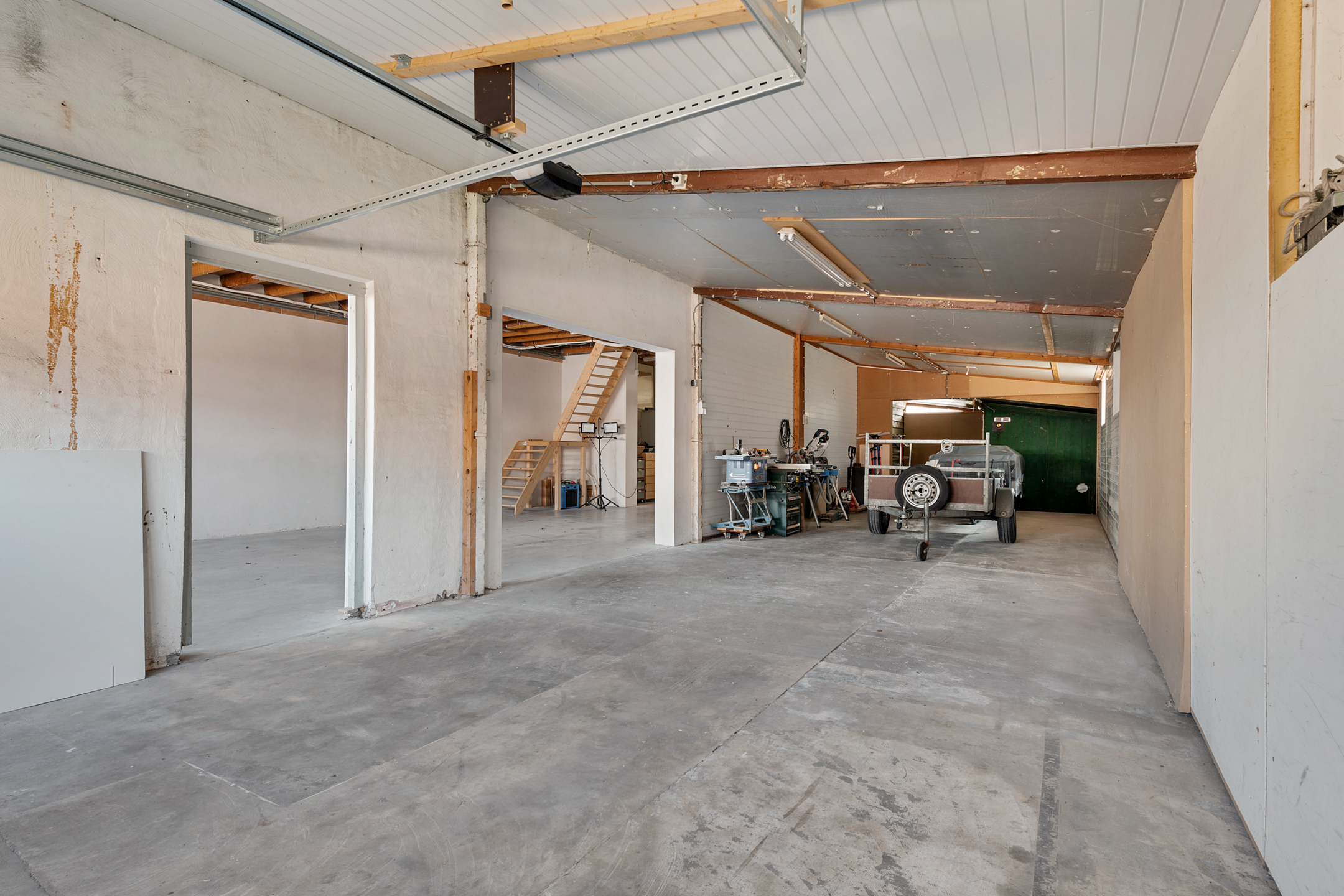 De bedrijfsruimte is toegankelijk via twee overheaddeuren, diverse loopdeuren en inpandig vanuit de woning. De ruimte bestaat uit meerdere compartimenten en voorzieningen, waardoor deze geschikt is voor bedrijven in uiteenlopende sectoren. Naast de bedrijfshal, die is voorzien van krachtstroom, voorbereidingen voor verwarming, de omvormer voor 16 zonnepanelen, de cv-installatie en een zware betonvloer, zijn er ook een sanitaire ruimte en een grote bergruimte aanwezig. Het bestemmingsplan valt onder Bedrijventerrein – 2 en biedt diverse mogelijkheden voor het vestigen van onder andere een kantoor, opslagruimte, detailhandel, dienstverlening, maatschappelijke voorzieningen en consumentgerichte activiteiten.