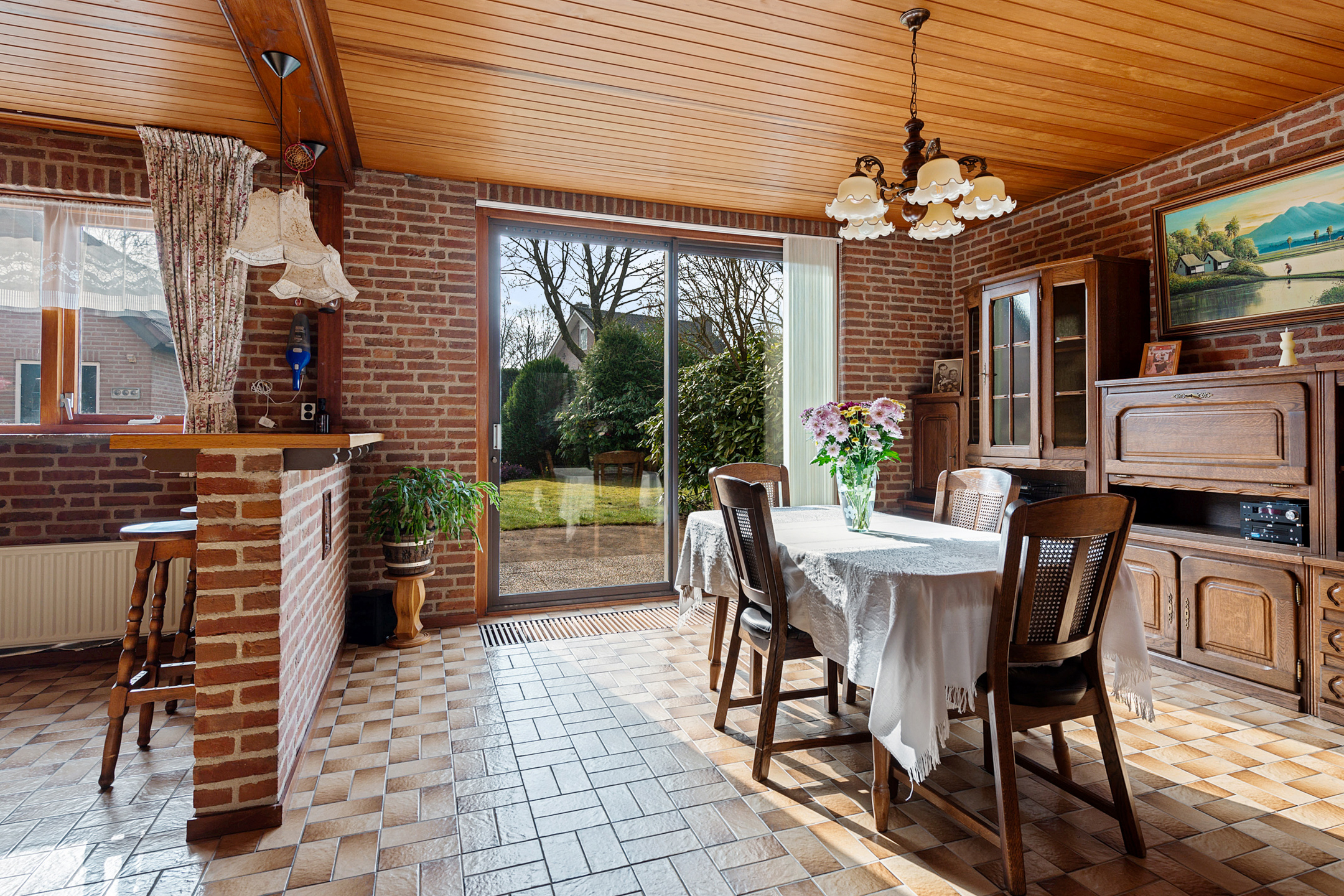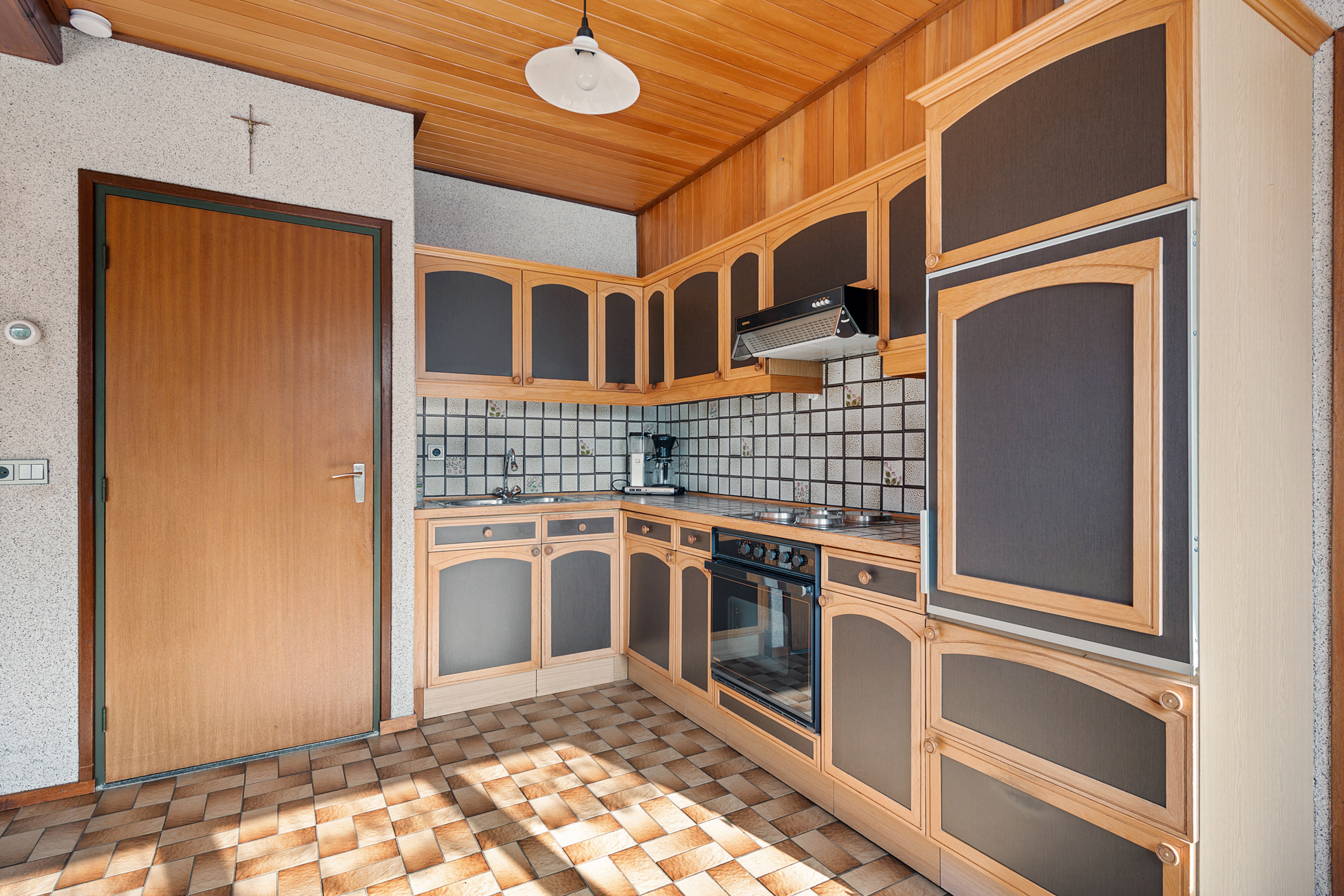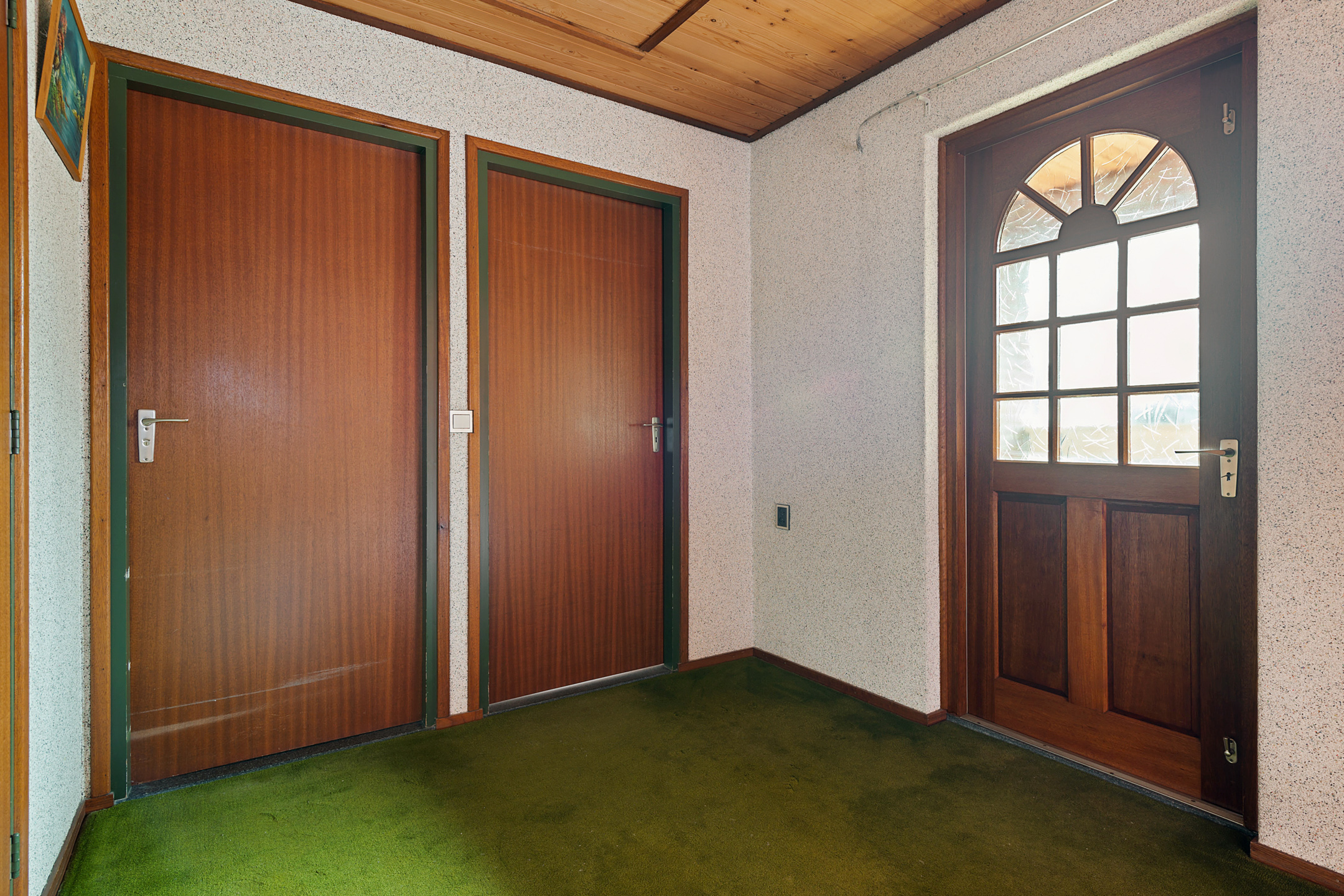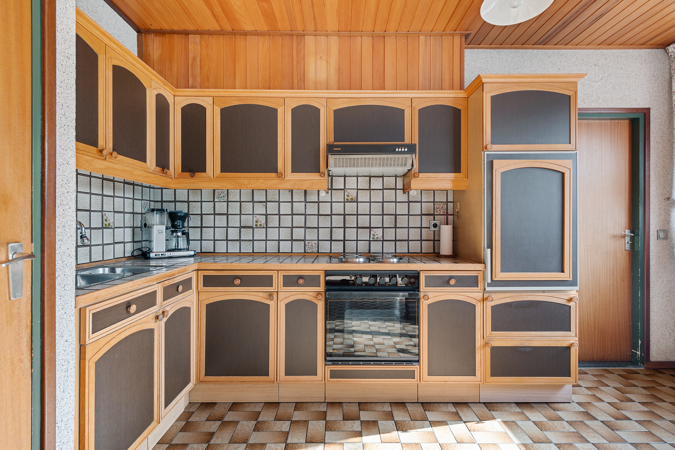 Begane grond: U betreedt de woning via de hal met een ruime garderobenis en toegang tot de woonkamer. De L-vormige woonkamer kenmerkt zich door veel lichtinval dankzij de grote raampartijen en de schuifpui aan de achterzijde, die direct toegang geeft tot de tuin. De open haard vormt een sfeervol middelpunt van de ruimte. De halfopen keuken is voorzien van een groot L-vormig massief houten keukenmeubel met een gaskookplaat, afzuigkap, 1½ spoelbak, oven en koelkast. Daarnaast beschikt de keuken over een praktische vaste kast voor het opbergen van proviand. In het portaal aan de achterzijde vindt u de achterom, een bergkast met de cv-installatie en de toiletruimte met closet en fonteintje.