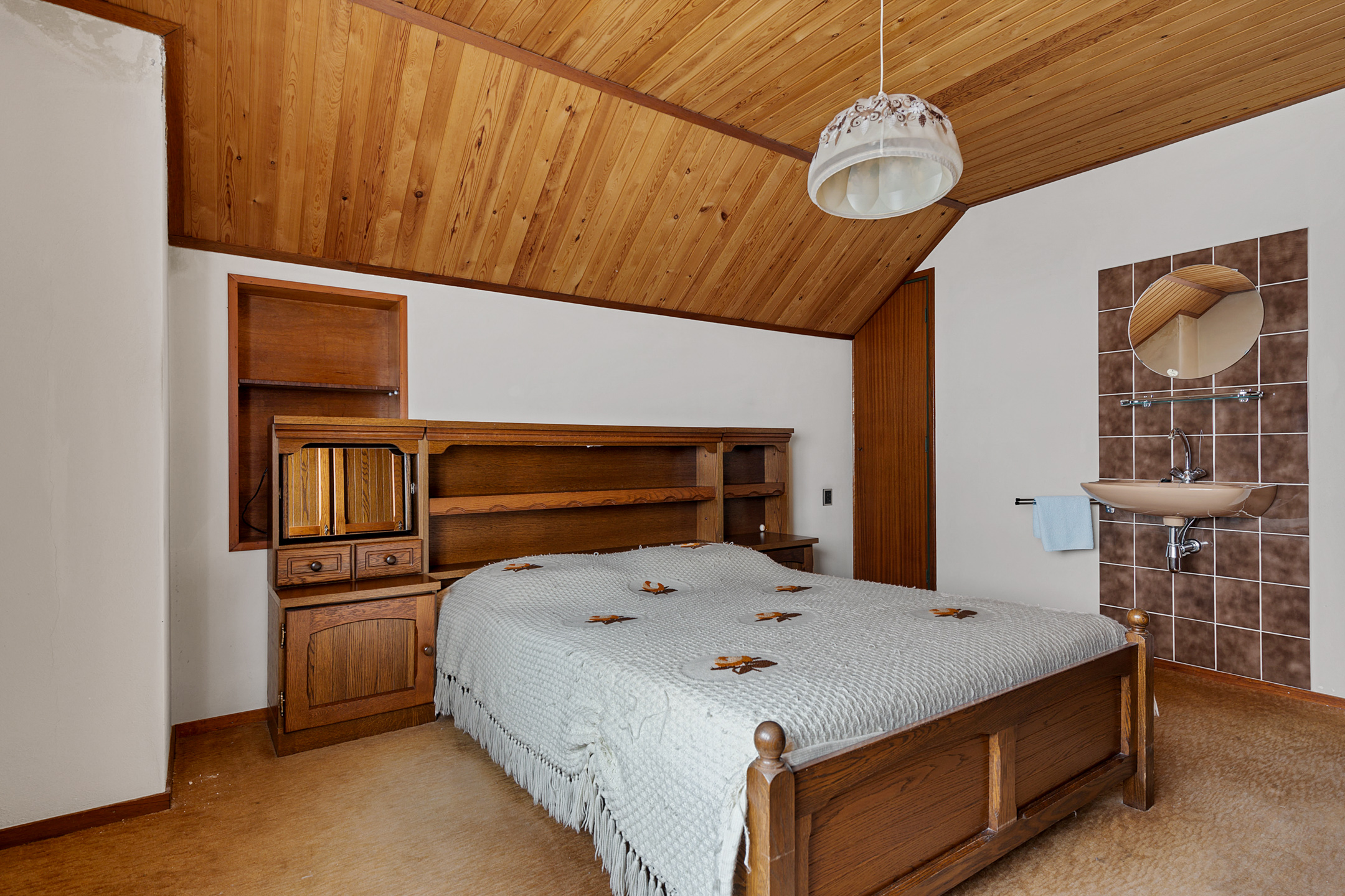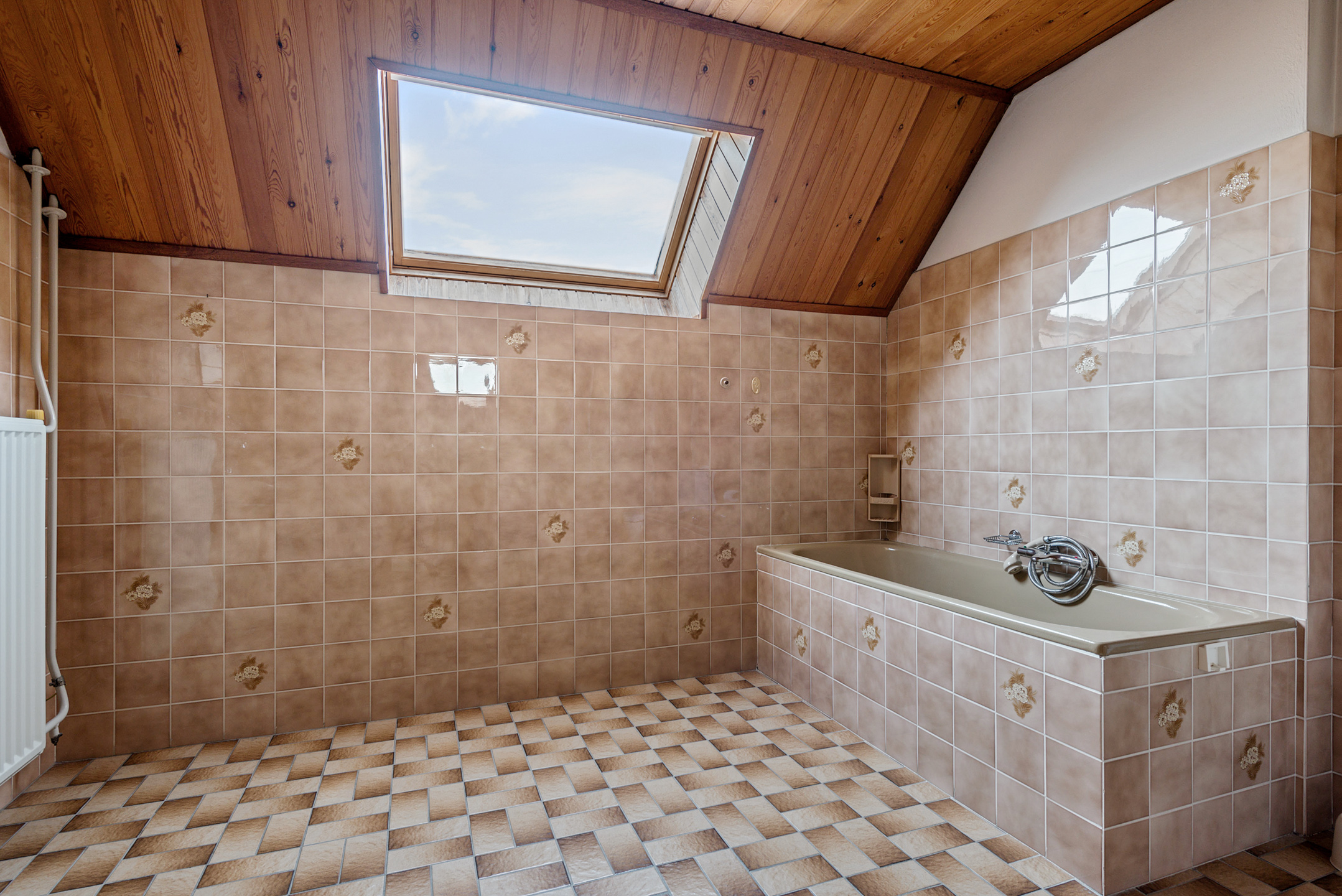 Eerste verdieping: Vanaf de overloop heeft u toegang tot drie slaapkamers, de badkamer, de wasruimte en een balkon. De badkamer is compleet uitgerust met een ligbad, douche, toilet en een badkamermeubel met wastafel. Een groot dakraam zorgt voor prettig daglicht en natuurlijke ventilatie. De slaapkamers zijn voorzien van schoonmetselwerk, stucwerk, houten plafonds en vloerbedekking. De hoofdslaapkamer beschikt over een eigen wastafel.