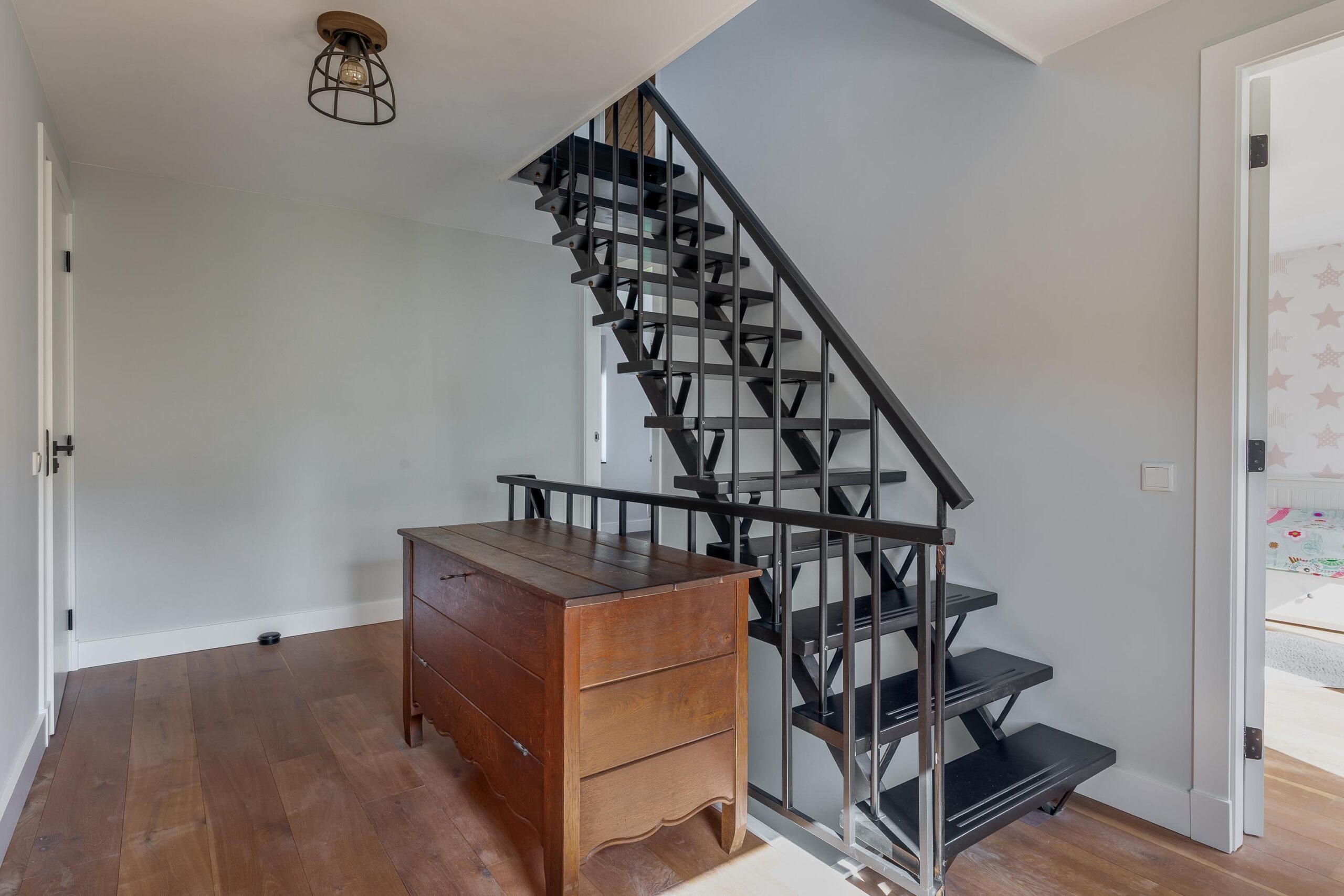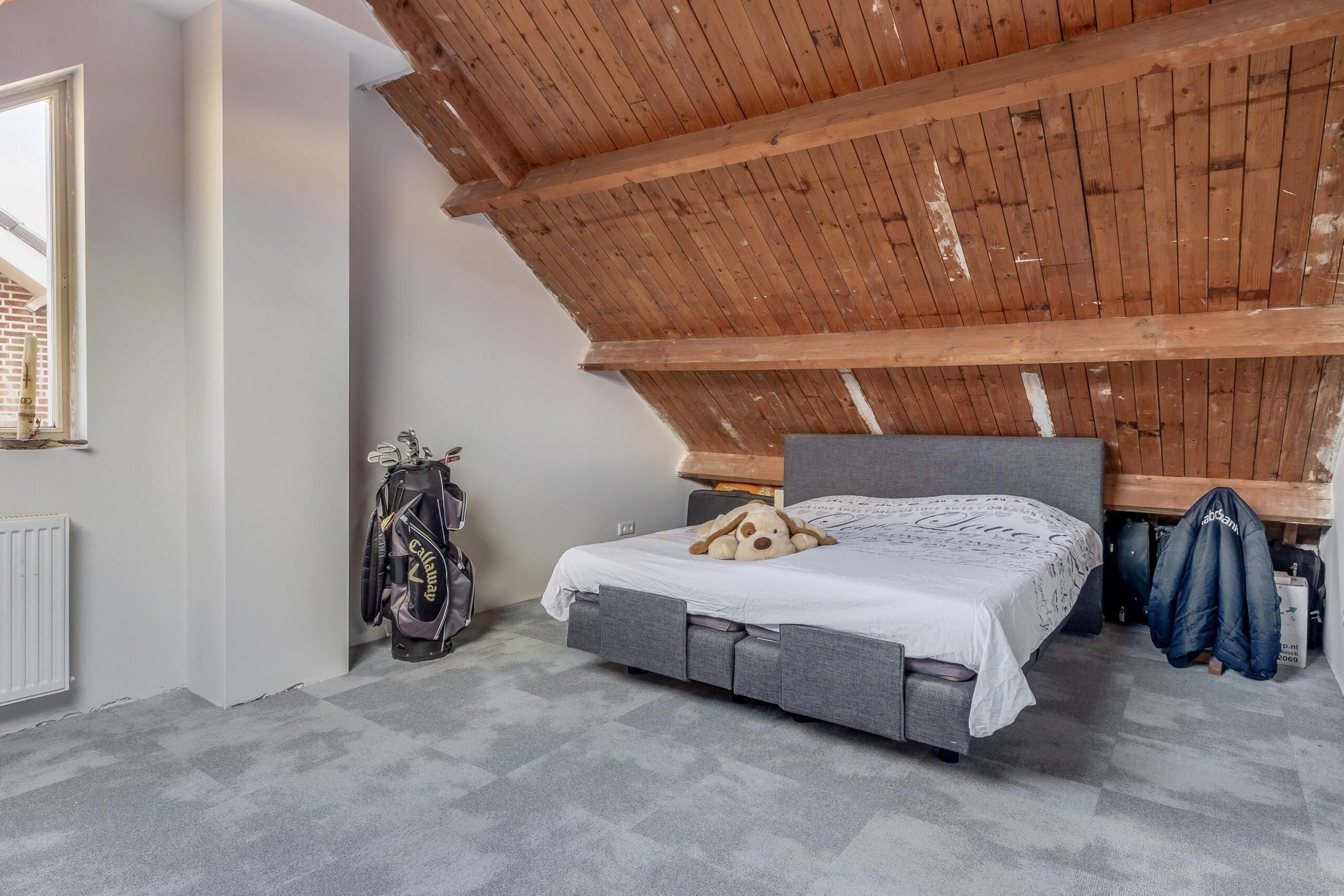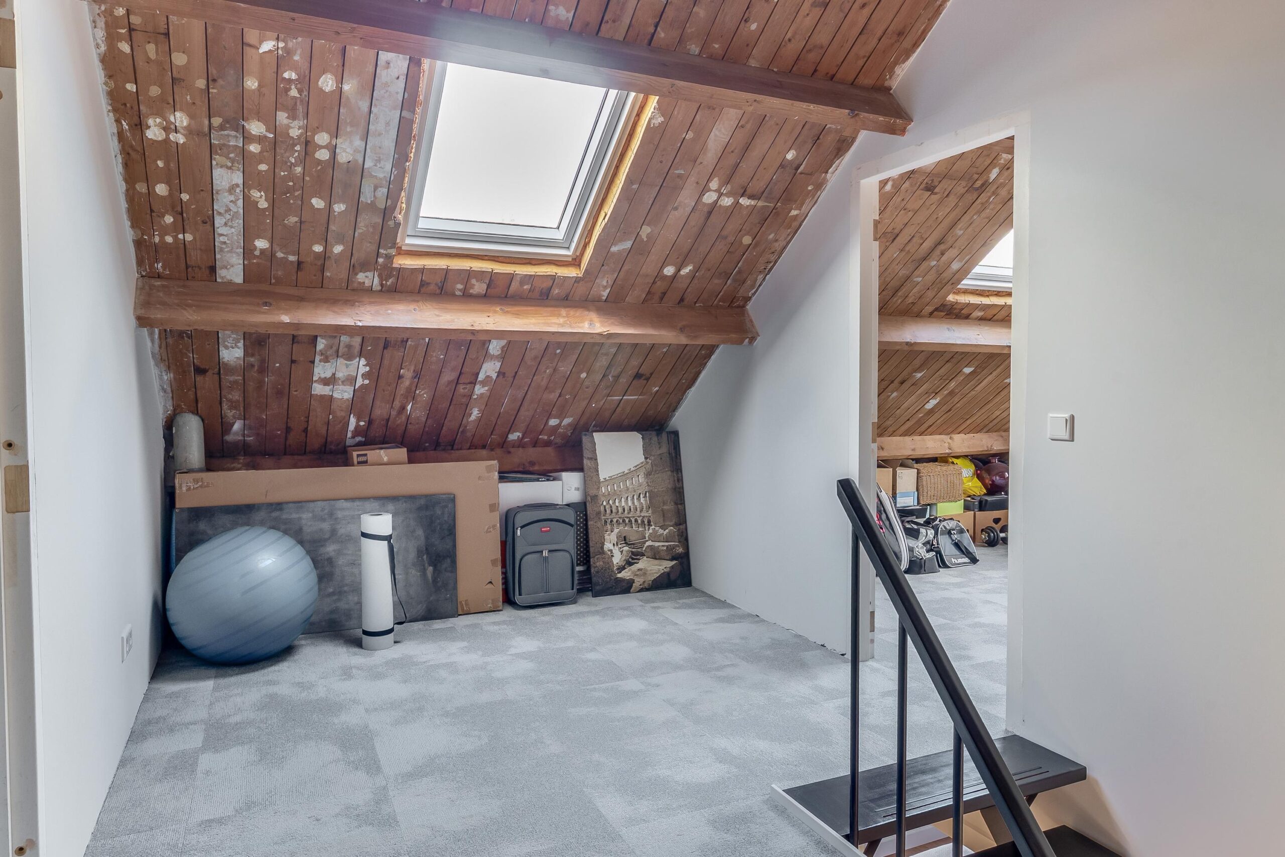 Tweede verdieping: Via een vaste trap bereikt u de voorzolder op de tweede verdieping. Hier beschikt u over veel bergruimte. Tevens bevinden zich hier de vierde en vijfde slaapkamer, beide voorzien van een Velux-dakraam, wat zorgt voor extra lichtinval.