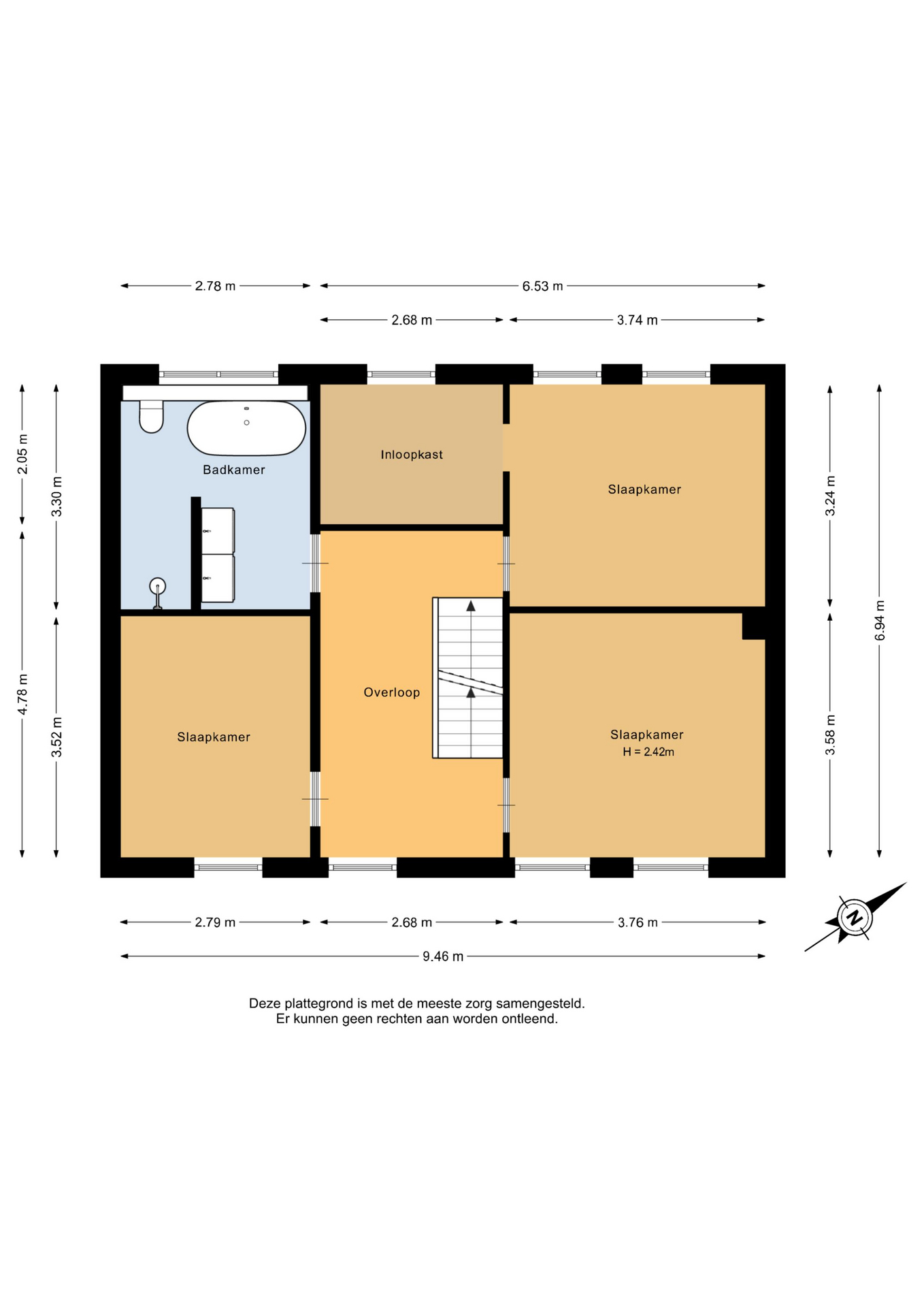 Eerste verdieping: Via de ruime overloop heeft u toegang tot drie slaapkamers en de badkamer. De moderne badkamer is volledig betegeld en voorzien van vloerverwarming. U beschikt hier over een groot badkamermeubel met dubbele wastafel, een inbouwcloset, een inloopdouche, een ligbad en een te openen raam. De slaapkamers zijn netjes afgewerkt met strak stucwerk en een houten vloer. Daarnaast beschikken alle kamers over vloerverwarming en houten kozijnen met draai-/kiepramen. De hoofdslaapkamer heeft bovendien een eigen inloopkast.
