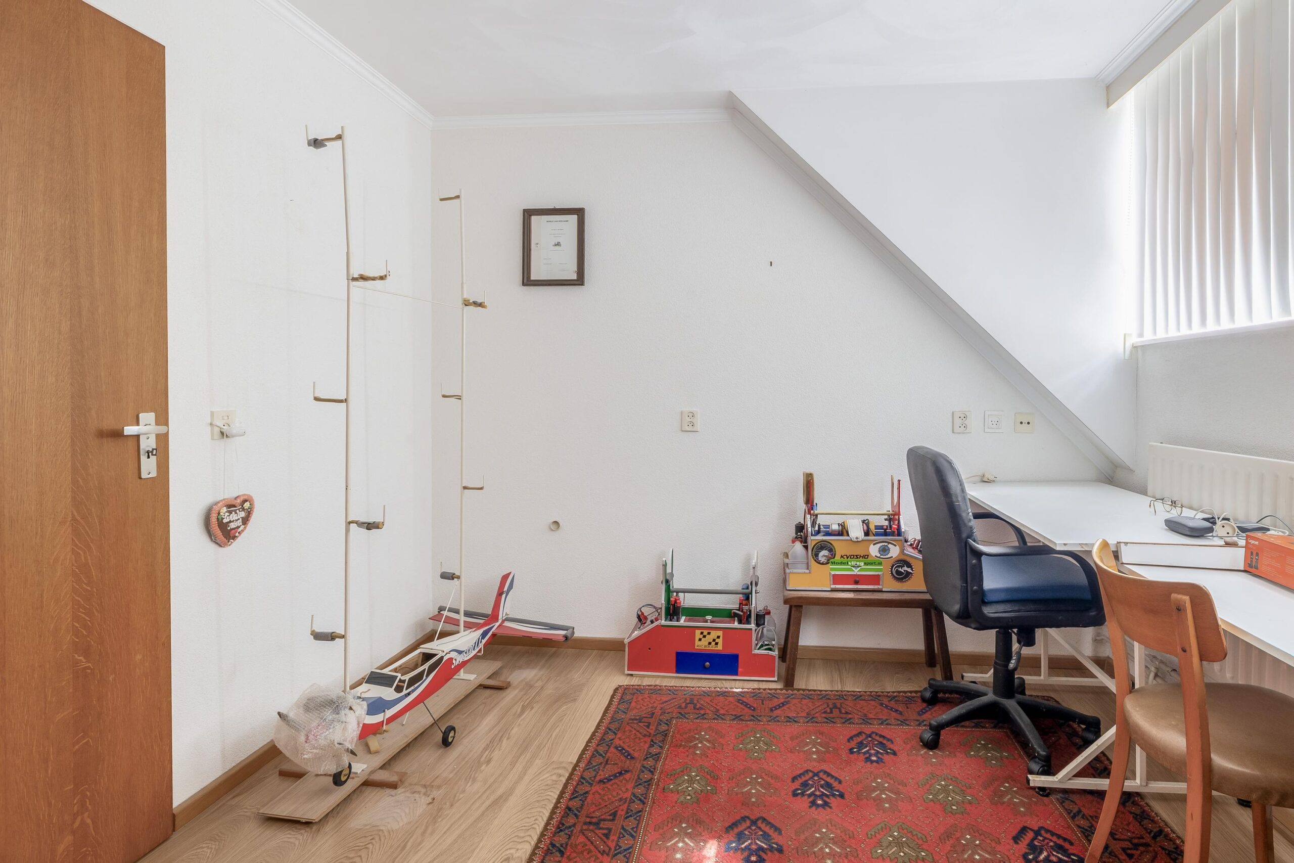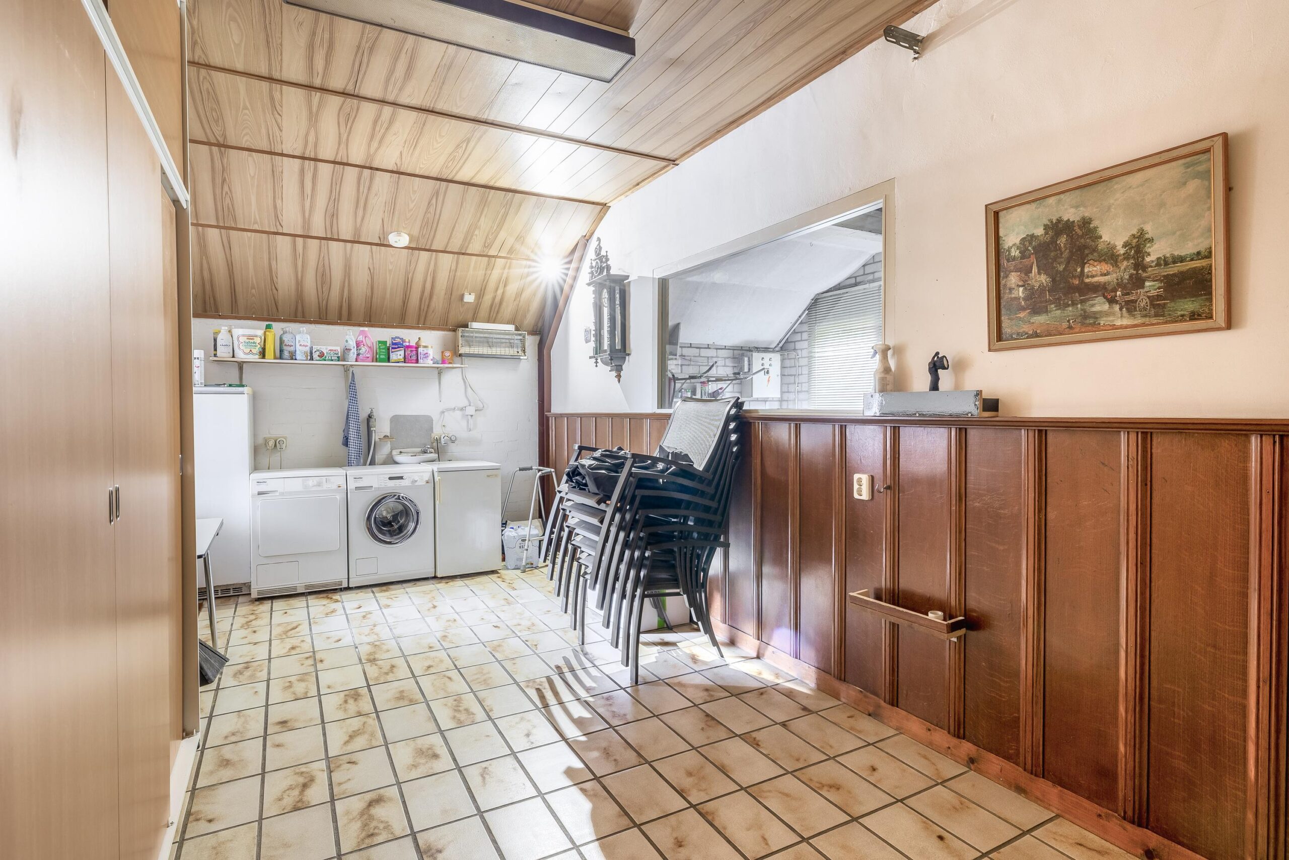 Tweede verdieping: Via een vlizotrap is de zolder bereikbaar. Deze verdieping is ideaal voor het opbergen van seizoensspullen.