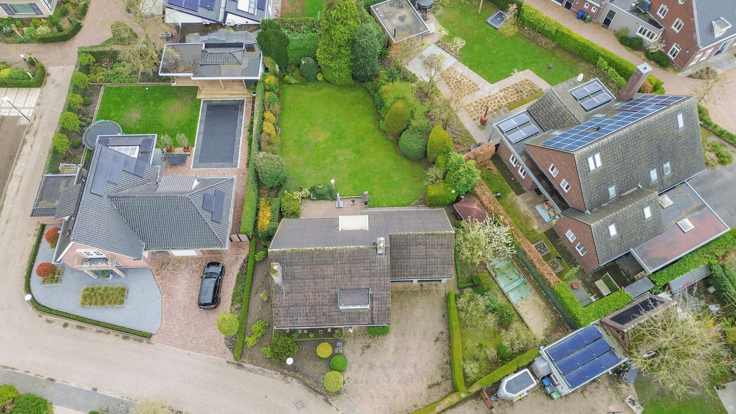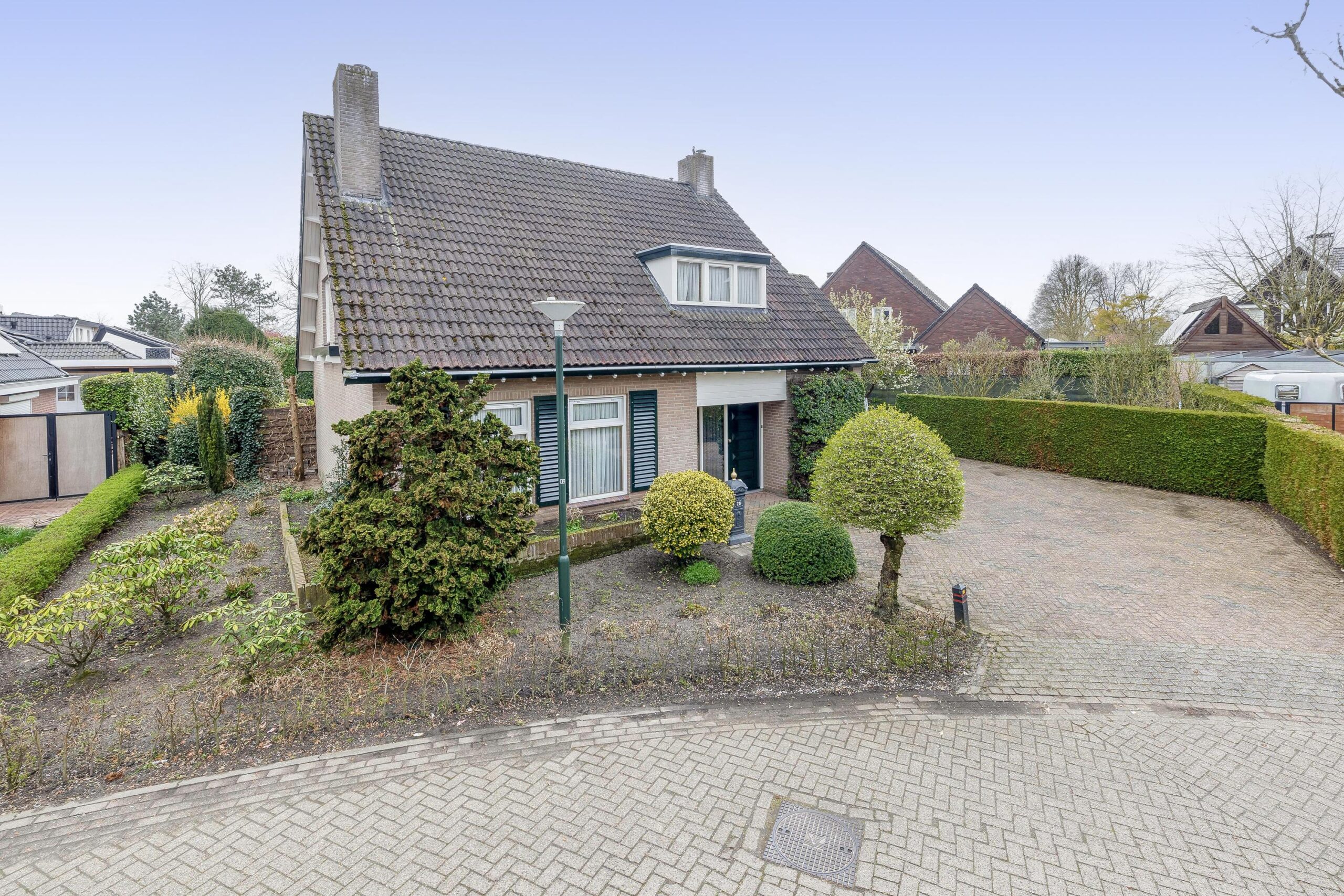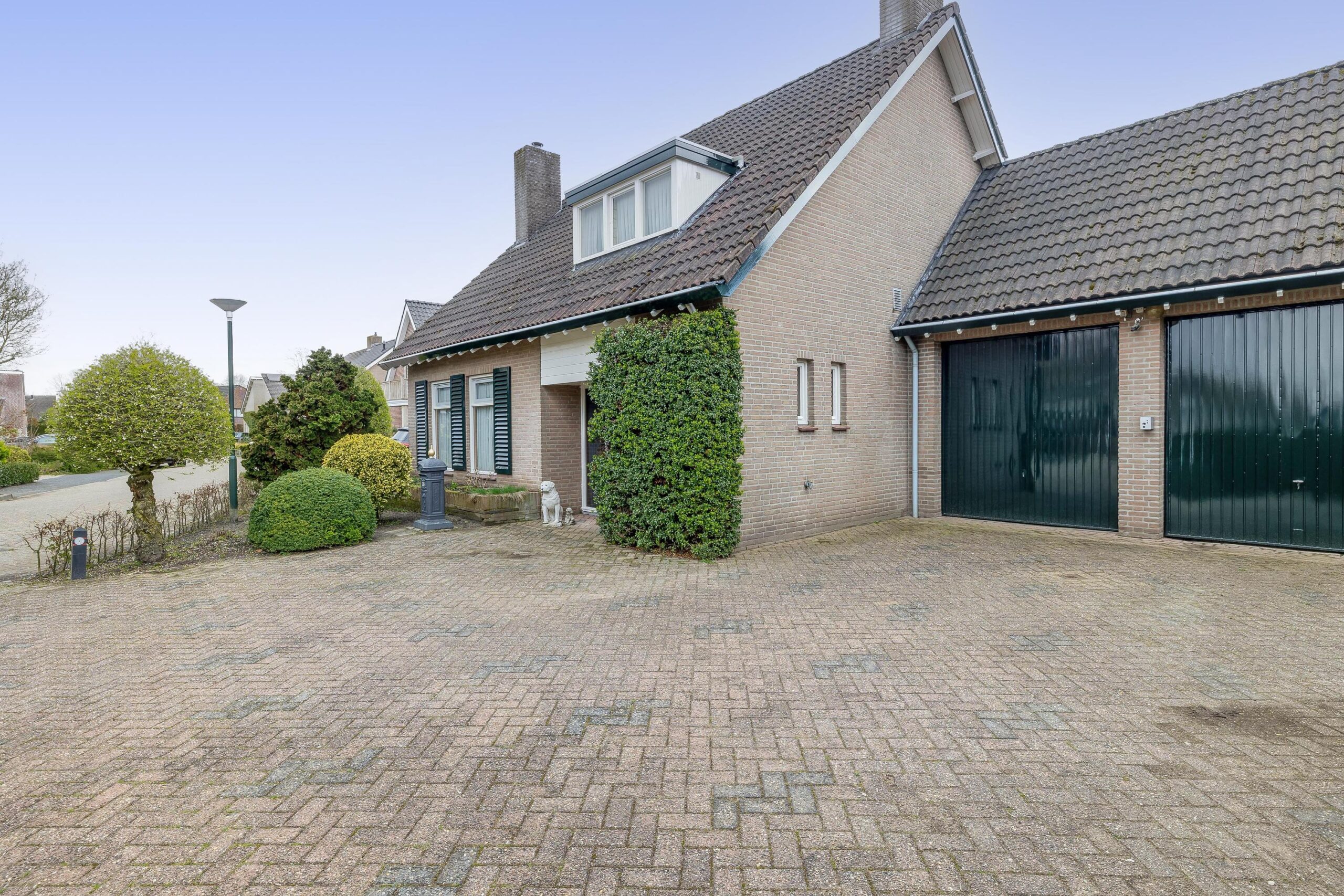 Aan de voorzijde is de tuin fraai aangelegd met diverse borders en vaste beplanting. Aan de rechterzijde kunt u maar liefst vier auto's op eigen terrein parkeren. De verzorgde tuin rondom de woning is een waar paradijs voor liefhebbers van rust, ruimte en groen. Met een groot gazon, volwassen beplanting, diverse borders, bomen en een terras (voorzien van een zonneluifel) is dit een plek om alle seizoenen van te genieten. Door de gunstige ligging van de achtertuin, geniet u hier van veel zonuren. Of u nu graag tuiniert, ontspant met een goed boek of de kinderen heerlijk buiten spelen, heer geniet het hele gezin van het buitenleven!