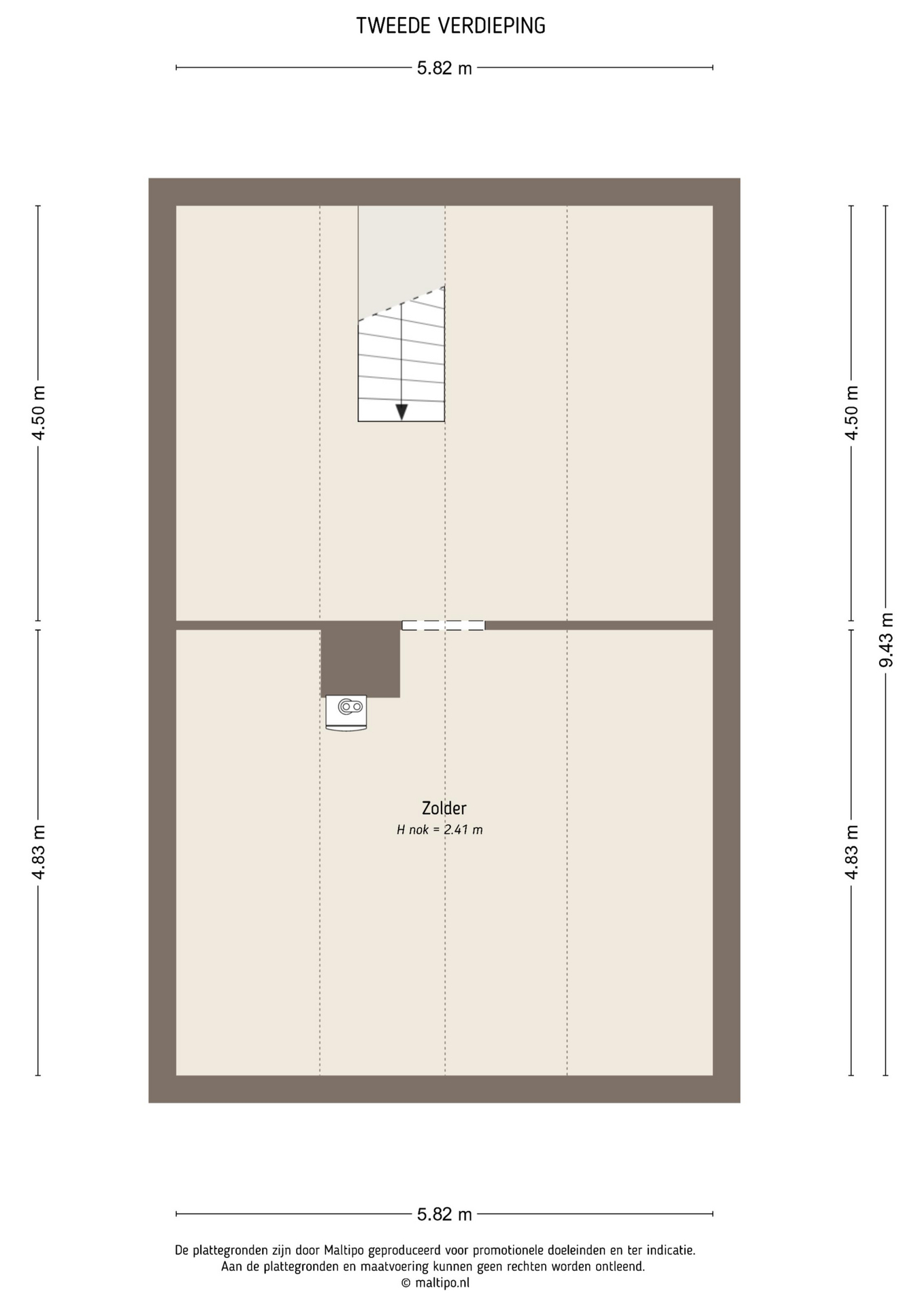 Tweede verdieping: Via een vaste trap bereikt u de zolderverdieping, een verrassend grote ruimte die momenteel dienstdoet als bergzolder. Hier vindt u ook de cv-installatie (Nefit HR, 2007). Dankzij de nokhoogte en het royale vloeroppervlak zijn hier bovendien mogelijkheden voor het creëren van een extra slaapkamer, hobbyruimte of thuiswerkplek.