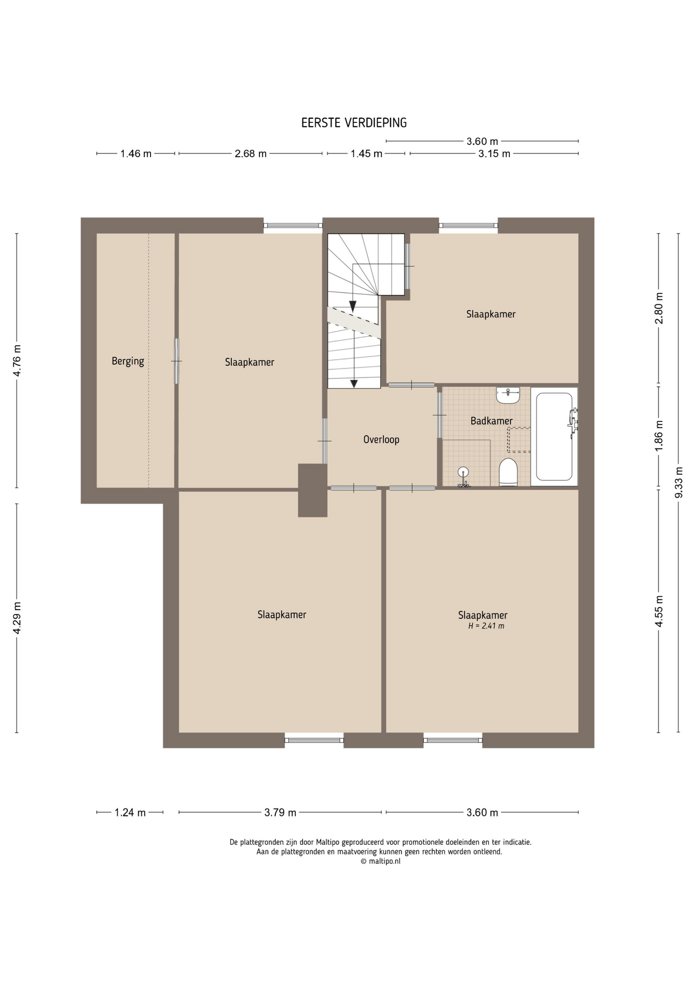 Eerste verdieping: De ruime overloop biedt toegang tot vier comfortabele slaapkamers, allen hebben ze een prettige afmeting. De kamers zijn momenteel eenvoudig afgewerkt met behang en vloerbedekking, maar bieden volop mogelijkheden voor een moderne make-over. Eén van de slaapkamers beschikt over een vaste trap naar de zolderverdieping. De badkamer is volledig betegeld en uitgerust met een ligbad, aparte douche, toilet en wastafel. Een Velux dakraam zorgt voor natuurlijke lichtinval en ventilatie.