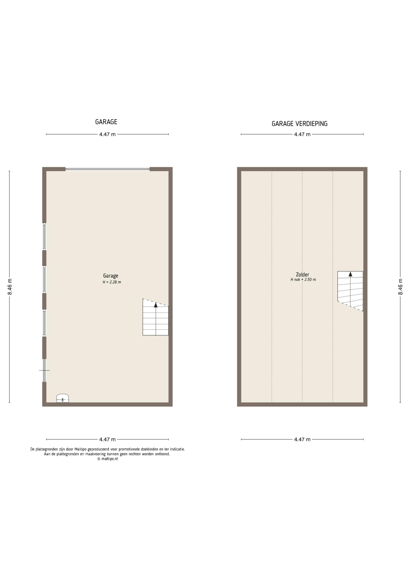Achter in de tuin staat de ruime vrijstaande garage, voorzien van elektra en een handige bergvliering. De garage is bereikbaar via een elektrische sectionaaldeur of via een loopdeur vanuit de tuin. Op de oprit is plaats voor twee auto’s op eigen terrein.