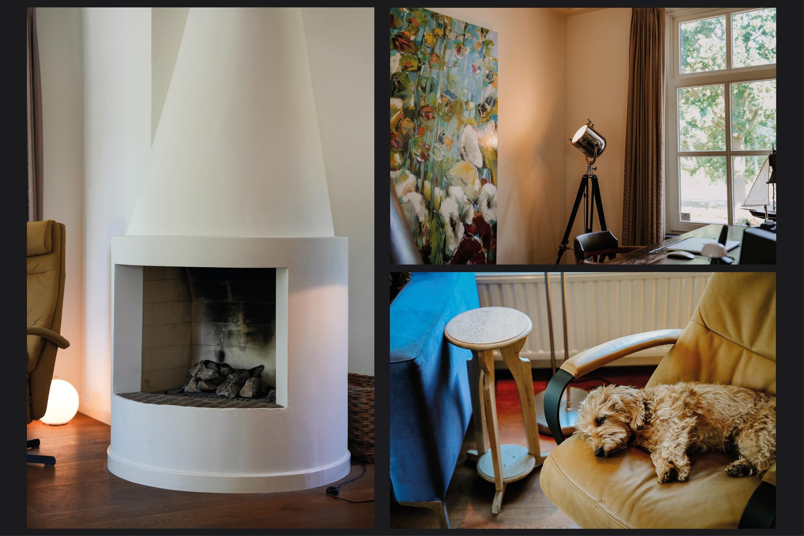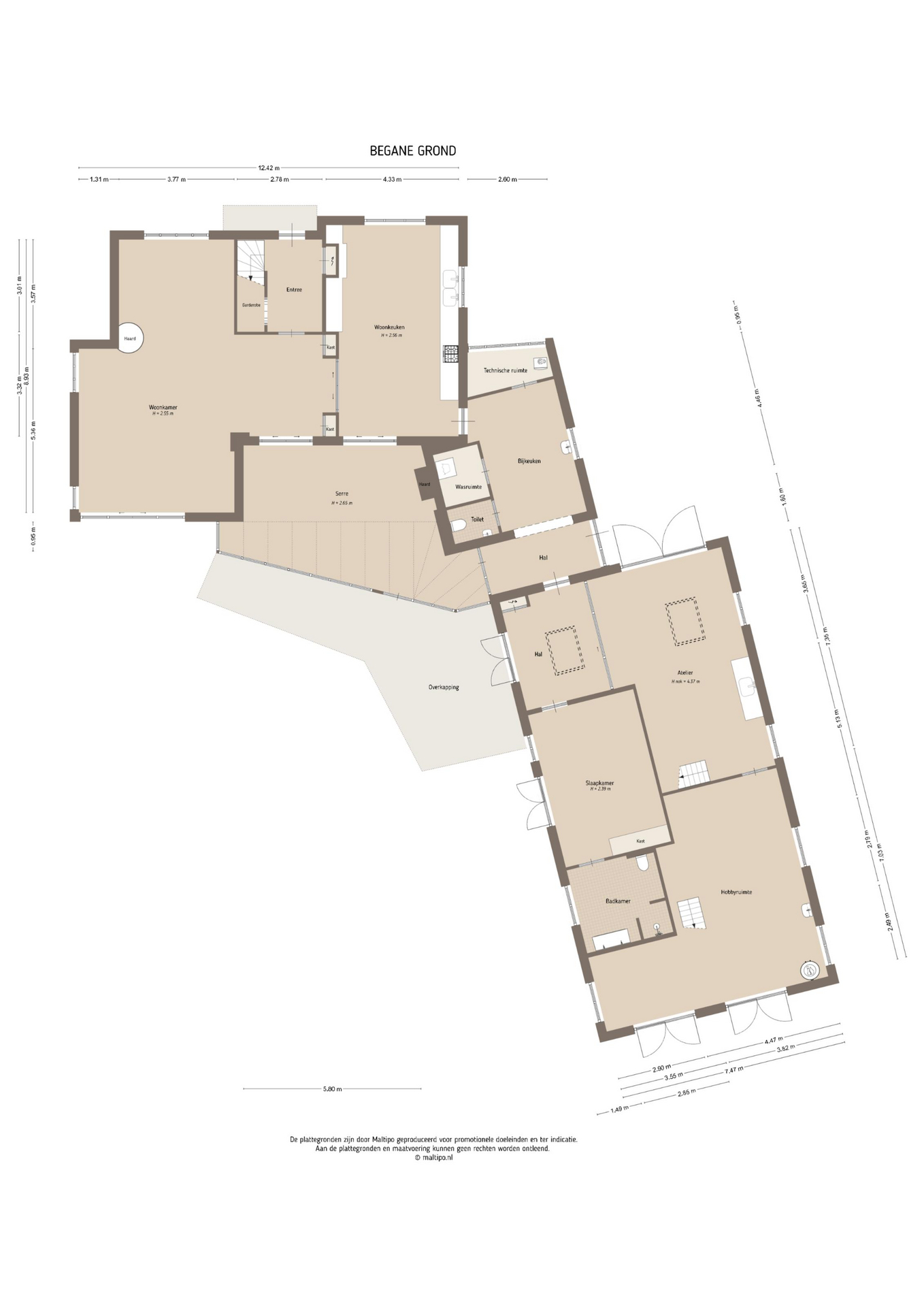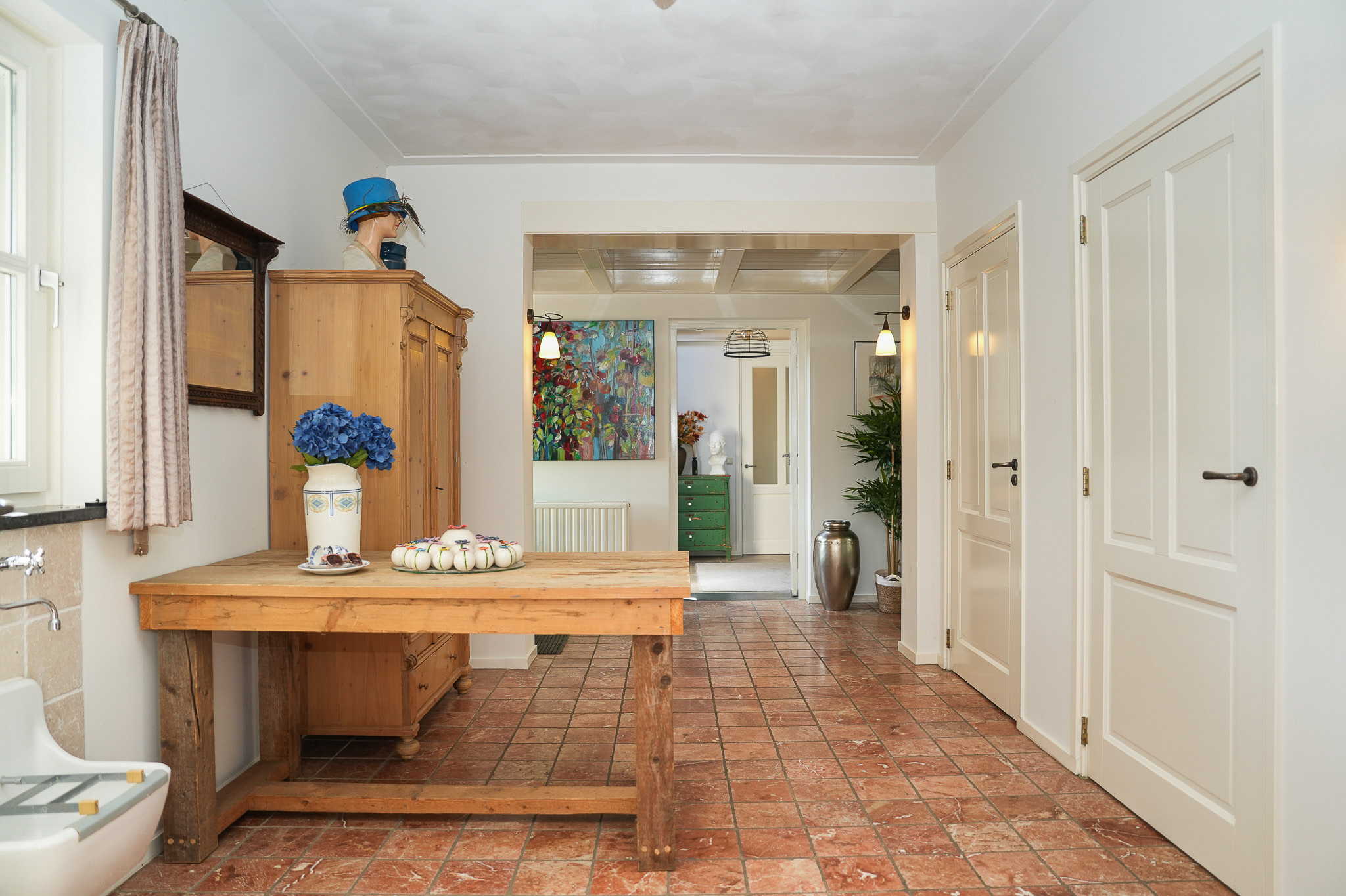 Begane grond: Bij binnenkomst wordt u verwelkomd in een stijlvolle hal met jonge voordeur, garderobenis, meterkast en waterontharder. De afwerking is van hoog niveau: strak stucwerk, een prachtige eikenhouten vloer en een gevoel van ruimte en licht. De royale woonkamer is een toonbeeld van elegantie, met een sfeervolle gashaard en dubbele houten schuifpui naar de tuin. Via en-suite deuren bereikt u enerzijds de riante keuken en anderzijds de prachtige serre. De serre is een volwaardige leefruimte, compleet met vloerverwarming, gashaard, isolatie, elektrische dakramen en een indrukwekkende harmonicapui die volledig geopend kan worden. De keuken is een culinair paradijs: massief houten kasten, een zwart granieten werkblad en plaats voor een royale eettafel. Hier vindt u onder andere een Boretti-fornuis met dubbele oven, afzuigkap, vaatwasser, koelkast en dubbele spoelbak. Aansluitend bevindt zich de praktische bijkeuken met het toilet (vrijhangend), fonteintje, provisiekast met CV-installatie, aparte kast voor witgoed, gootsteen en toegang tot zowel de serre als de oprit. Daarnaast vindt u op de begane grond een veelzijdige kamer die dienst kan doen als speel-, werk- of slaapkamer, compleet met vaste kasten, openslaande tuindeuren en vloerverwarming. De moderne badkamer (2023) is voorzien van een vrijhangend toilet, een badkamermeubel met dubbele wastafel en een inloopdouche. Verder is er een ruim atelier met hoge nok en twee Velux-dakramen, bereikbaar via openslaande deuren, een inspirerende plek die ook uitstekend kan fungeren als tweede woonkamer. Tot slot heeft de woning een royale hobbyruimte, uitgerust met twee boilers, een warmtepomp, openslaande deuren en een gootsteen. Middels een trap is een grote bergzolder bereikbaar.