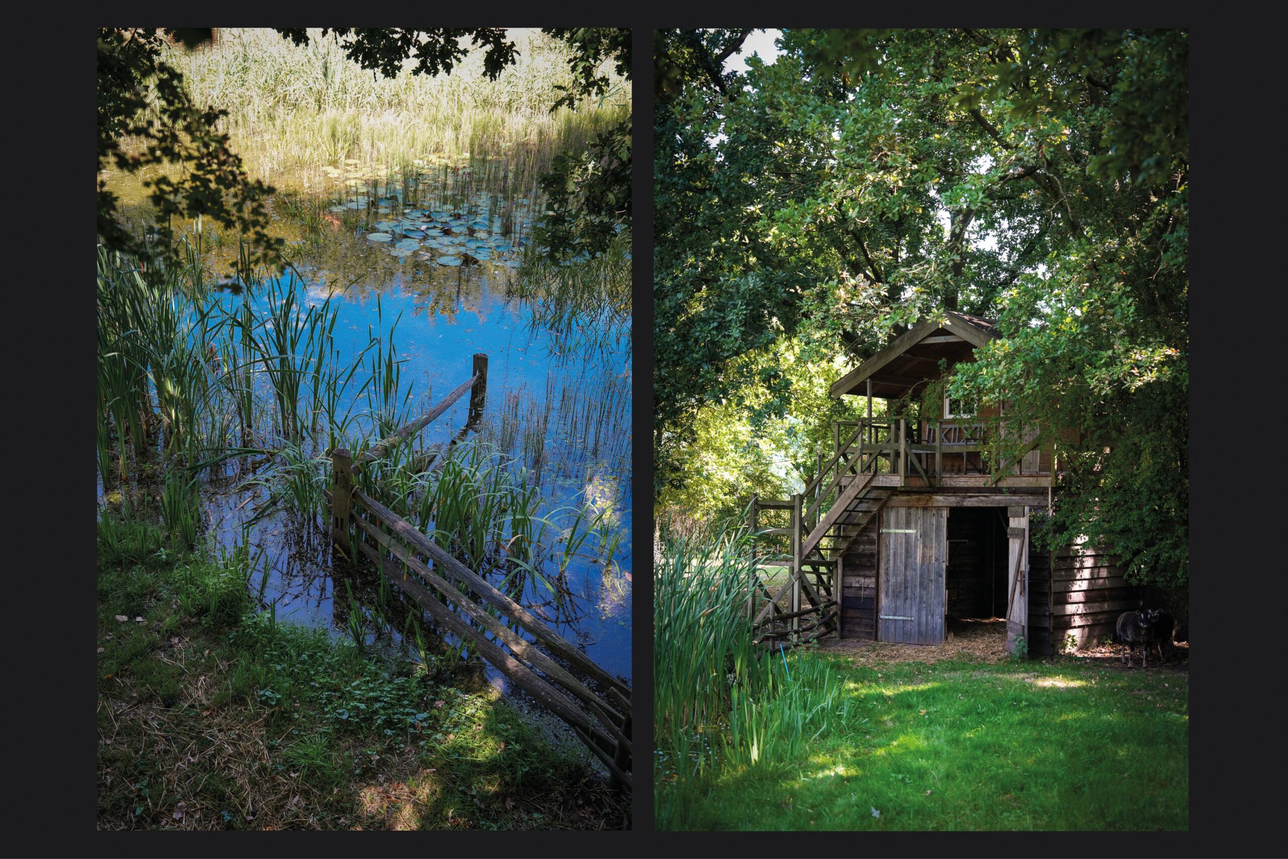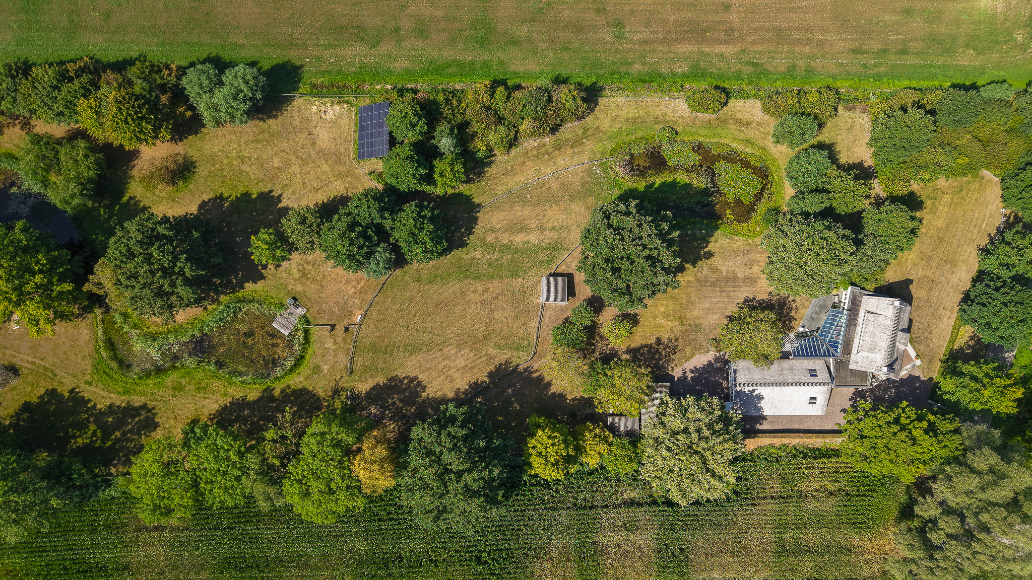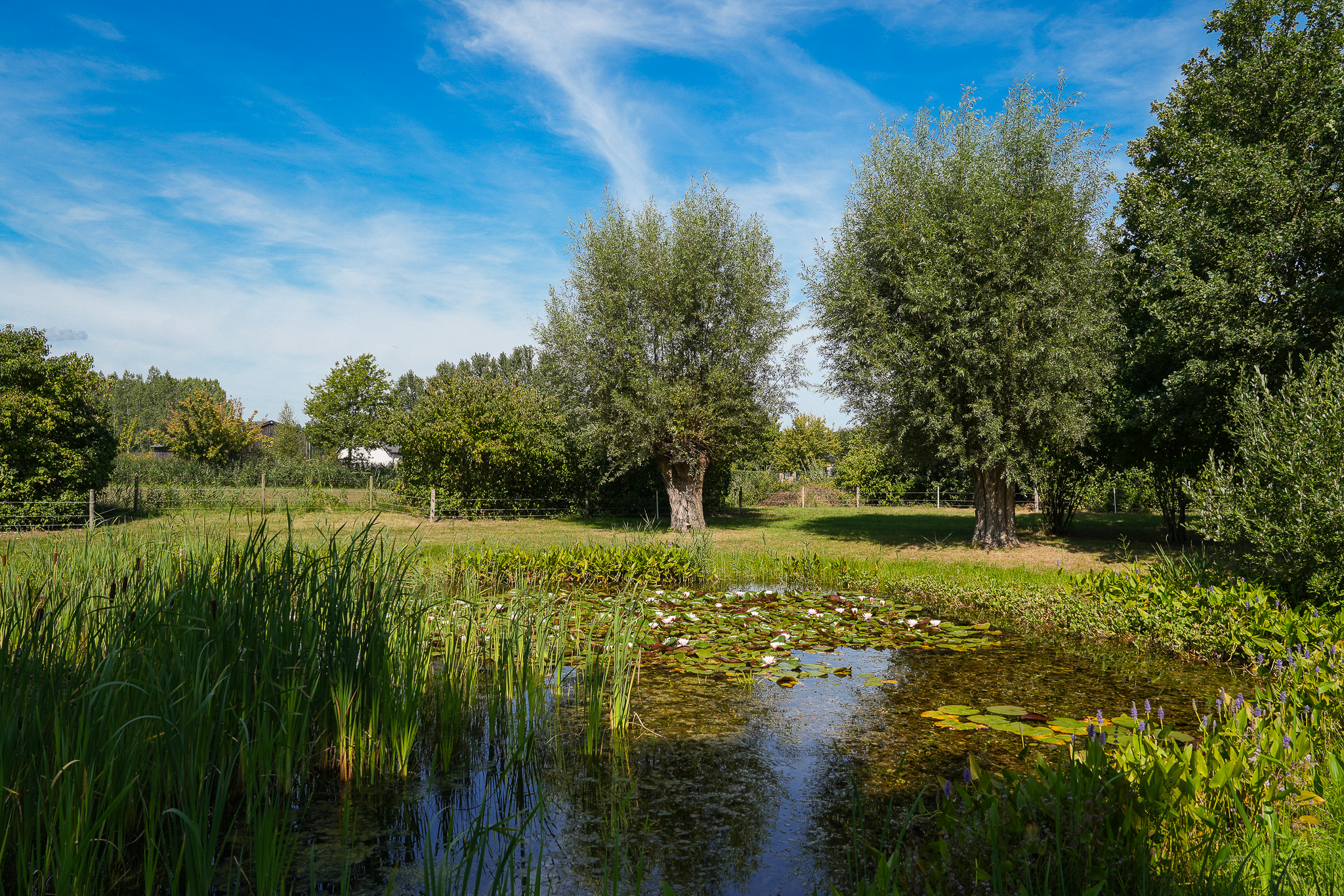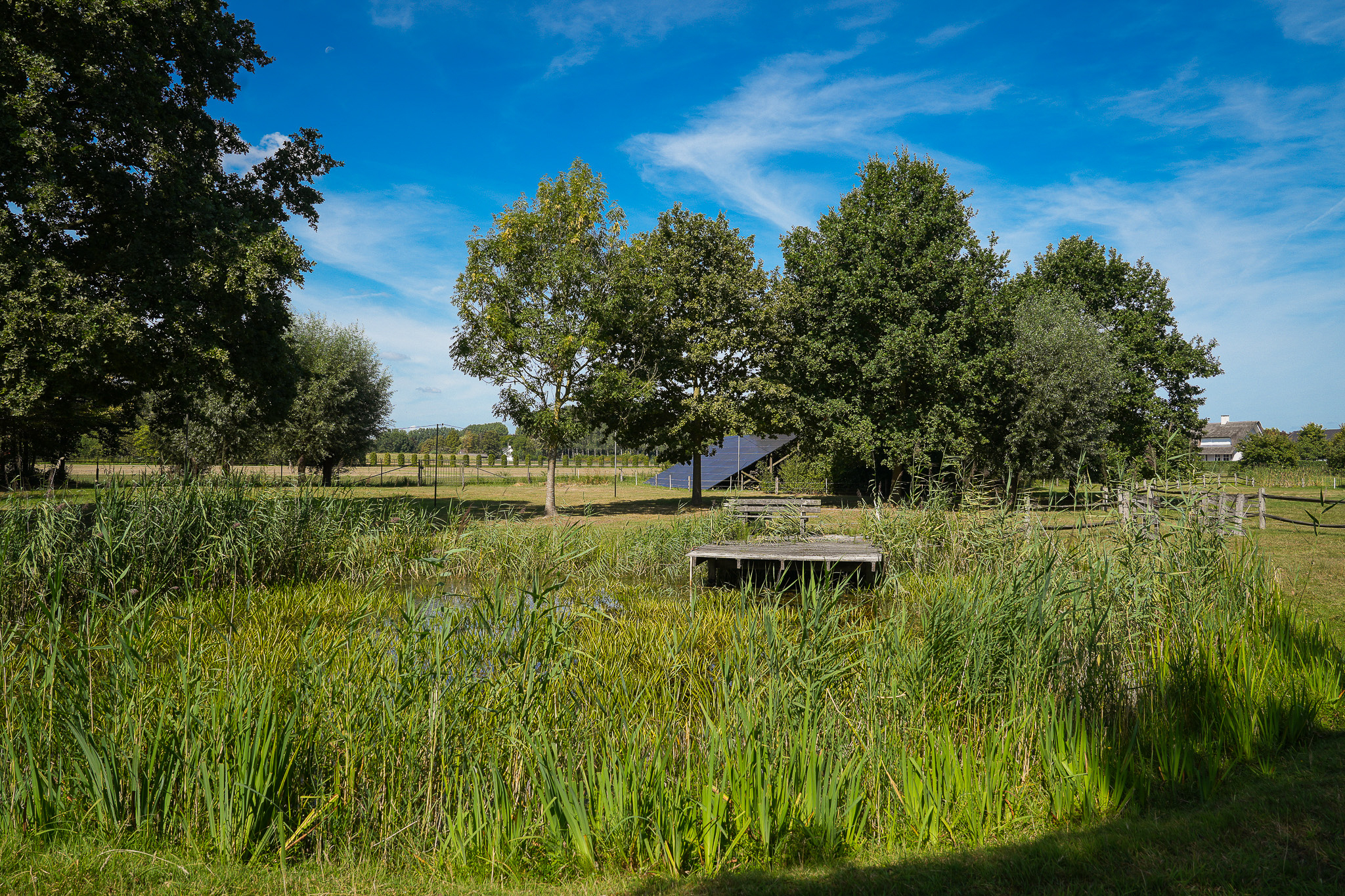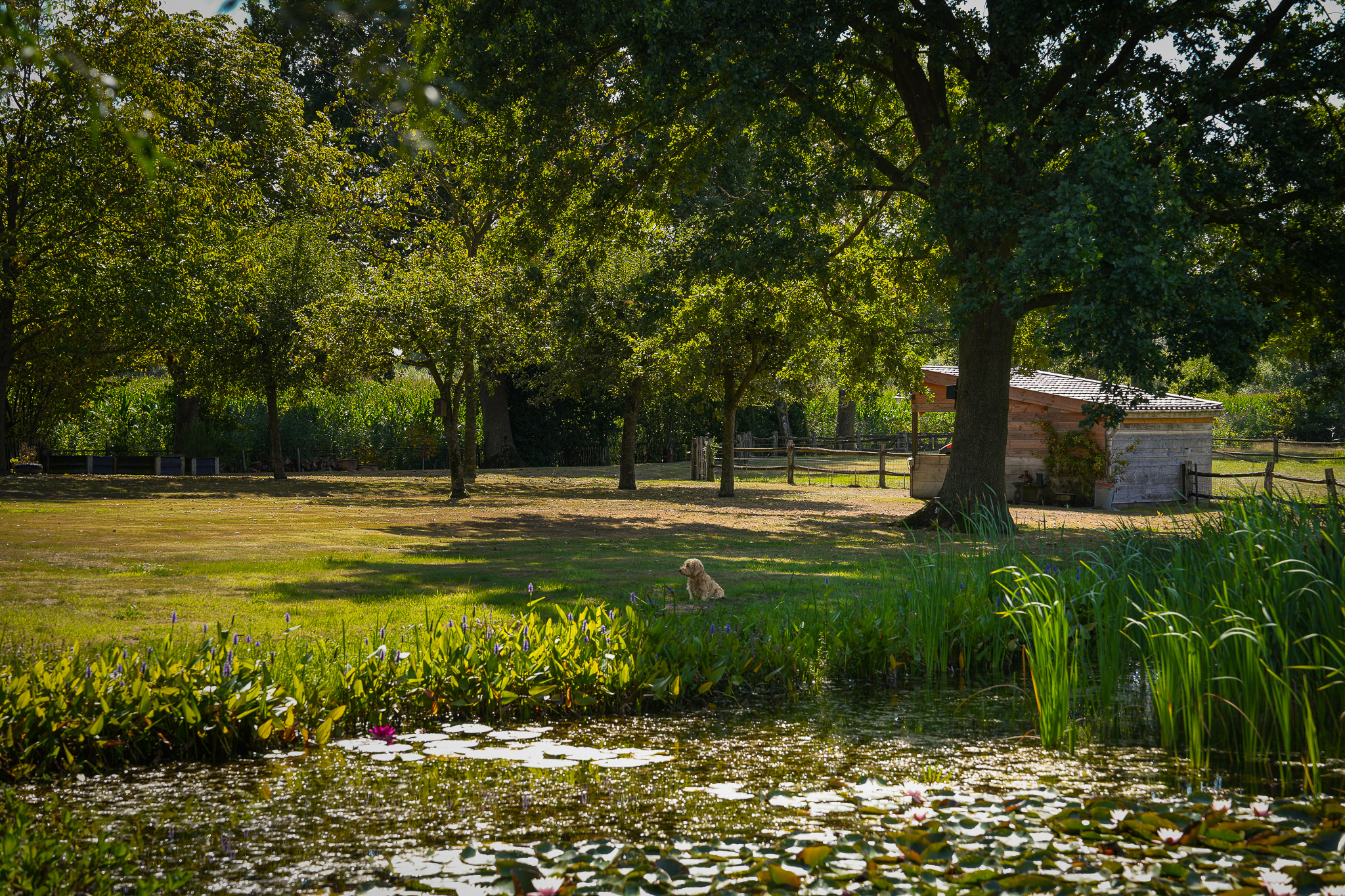 De fraai aangelegde tuin rondom de woning vormt het perfecte decor voor het genieten van het buitenleven in al zijn facetten. Een royaal gazon, twee grote vijvers, volwassen bomen, kleurrijke borders en vaste beplanting zorgen voor een parkachtige sfeer. Het uitzicht is weids en adembenemend, met overal groen om u heen. In de tuin bevindt zich bovendien een charmant houten tuinhuis dat is voorzien van een kachel, twee paar openslaande deuren en zelfs een eigen toilet, perfect als ontspanningsruimte. Aansluitend aan dit tuinhuis bevindt zich een carport met ruimte voor twee auto’s. Verder treft u een sfeervol schapenverblijf met daarboven een prachtige blokhut, evenals een bergschuur met overkapping, ideaal voor het opbergen van tuingereedschap of andere materialen.