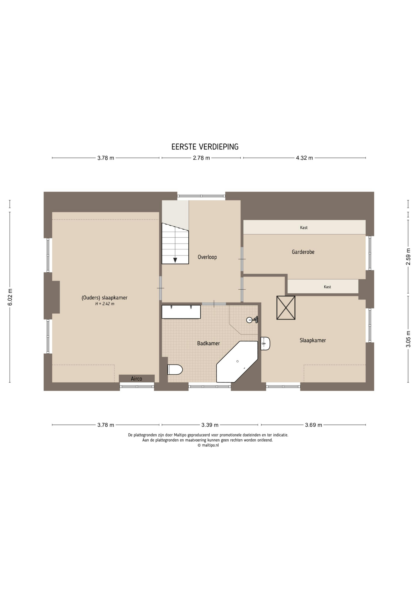 Verdieping: Op de eerste verdieping vindt u een ruime overloop met toegang tot drie slaapkamers en een tweede badkamer. De slaapkamers zijn afgewerkt met strak stucwerk, PVC-vloeren en draai-/kiepramen. Eén kamer doet dienst als inloopkast, een andere beschikt over een eigen wastafel en de hoofdslaapkamer beschikt over airconditioning. De badkamer is voorzien van een stijlvol badkamermeubel met dubbele wastafel, toilet, douche en ligbad, een perfecte plek om te ontspannen. Via een vlizoluik bereikt u een grote vliering voor het opbergen van spullen.