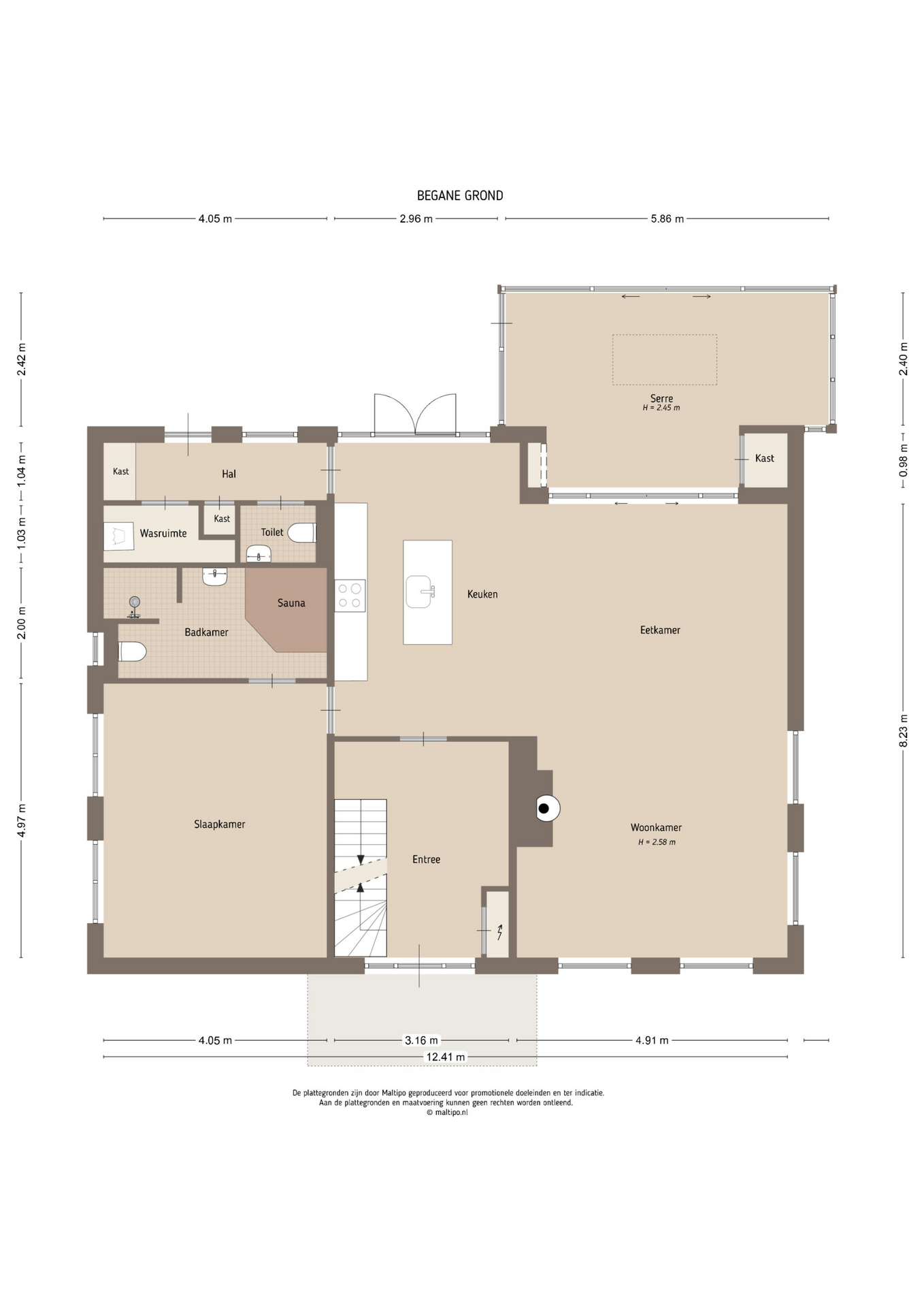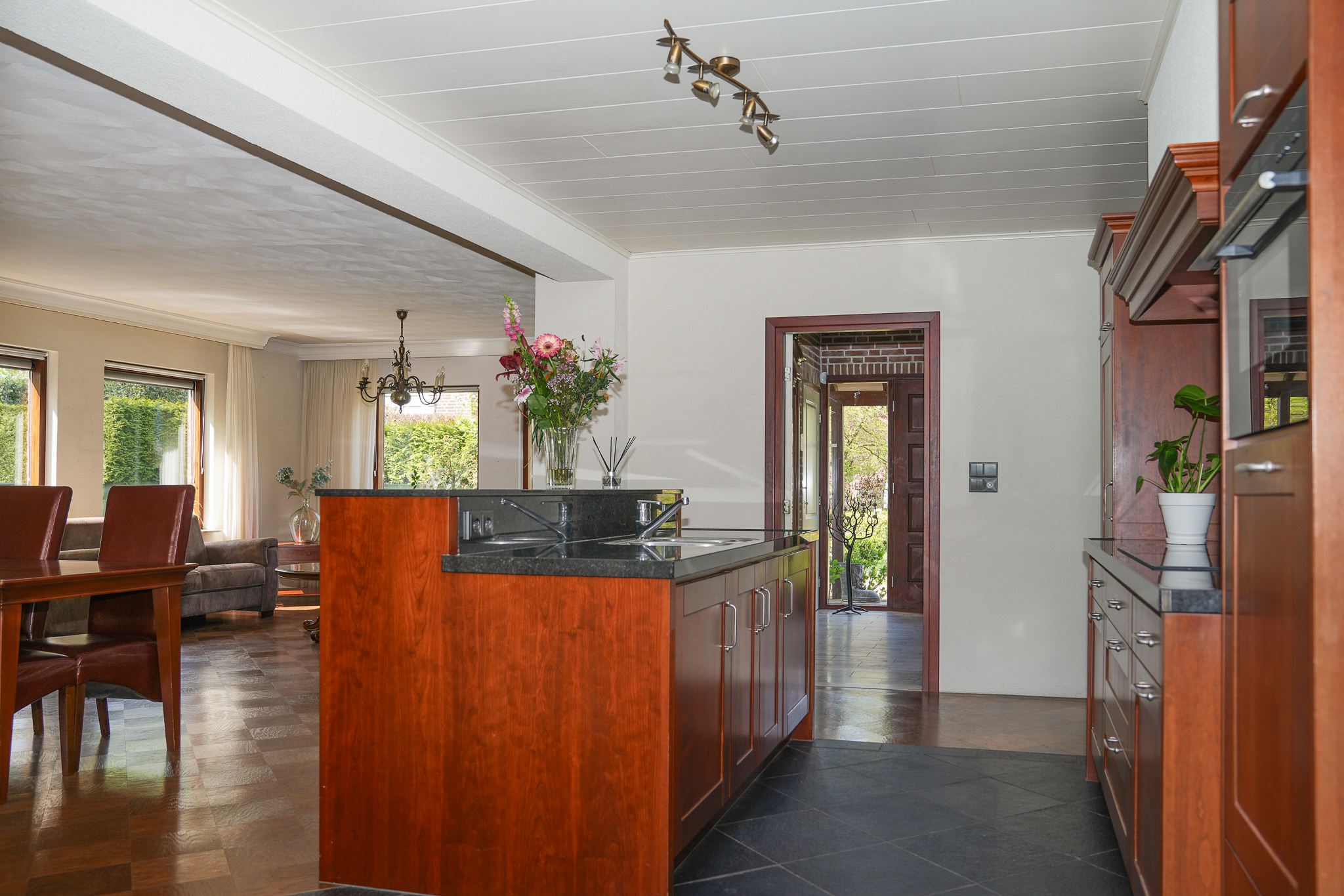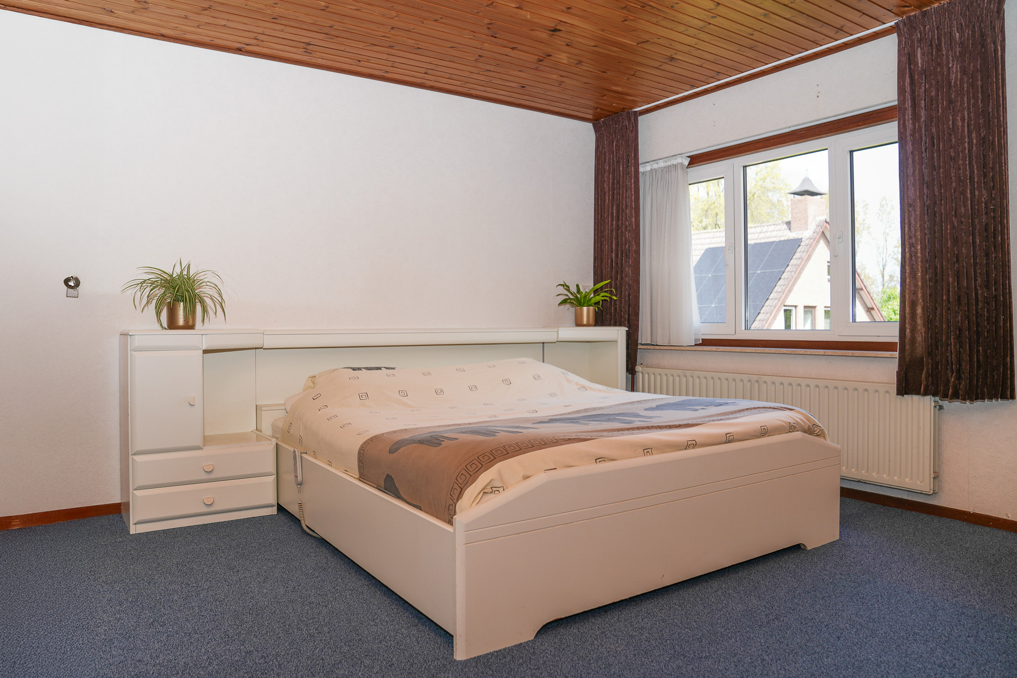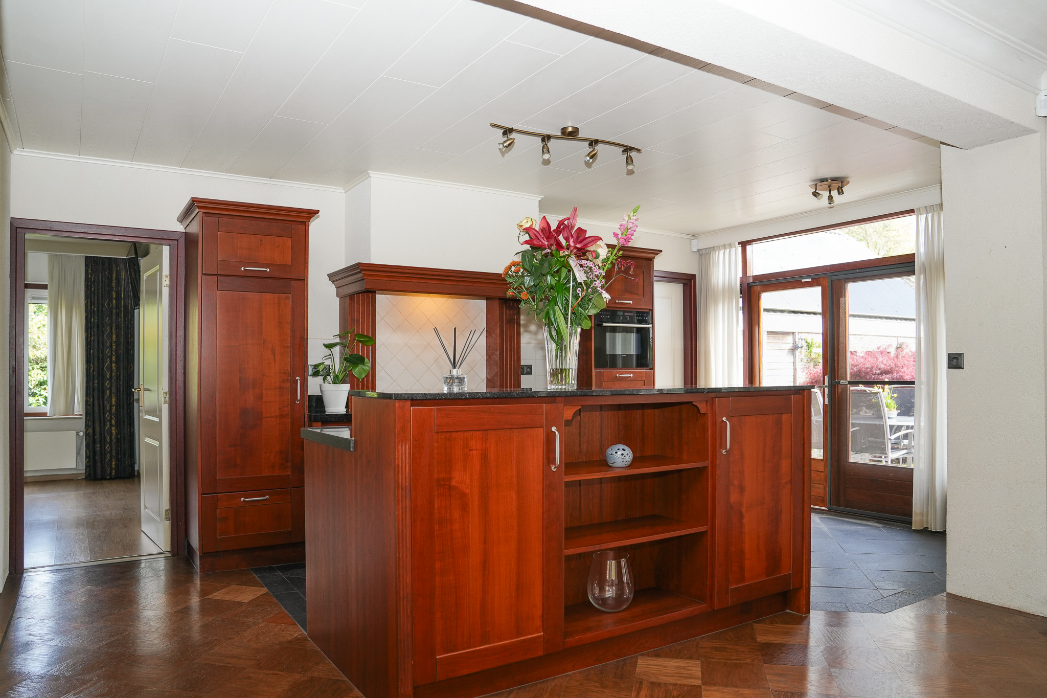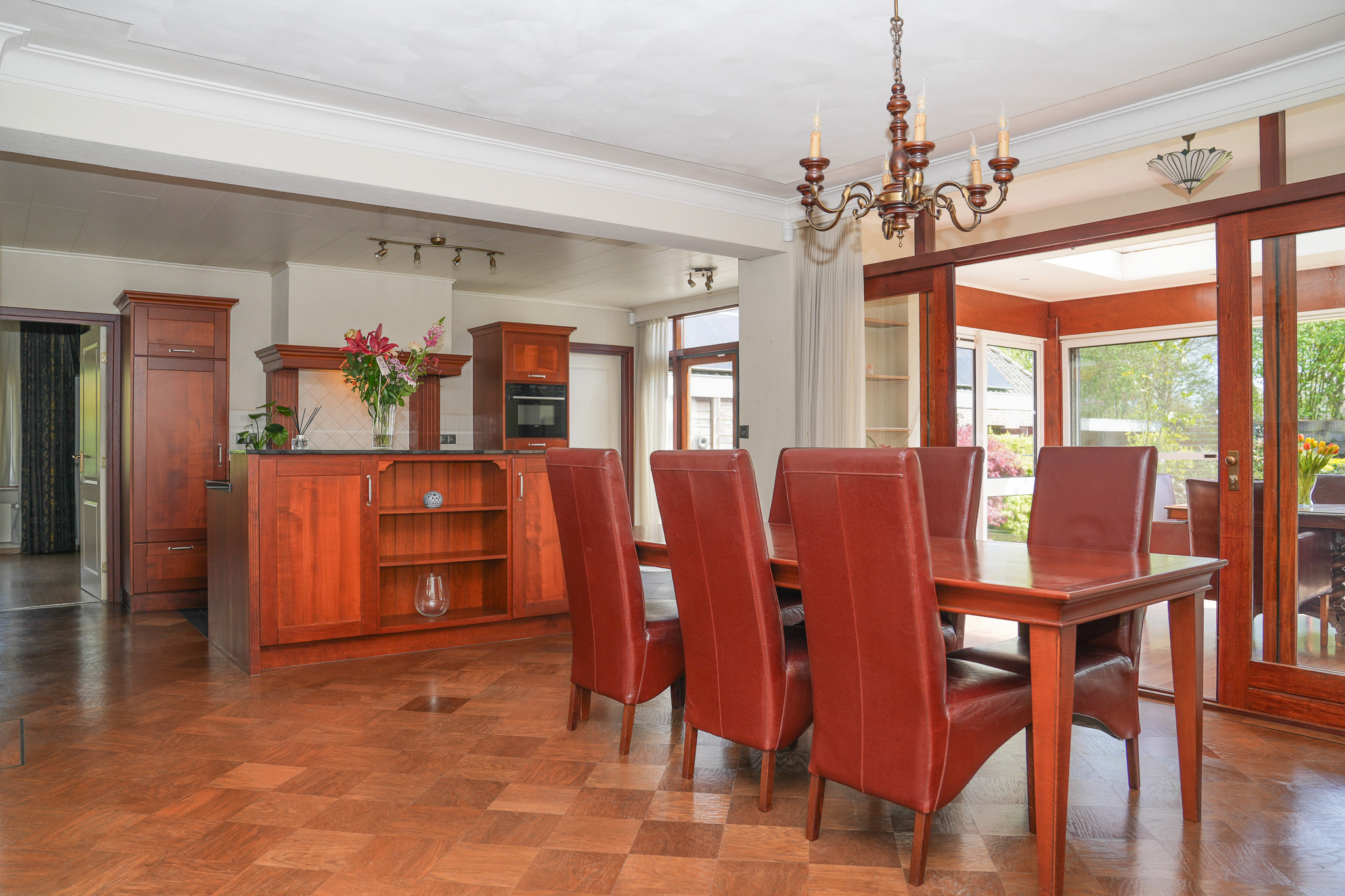 Begane grond: Middels het overdekte entree komt u binnen in de statige hal met de meterkast (12 groepen, krachtstroom en 3 aardlekschakelaars) en heeft u toegang tot de grote vide en de kelder. De L-vormige woonkamer is afgewerkt met stucwerk op de wanden en het plafond en een sfeervolle parketvloer. De woonkamer is voorzien van een pelletkachel en airconditioning. Aansluitend komt u in een riante serre met lichtkoepel en een bergkast. De serre is voorzien van veel lichtinval en een schuifpui naar de tuin. De open keuken is voorzien van een recht keukenmeubel met spoeleiland, veel werk- en kastruimte, laden en inbouwapparatuur: een inductiekookplaat, afzuigkap, combi-oven, koelkast en een vaatwasser op hoogte. Het werkblad is uitgevoerd in kras- en hittebestendig graniet. Aansluitend komt u in een tussenportaal met de toiletruimte, witgoedaansluitingen, een voorraadkast en plaats voor een vriezer. Verder bevindt zich op de begane grond een slaapkamer en een badkamer, waardoor de woning levensloopbestendig is. De slaapkamer is afgewerkt met stucwerk op de wanden en het plafond, en een laminaatvloer. De badkamer is volledig betegeld en uitgerust met een badkamermeubel met wastafel, inbouwcloset, inloopdouche en een tweepersoons infrarood- en opgietsauna. De kelder is opgedeeld in meerdere ruimtes met elk een eigen functie. Eén gedeelte is sfeervol ingericht als bar, ideaal voor gezellige avonden of het ontvangen van gasten. Een ander deel doet dienst als kantoorruimte, perfect voor werken aan huis. Daarnaast is er een praktische opslagruimte aanwezig. Ook is hier de cv-installatie geplaatst. Dankzij de indeling en het gebruik van de kelder biedt deze verdieping verrassend veel extra leef- en werkruimte.