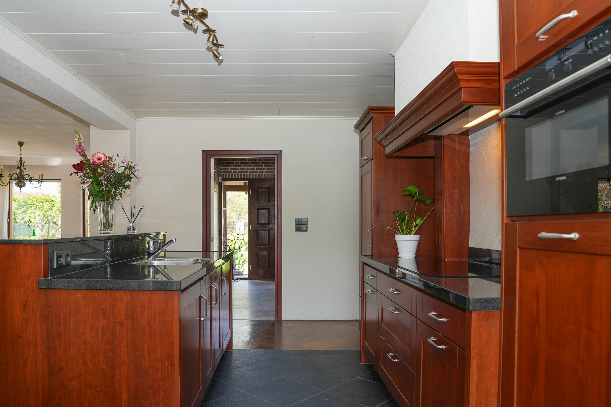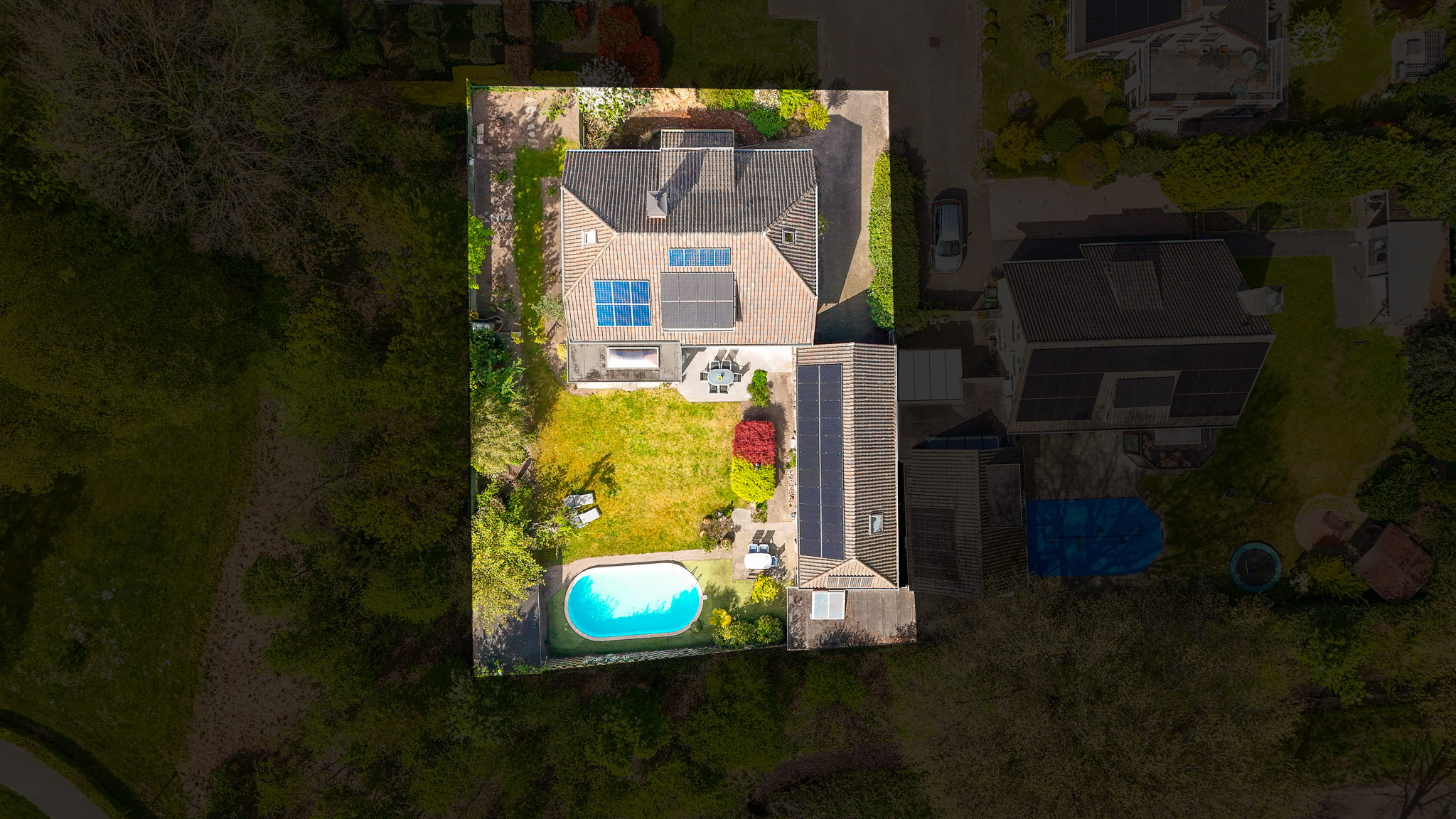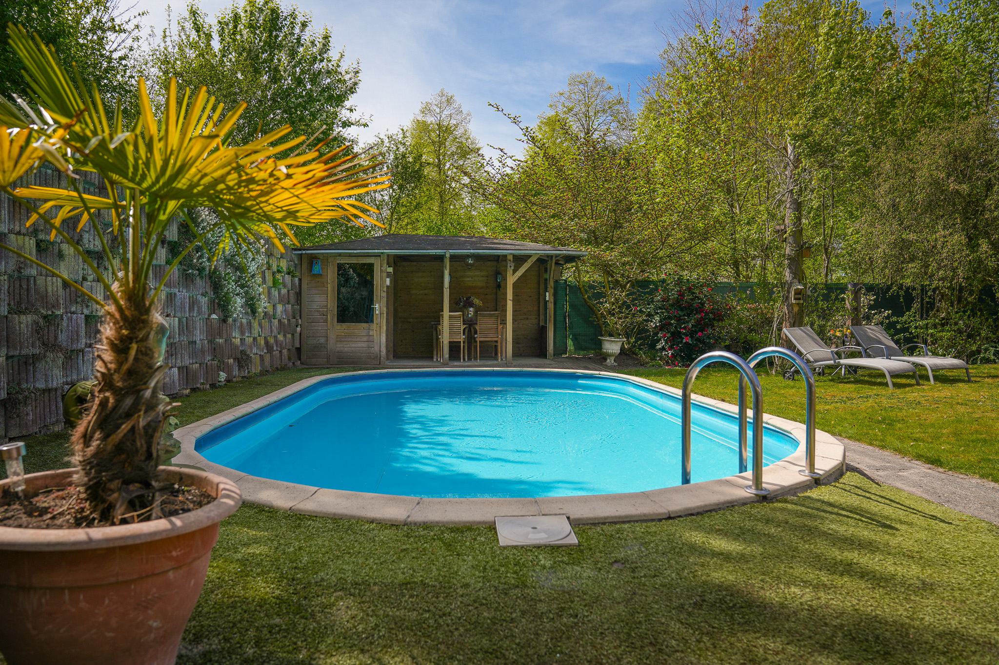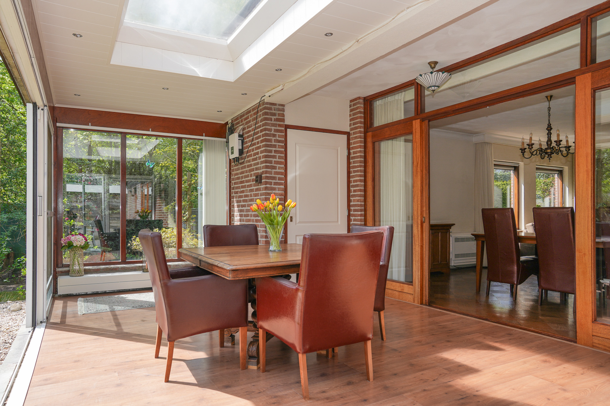 De woning beschikt rondom over een mooie grote tuin. Door de grootte van de tuin en de gunstige ligging met de achtertuin op het zuidoosten is er altijd een plekje in de zon te vinden. De tuin is fraai aangelegd met volwassen bomen en struiken, plantenborders, gazon en een terras. Ook vindt u hier een heerlijk zwembad en een gezellige overkapping waar u lange avonden kunt vertoeven. Achter in de tuin treft u een houten berging, voorzien van elektra. Aan de linkerzijde is een oprit met carport met plaats voor het parkeren van meerdere auto's. Vanaf de oprit heeft u direct toegang tot de garage, woning en achtertuin. Op het dak van de woning liggen maar liefst 44 zonnepanelen. Een gedeelte van het perceel wordt gepacht. Er zijn mogelijkheden deze af te kopen. Wij kunnen u dit toelichten.