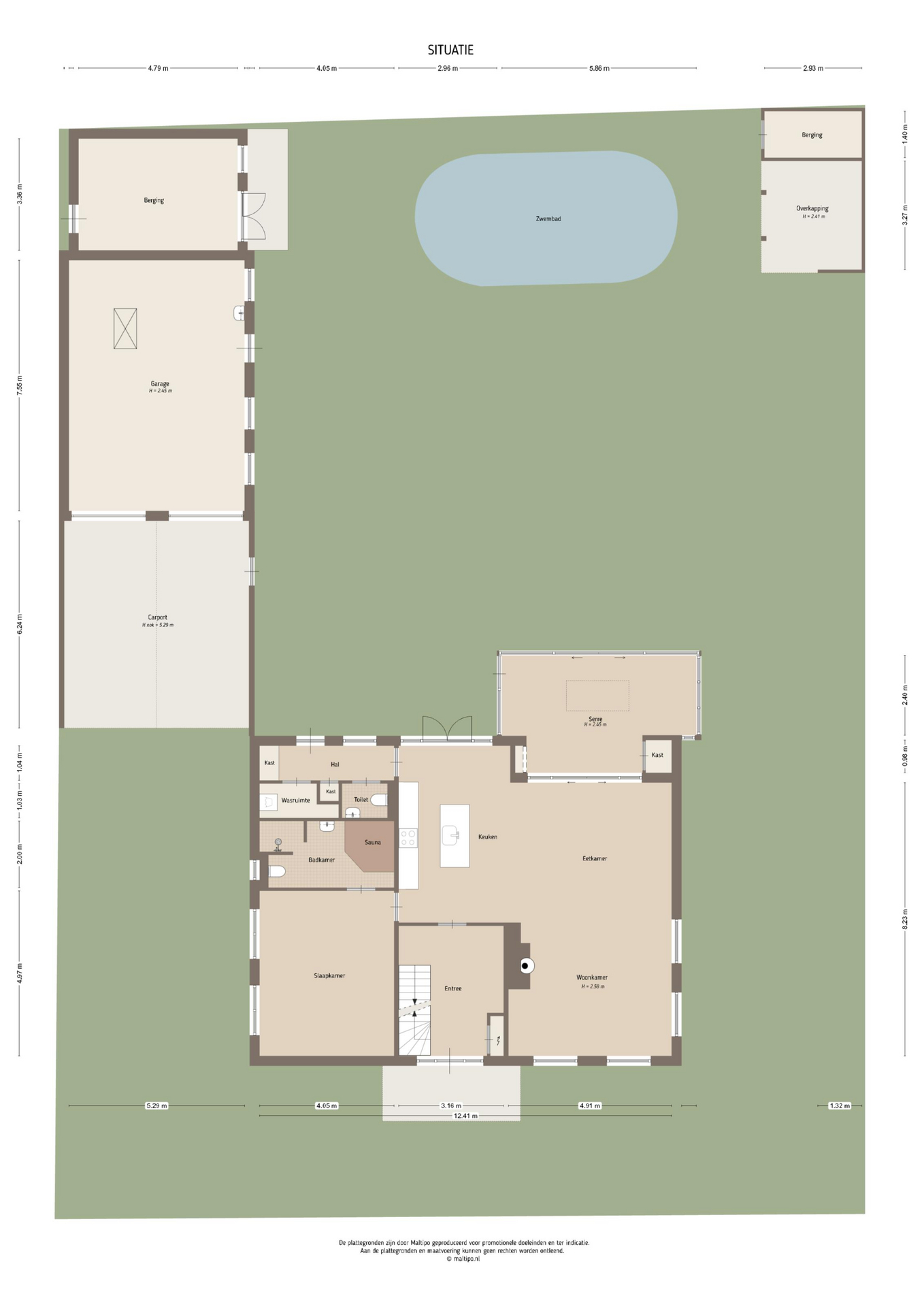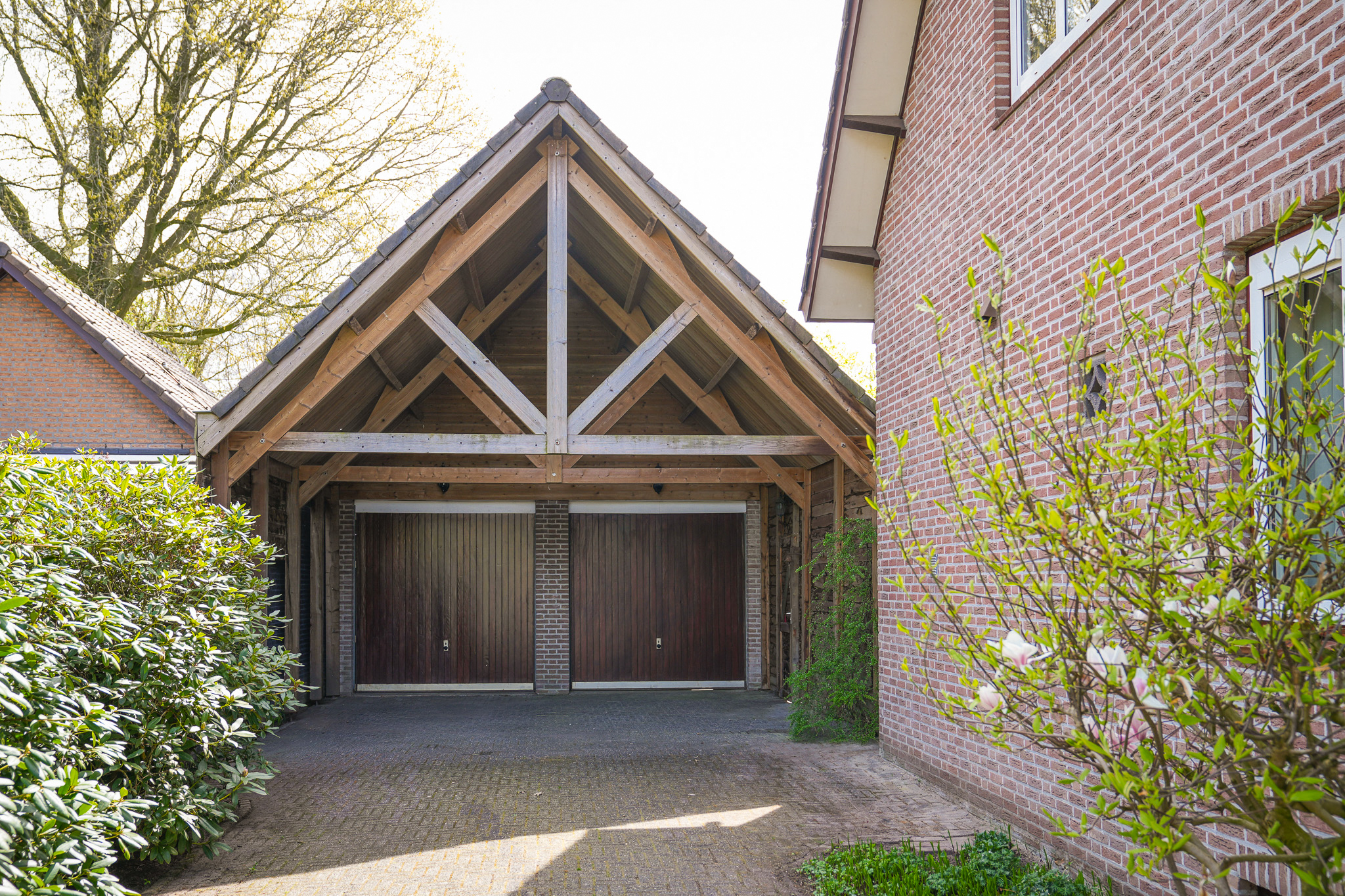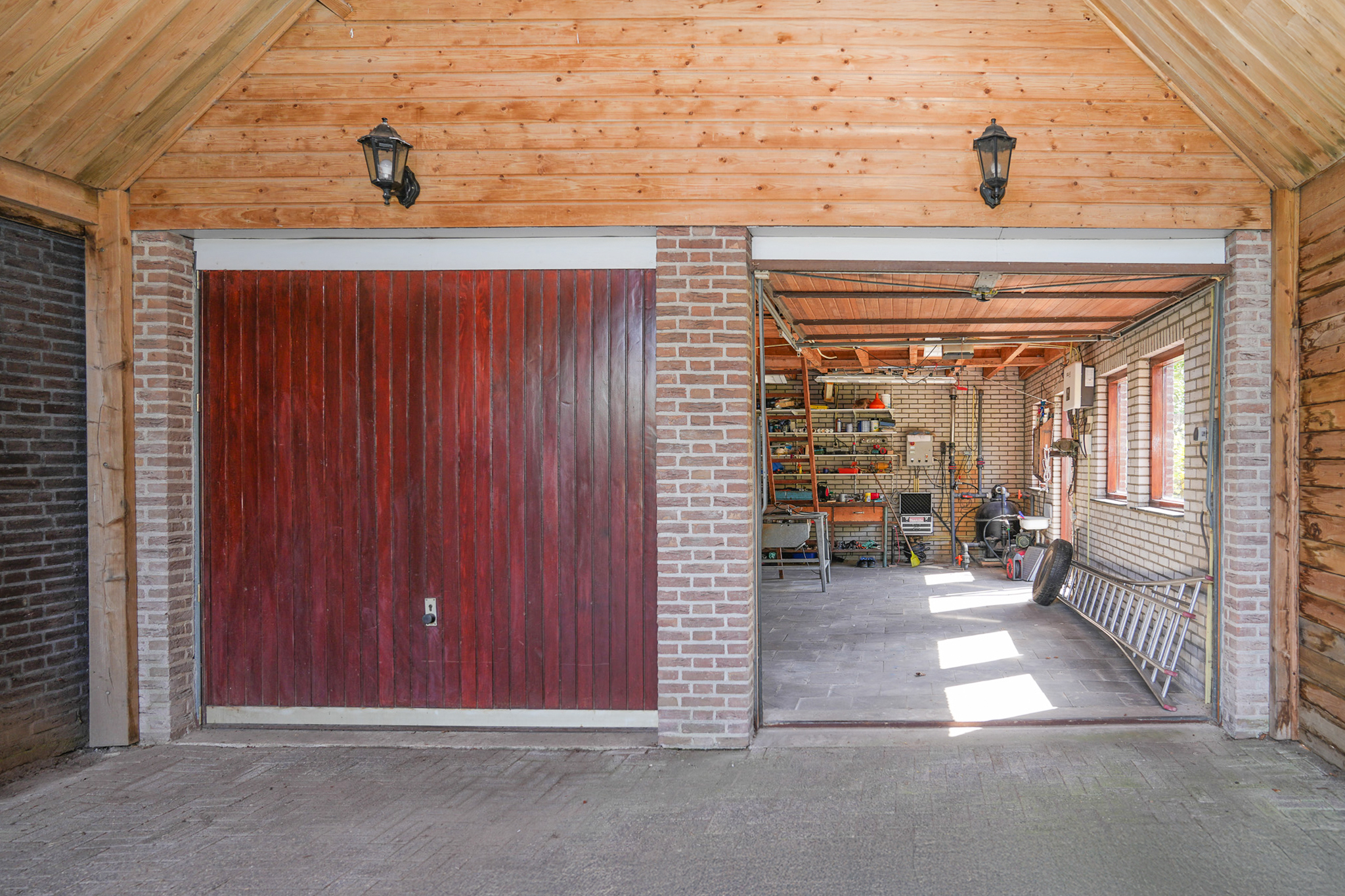 Op de oprit is plaats voor circa 5 auto’s, waarvan 2 onder de stijlvolle carport. De garage is zowel vanuit de tuin als de oprit bereikbaar en voorzien van elektra, wateraansluiting en een ruime bergvliering. Hier bevindt zich tevens de grondwaterpomp installatie en de installatie voor het zwembad. De garage biedt volop ruimte voor het parkeren van auto’s, het stallen van fietsen en het opbergen van (tuin)gereedschap.