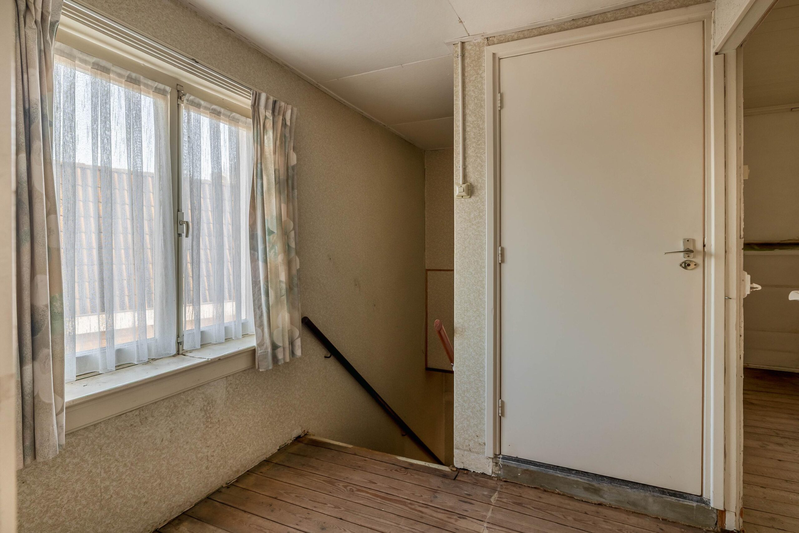Begane grond: Entree/hal met de meterkast en toegang tot de woonkamer. Het hoge plafond in de woonkamer zorgt voor een extra ruimtelijk effect. Vanuit de woonkamer is er toegang tot de keuken met een recht keukenmeubel. In de keuken vind je een loopdeur naar de tuin, de trapopgang naar de verdieping en een handige trapkast. De hele woning dient opgeknapt/gemoderniseerd te worden.