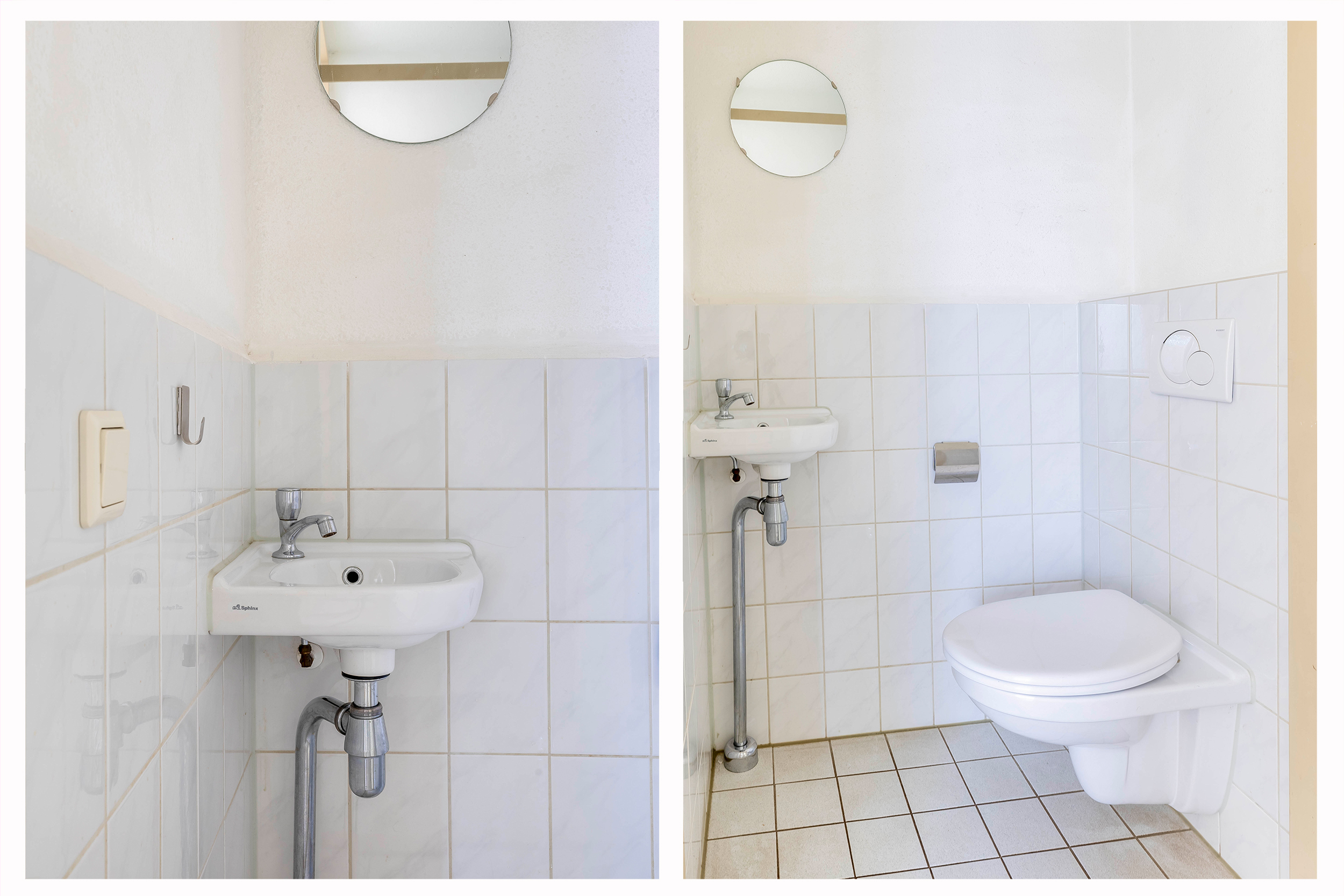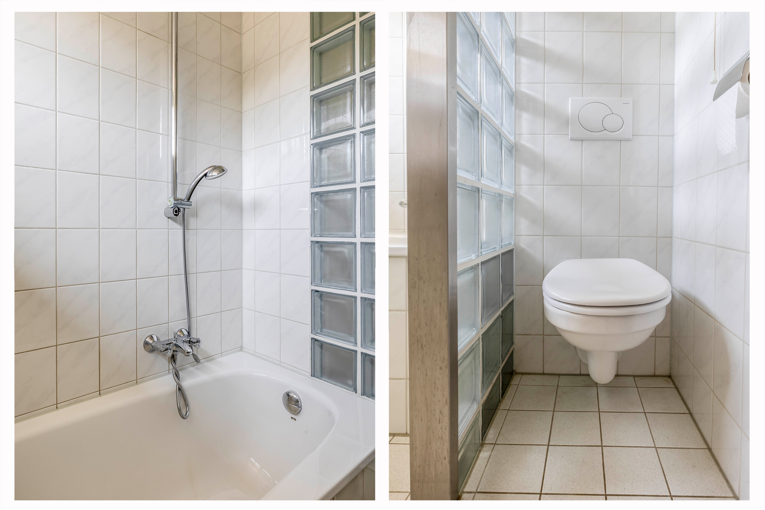 Eerste verdieping: Via de overloop heb je toegang tot 3 slaapkamers en de badkamer. De overloop en slaapkamers zijn afgewerkt met een laminaatvloer. De hoofdslaapkamer is aan de voorzijde gesitueerd en de overige 2 slaapkamers zijn aan de achterzijde gesitueerd en voorzien van een dakkapel. De badkamer is geheel betegeld en beschikt over een bad-douche combinatie, toilet en dubbele wastafel. Een te openen raam zorgt voor de natuurlijke ventilatie.