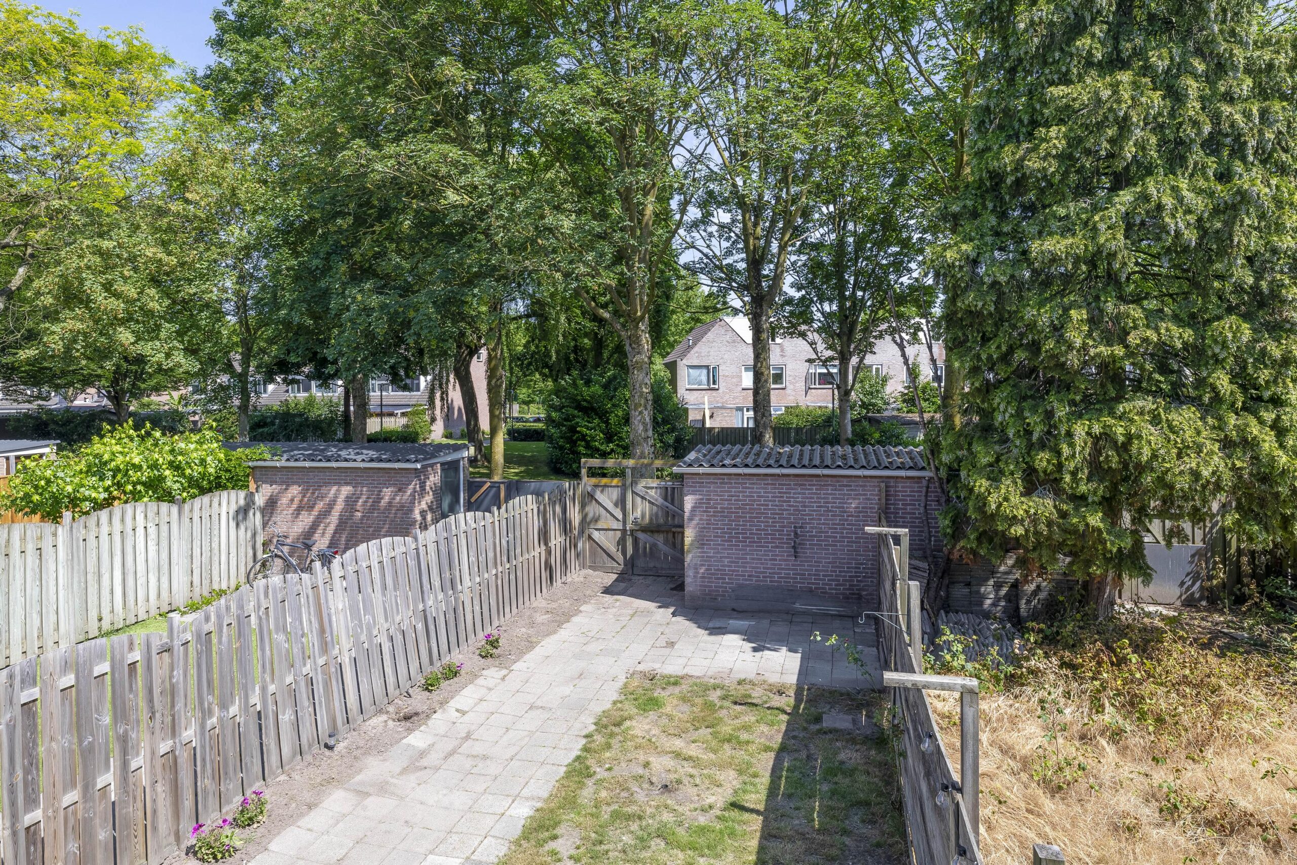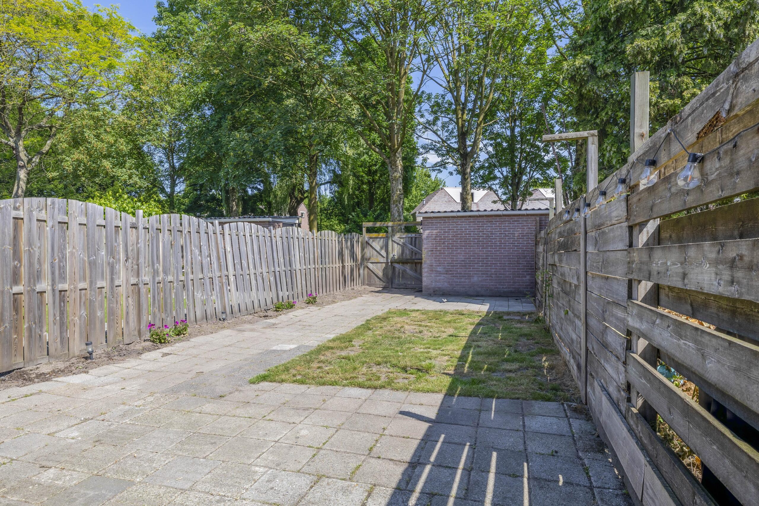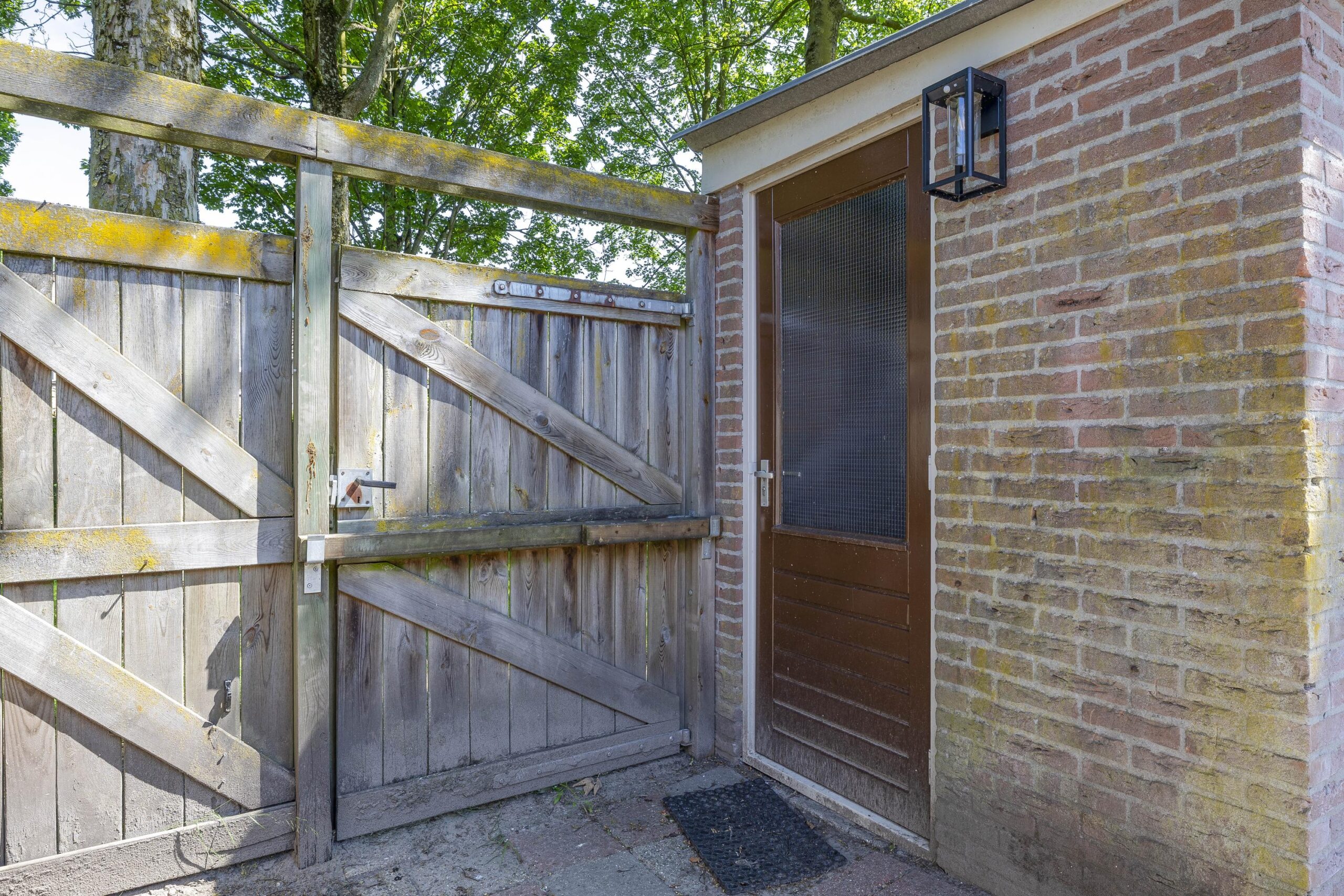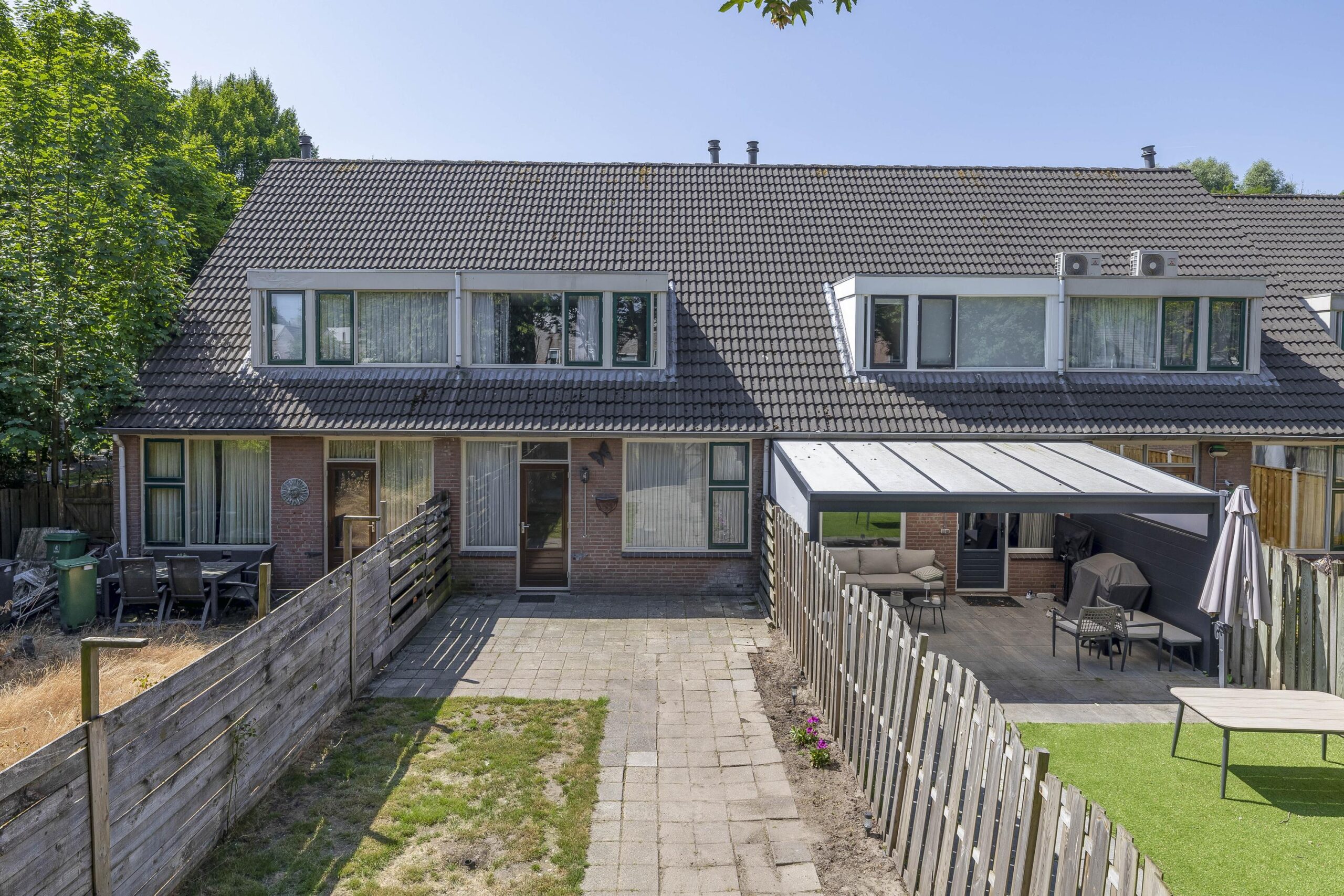 De achtertuin beschikt over een eigen achterom en is gesitueerd op het noorden. De diepe tuin is aangelegd met een stenen terras en borders. Door de vrije ligging aan de achterzijde geniet je in deze tuin van veel privacy. Achter in de tuin tref je een berging voorzien van elektra. Hier kun je onder andere je tuinmeubel opbergen en je fietsen plaatsen.