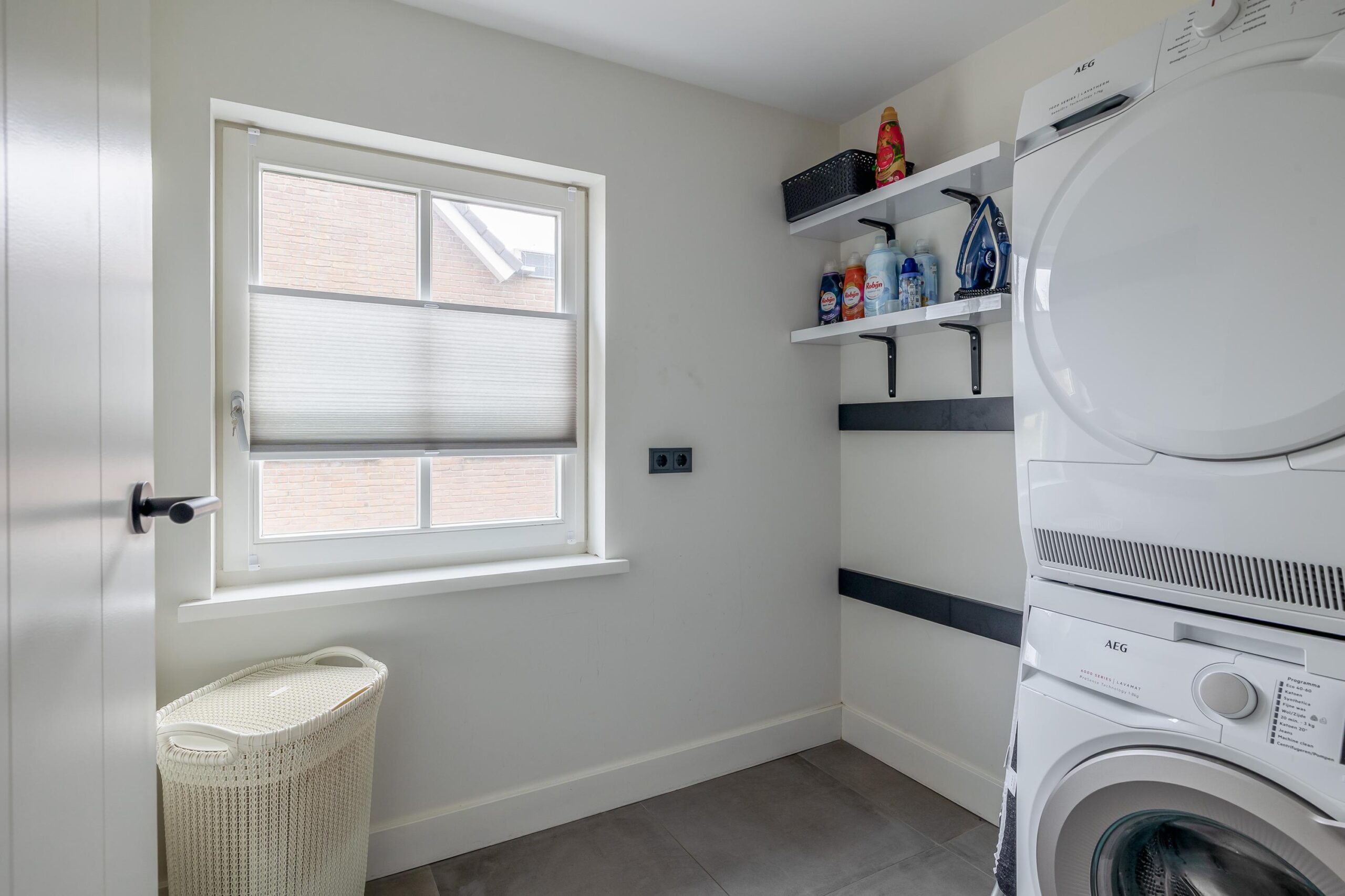 Eerste verdieping: Op de eerste verdieping bevinden zich drie slaapkamers, een wasruimte, de badkamer en een separaat toilet met inbouwcloset. De moderne badkamer is smaakvol ingericht en voorzien van een badkamermeubel met wastafel, spiegel, inbouwkranen en een inloopdouche. In de wasruimte vindt u de aansluitingen voor wasmachine en droger. De slaapkamers zijn netjes afgewerkt met strak stucwerk op wanden en plafonds en vloerbedekking. Alle kamers beschikken over airconditioning en ingebouwde elektrische rolluiken. De hoofdslaapkamer is voorzien van een op maat gemaakte kastenwand.