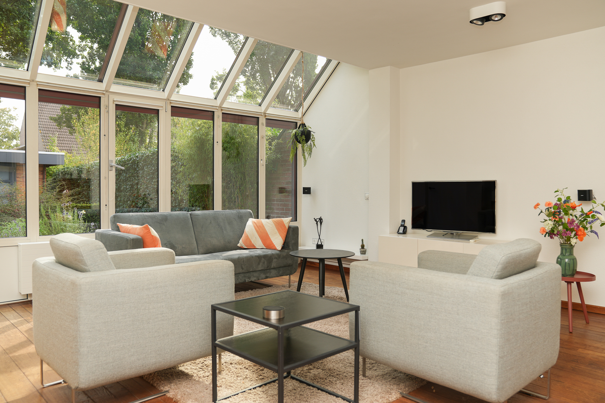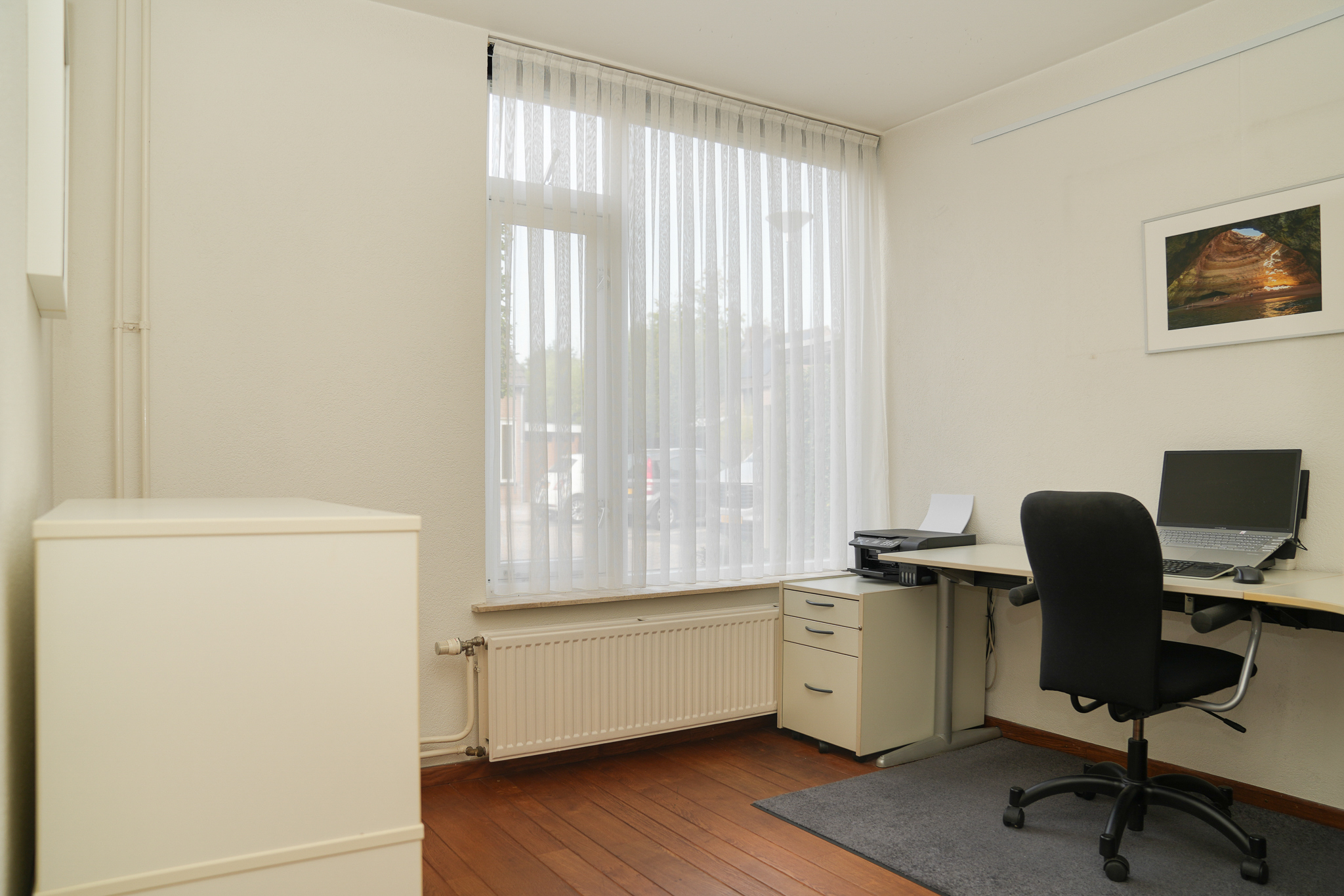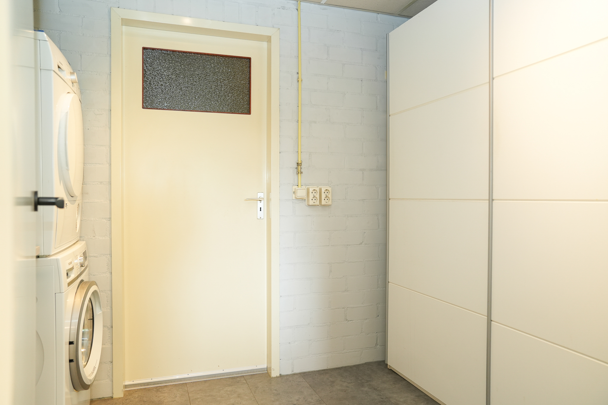 Begane grond: Entree/hal met meterkast, trapopgang en toiletruimte met inbouwcloset en fonteintje. Vanuit de hal toegang tot de woonkamer. De ruime woonkamer is fraai afgewerkt met strak stucwerk en een sfeervolle eikenhouten vloer. De woning is aan de achterzijde uitgebouwd en voorzien van een lichtstraat en een glazen pui over de volledige breedte, wat zorgt voor veel lichtinval. De pui is uitgerust met een elektrisch screen. In de woonkamer bevindt zich een trapkast, handig voor uw proviand of het opbergen van spullen. De aparte keuken is ingericht met een hoekopstelling voorzien van boven- en onderkasten, granieten werkblad, gaskookstel, afzuigkap, oven, koelkast, 1½ spoelbak en vaatwasser. In de bijkeuken bevinden zich de aansluitingen voor wasmachine en droger, een tweede meterkast en de toegang tot de garage. Vanuit de woonkamer is er ook toegang tot een aparte ruimte wat uitermate geschikt is als thuiswerkplek of speelkamer voor de kinderen.