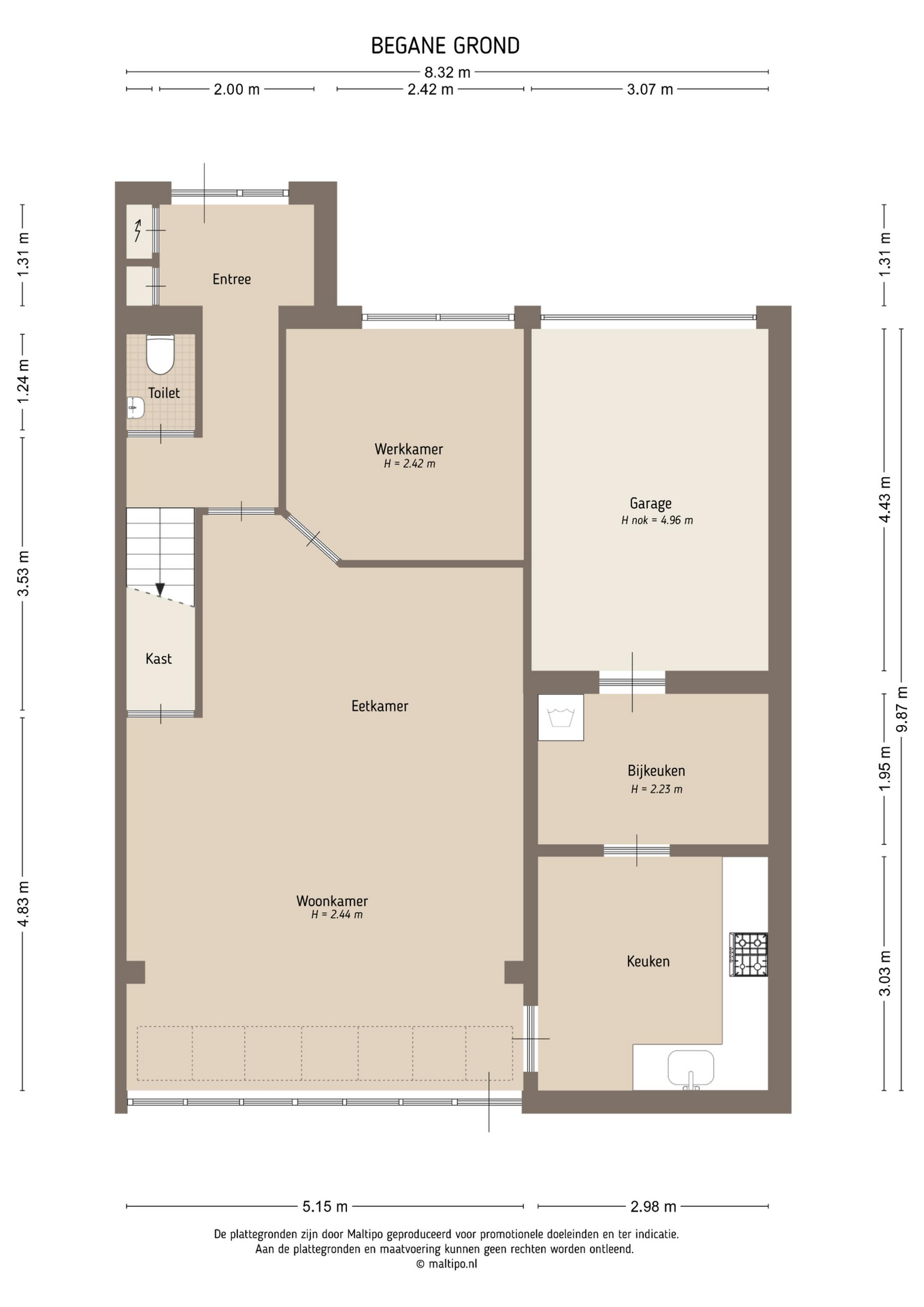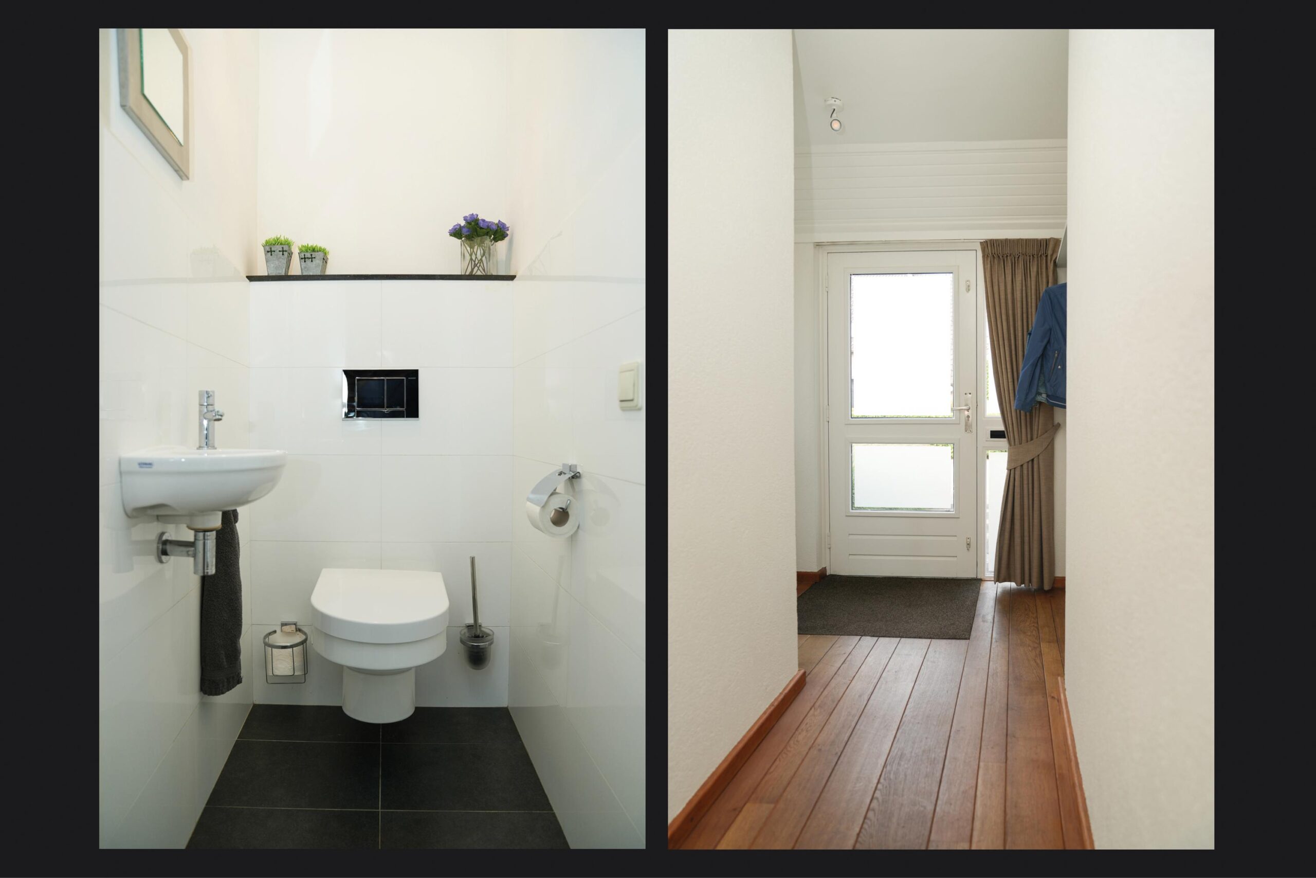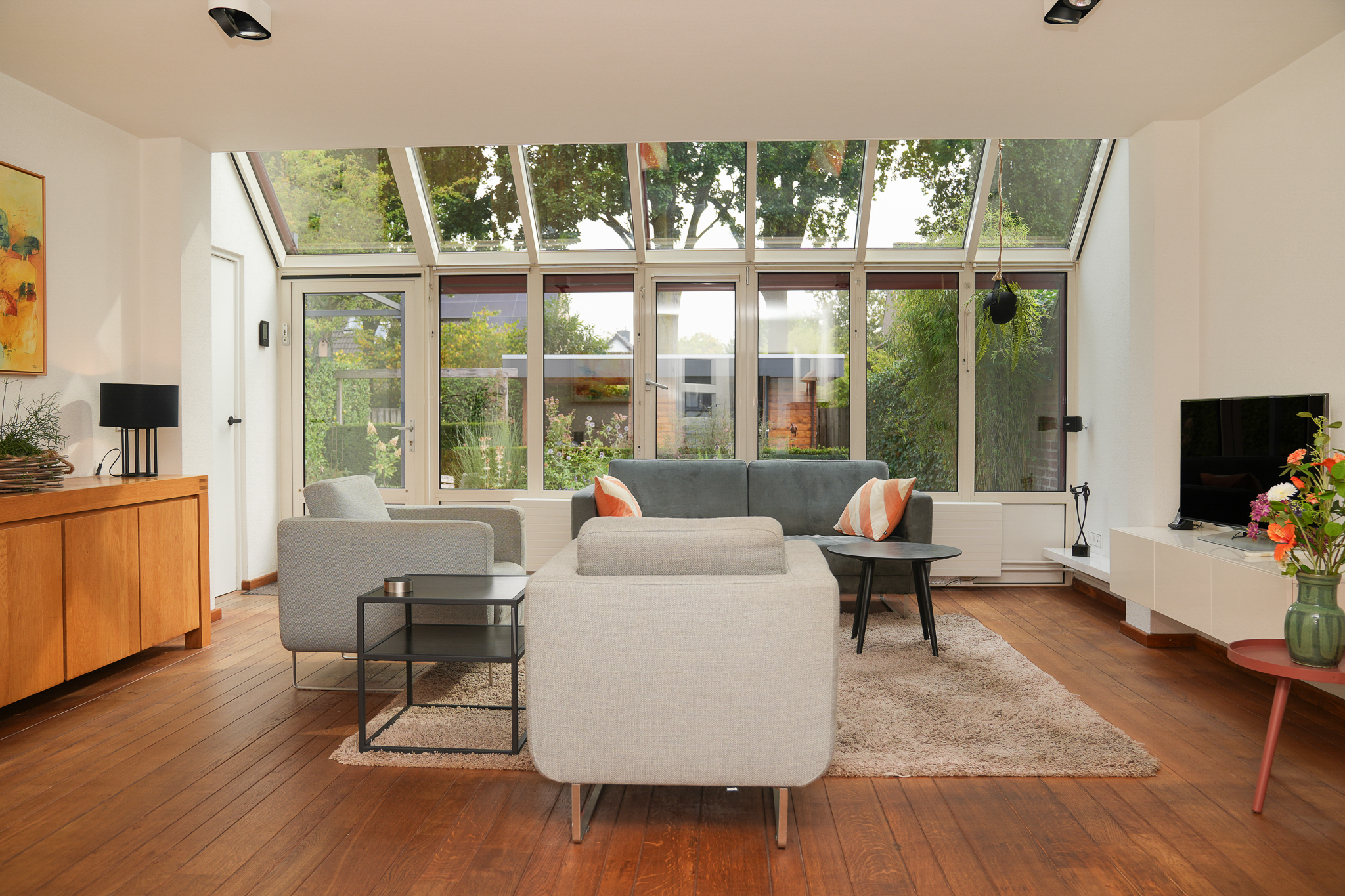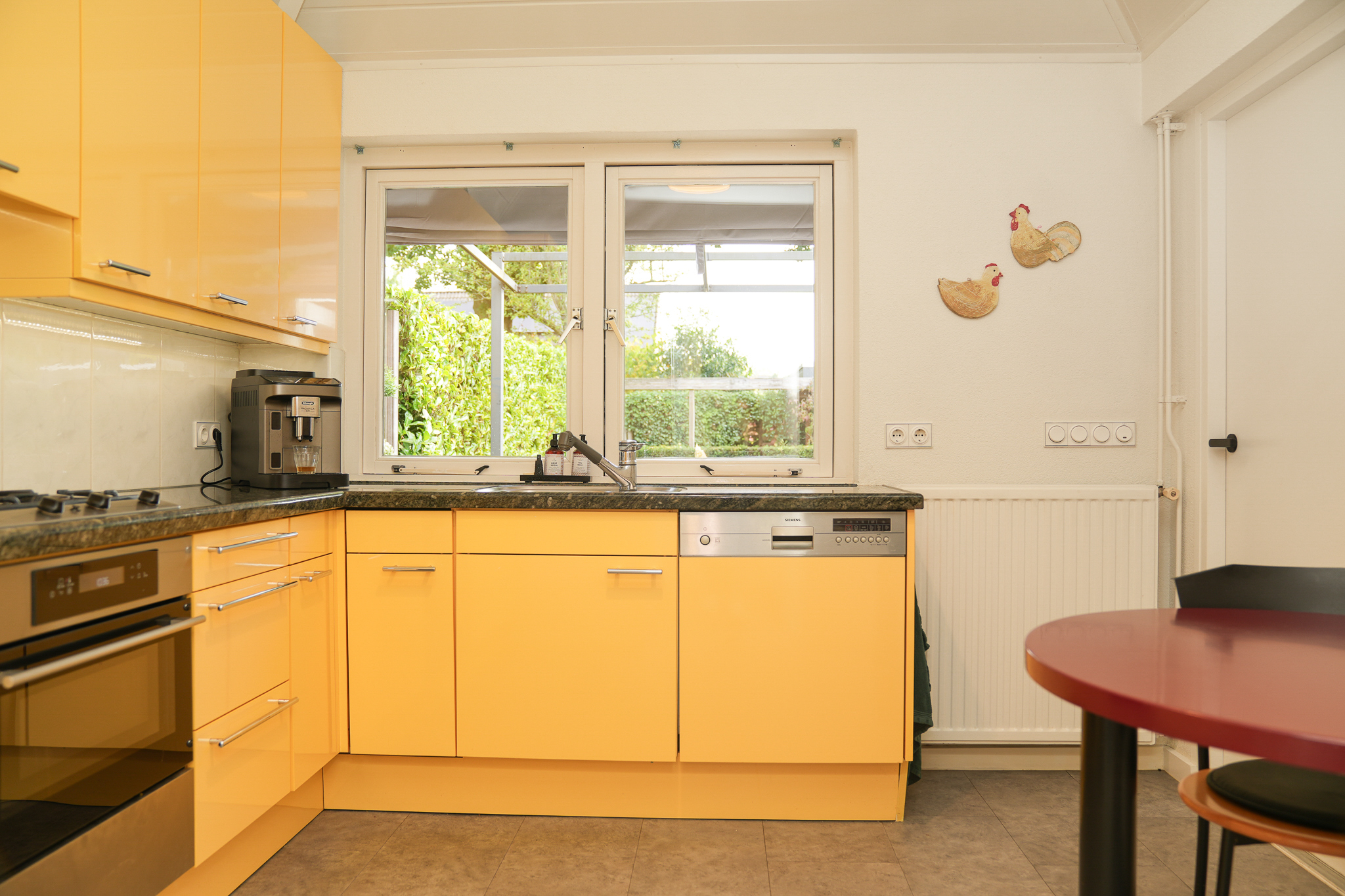 Begane grond: Entree/hal met meterkast, trapopgang en toiletruimte met inbouwcloset en fonteintje. Vanuit de hal toegang tot de woonkamer. De ruime woonkamer is fraai afgewerkt met strak stucwerk en een sfeervolle eikenhouten vloer. De woning is aan de achterzijde uitgebouwd en voorzien van een lichtstraat en een glazen pui over de volledige breedte, wat zorgt voor veel lichtinval. De pui is uitgerust met een elektrisch screen. In de woonkamer bevindt zich een trapkast, handig voor uw proviand of het opbergen van spullen. De aparte keuken is ingericht met een hoekopstelling voorzien van boven- en onderkasten, granieten werkblad, gaskookstel, afzuigkap, oven, koelkast, 1½ spoelbak en vaatwasser. In de bijkeuken bevinden zich de aansluitingen voor wasmachine en droger, een tweede meterkast en de toegang tot de garage. Vanuit de woonkamer is er ook toegang tot een aparte ruimte wat uitermate geschikt is als thuiswerkplek of speelkamer voor de kinderen.