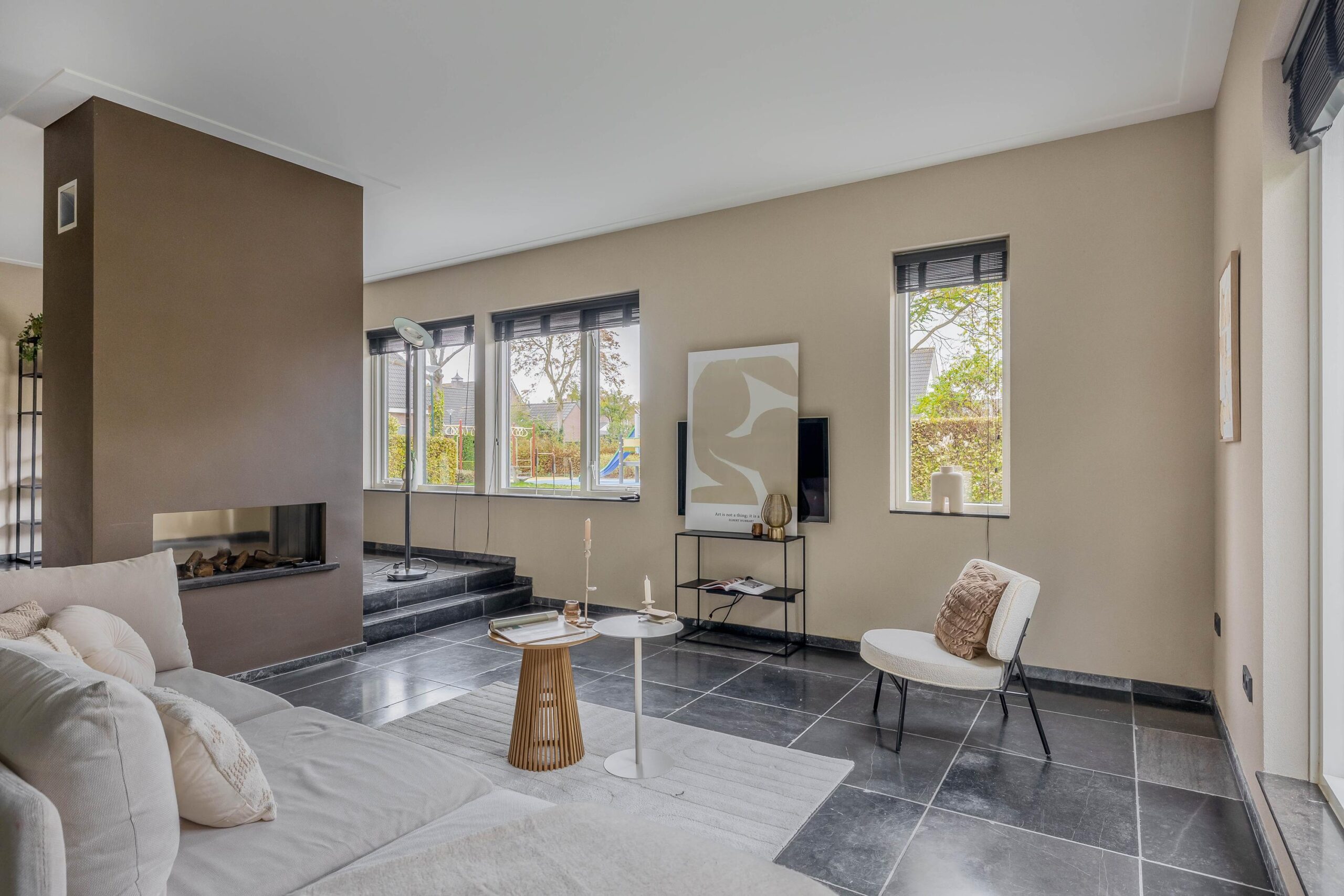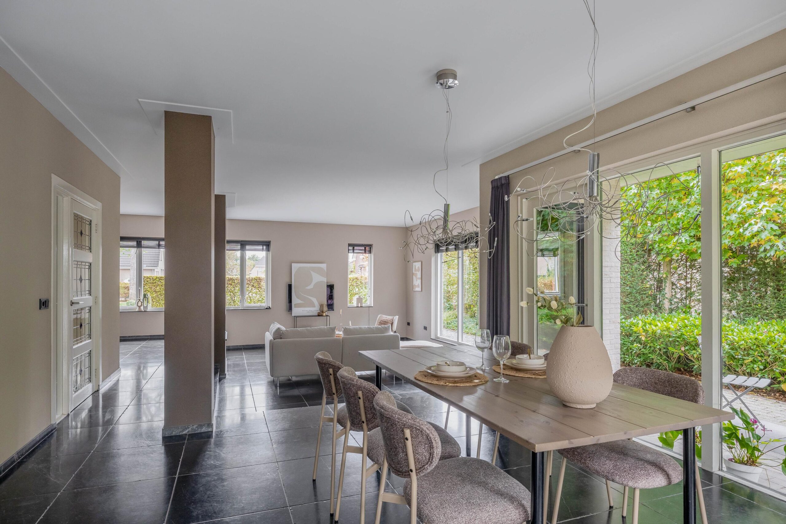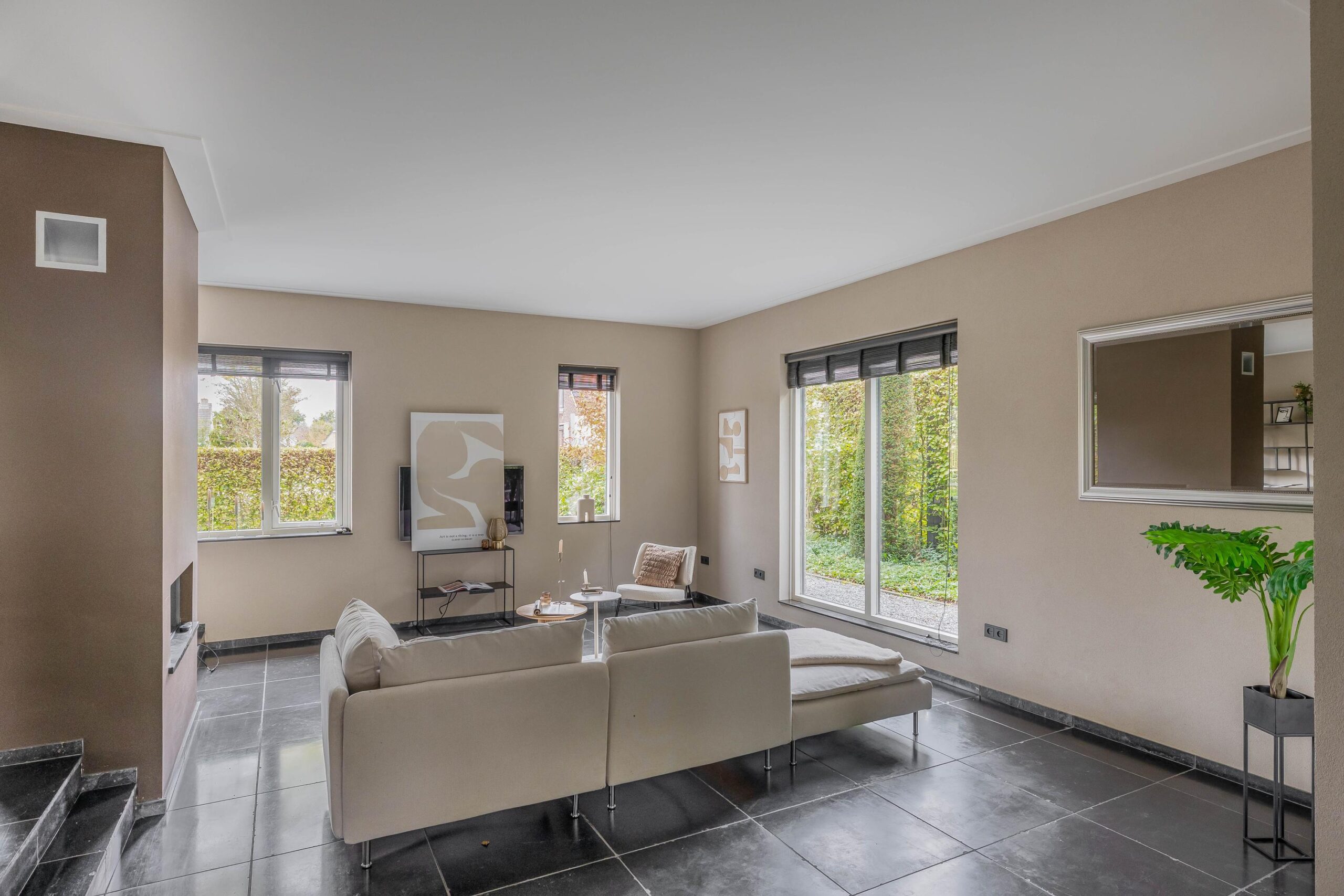 * Woonkamer met riante raampartijen