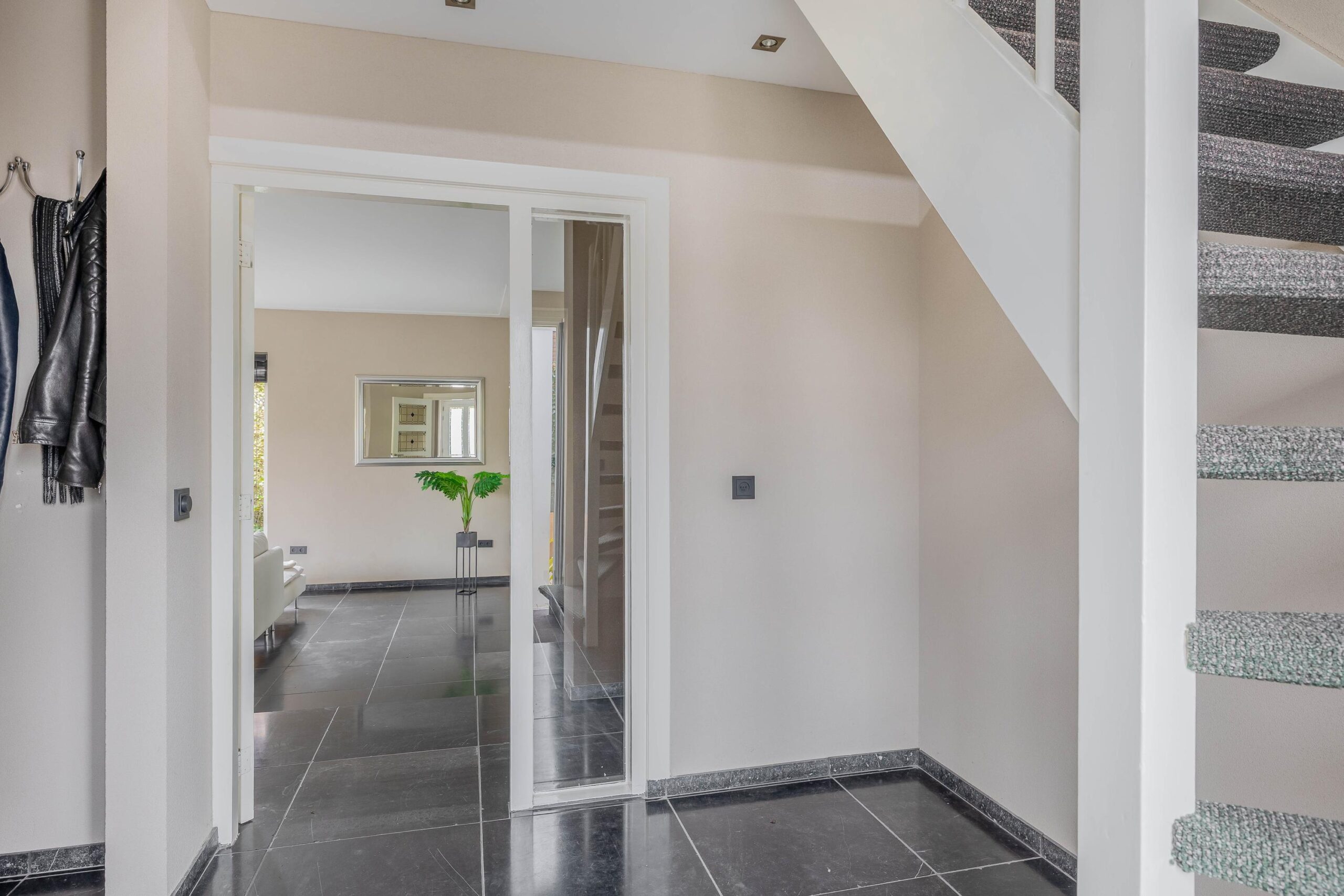 Begane grond: U komt binnen in de hal met de meterkast, garderobe nis, trapopgang naar de verdieping en de toiletruimte met inbouwcloset en fonteintje. De hal is afgewerkt met strak gestucte wanden en plafond en een donkere tegelvloer met daaronder comfortabele vloerverwarming. De leefruimte op de begane grond is zeer royaal. De woonkamer is gerealiseerd in een zitkuil en voorzien van een sfeervolle doorkijk gashaard. Aan de andere kant vindt u een perfecte ruimte voor een thuiswerkplek of speelruimte voor kinderen. Aansluitend vindt u de woonkeuken met ruimte voor een grote eettafel. In 2024 is er een nieuwe moderne keuken geplaatst. Het keukenmeubel beschikt over veel werk- en bergruimte, spoelbak, inductie kookstel met afzuigkap (Bora), combi- oven/stoomoven, koelkast, vriezer en een vaatwasser. De keuken is uitstekend afgewerkt en is een heerlijke plek om gezellig samen te komen met familie of vrienden! De begane grond beschikt over diverse grote raampartijen waardoor de ruimtes heerlijk licht zijn! Via de keuken komt u in de bijkeuken met een keukenmeubel met spoelbak en loopdeur naar de tuin. Aansluitend vindt u de wasruimte met de aansluiting voor uw wasmachine en een toilet.