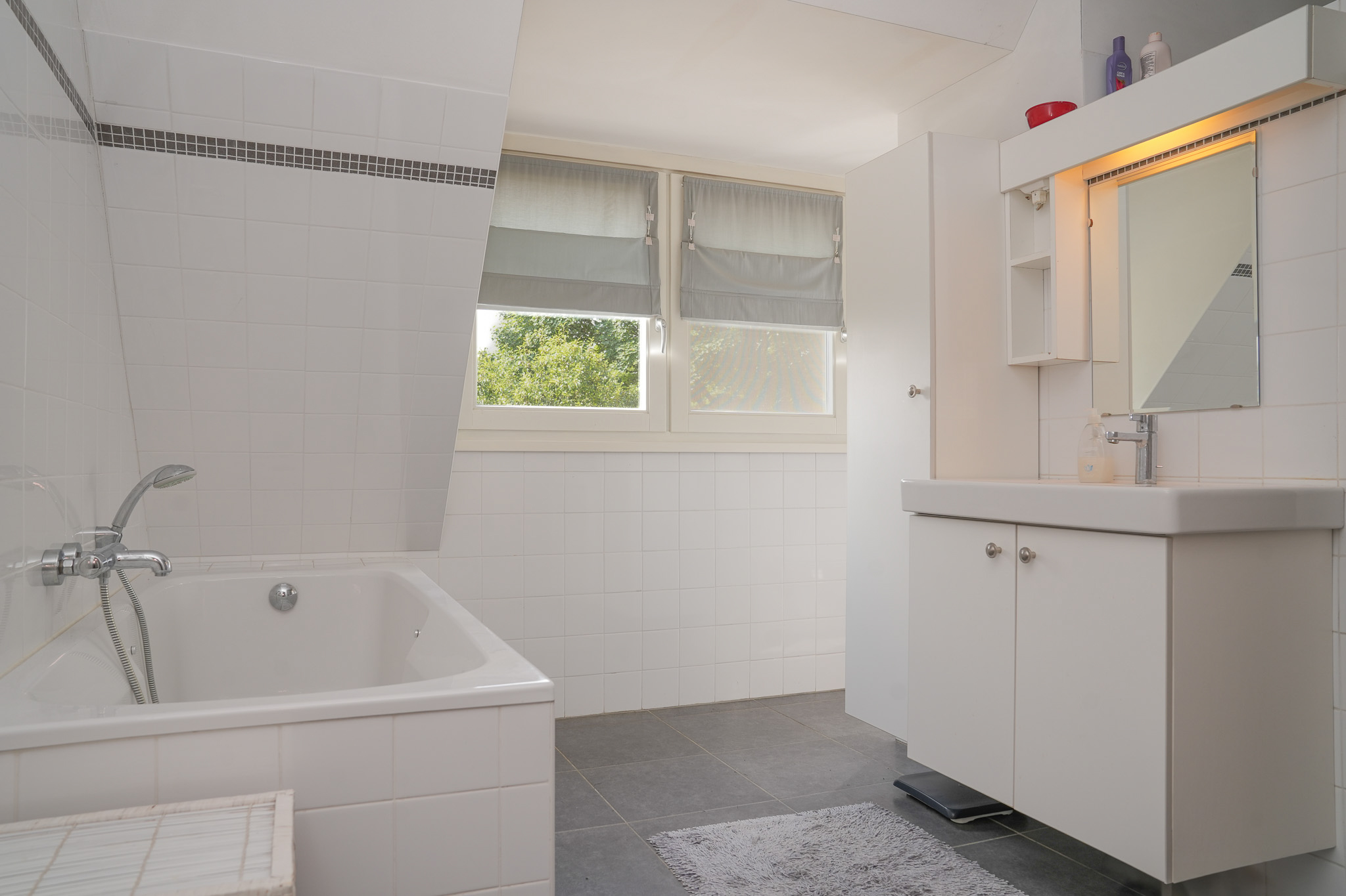 Verdieping: Via de overloop heeft u toegang tot drie ruime slaapkamers en een riante badkamer. De badkamer is volledig betegeld en uitgerust met een ligbad, inloopdouche, wastafelmeubel, inbouwcloset, designradiator en vloerverwarming. De slaapkamers zijn fraai afgewerkt met stucwerk en vloerbedekking. Eén van de slaapkamers beschikt over een praktische inbouwkast; een andere kamer is dankzij een dakkapel opvallend ruim en licht.