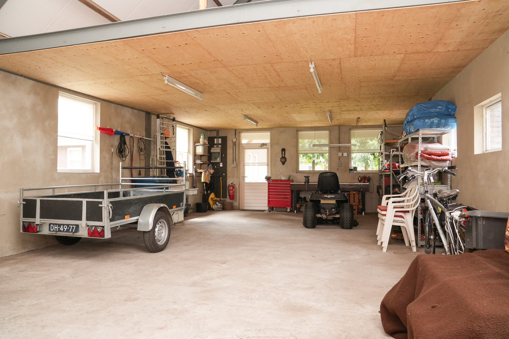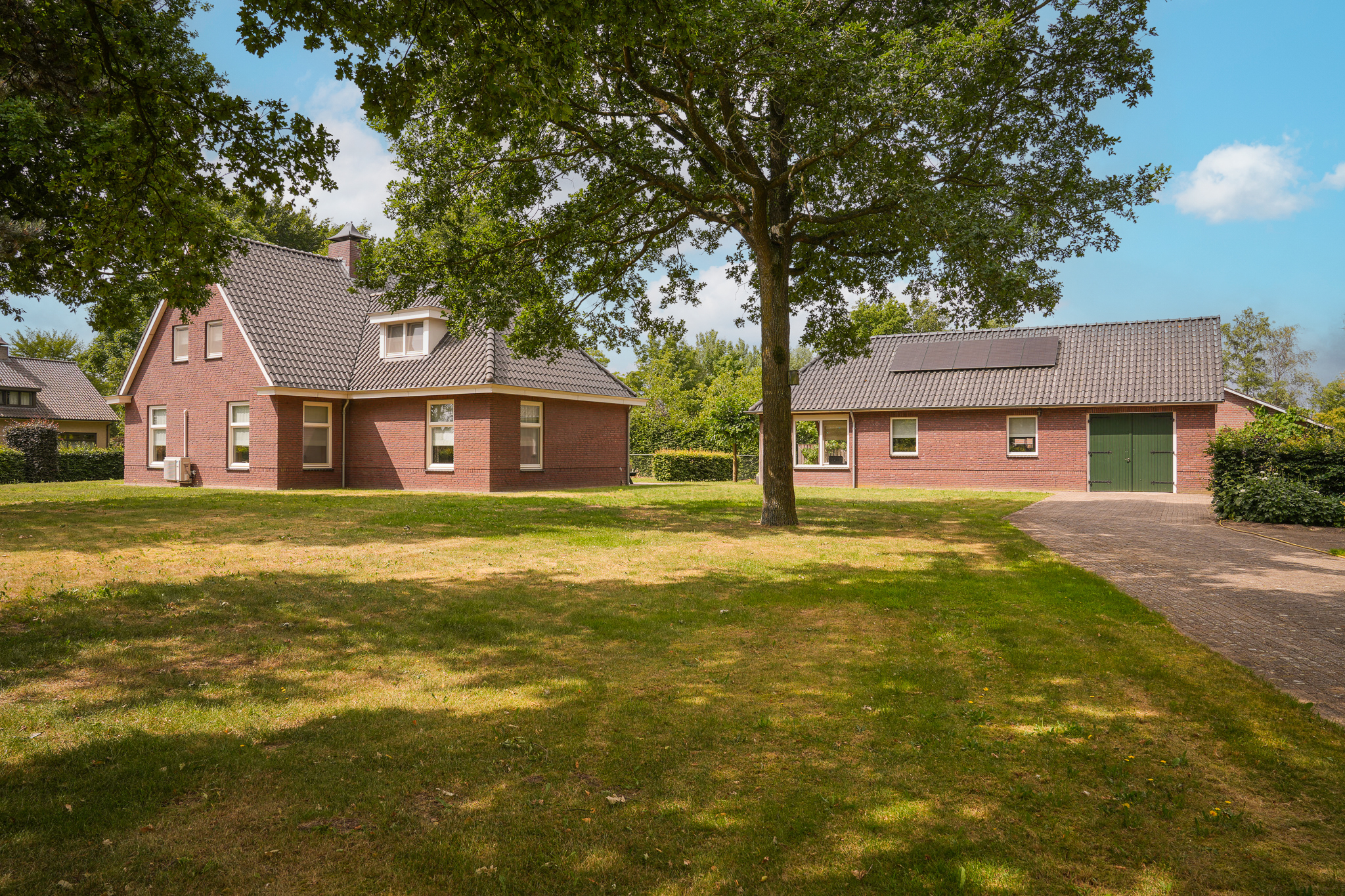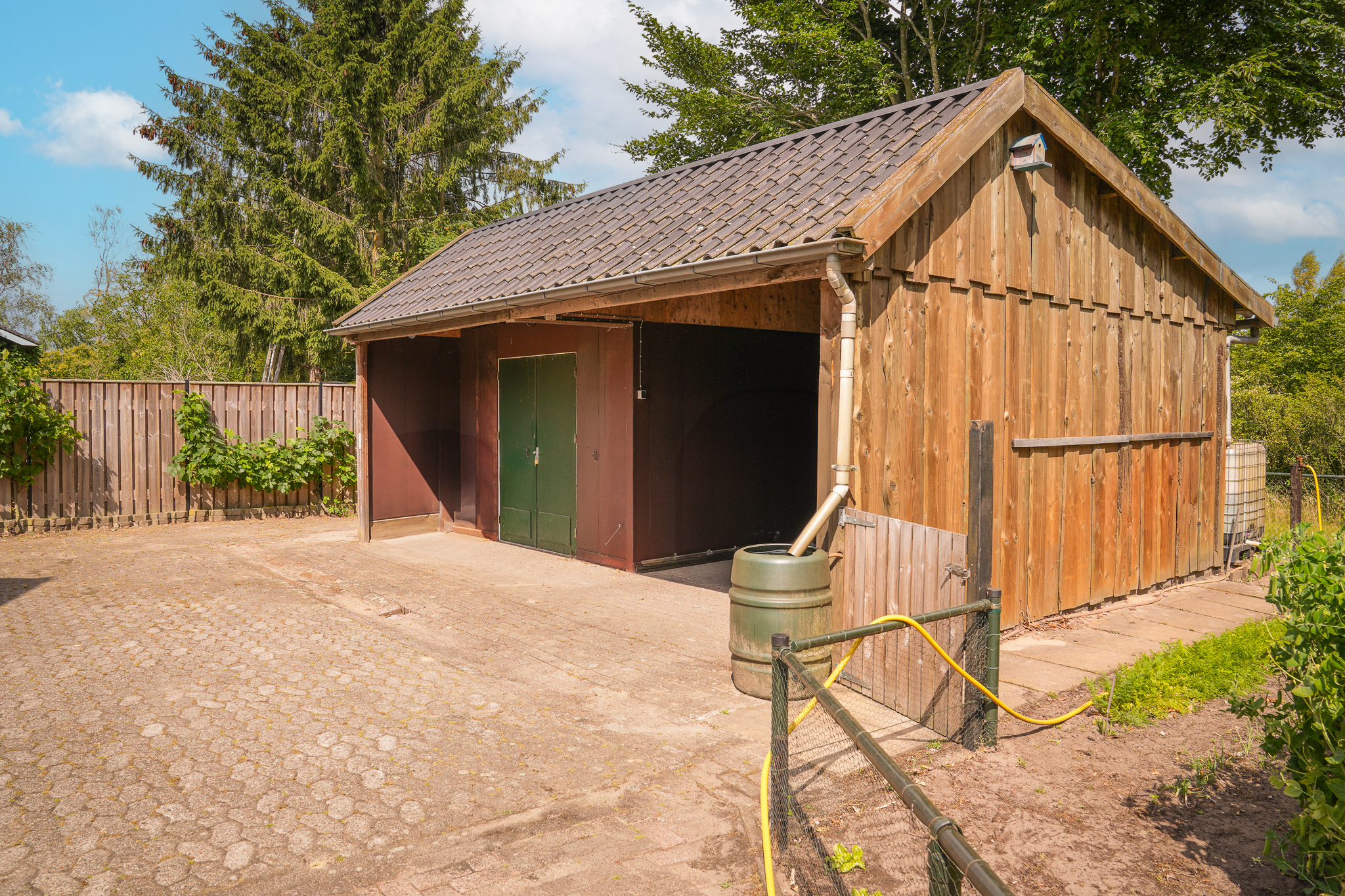 De ruime garage is voorzien van elektra en water en ideaal voor het opbergen van fietsen, (tuin)gereedschap of om uw auto droog te stallen. Ook vindt u hier een laadpaal. Op de vliering is extra opbergruimte aanwezig, evenals de verdeelkast voor de 20 zonnepanelen. Daarnaast staat er in de tuin nog een praktische veldschuur, bijvoorbeeld voor de opslag van hout of andere materialen. Ook vindt u hier een carport voor uw auto.
