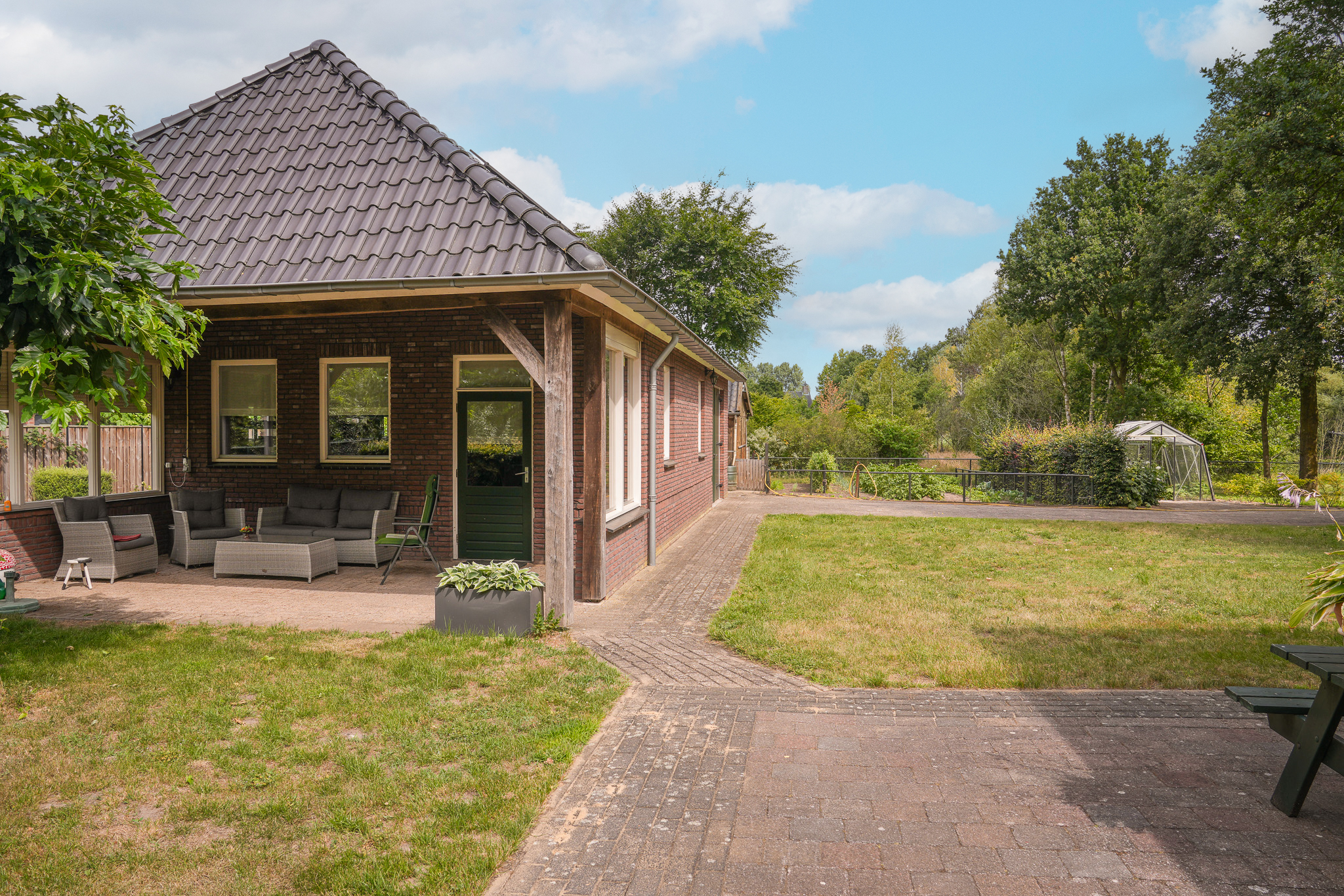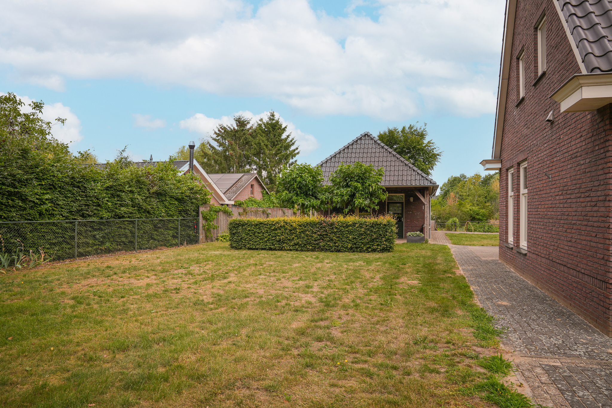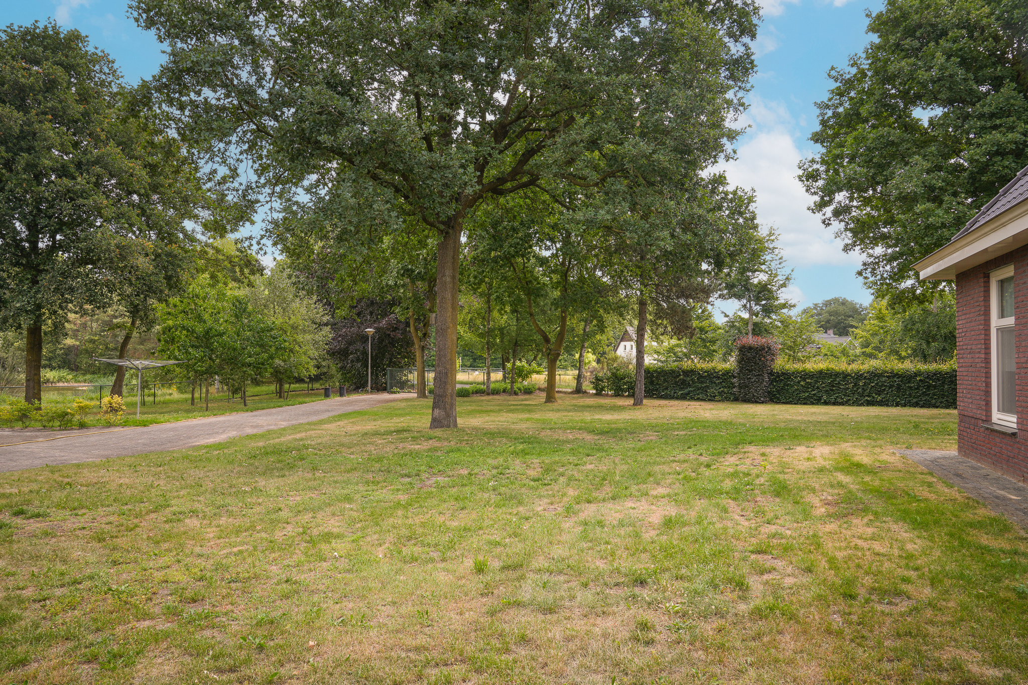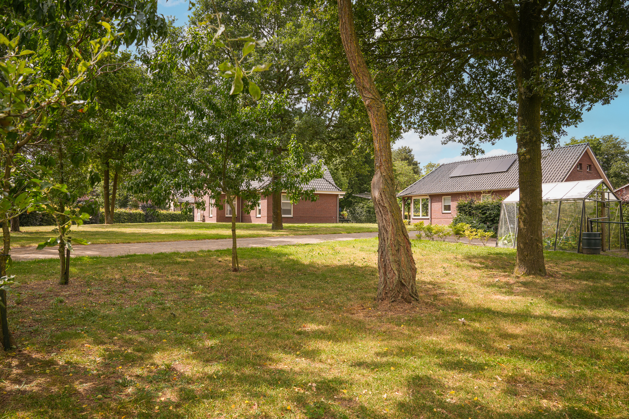 Deze vrijstaande woning staat op een riant perceel van maar liefst 2.895 m² en wordt omgeven door een schitterend aangelegde, volledig omheinde tuin. Denk aan een parkachtig gazon, volwassen bomen, kleurrijke borders en vaste beplanting. De tuin ademt rust en ruimte en dankzij de overkapping is het hier heerlijk vertoeven, zélfs op koelere avonden. Op eigen terrein is volop parkeergelegenheid aanwezig. Vanuit de tuin geniet u van een weids, groen uitzicht. Een unieke plek om elke dag weer tot rust te komen.