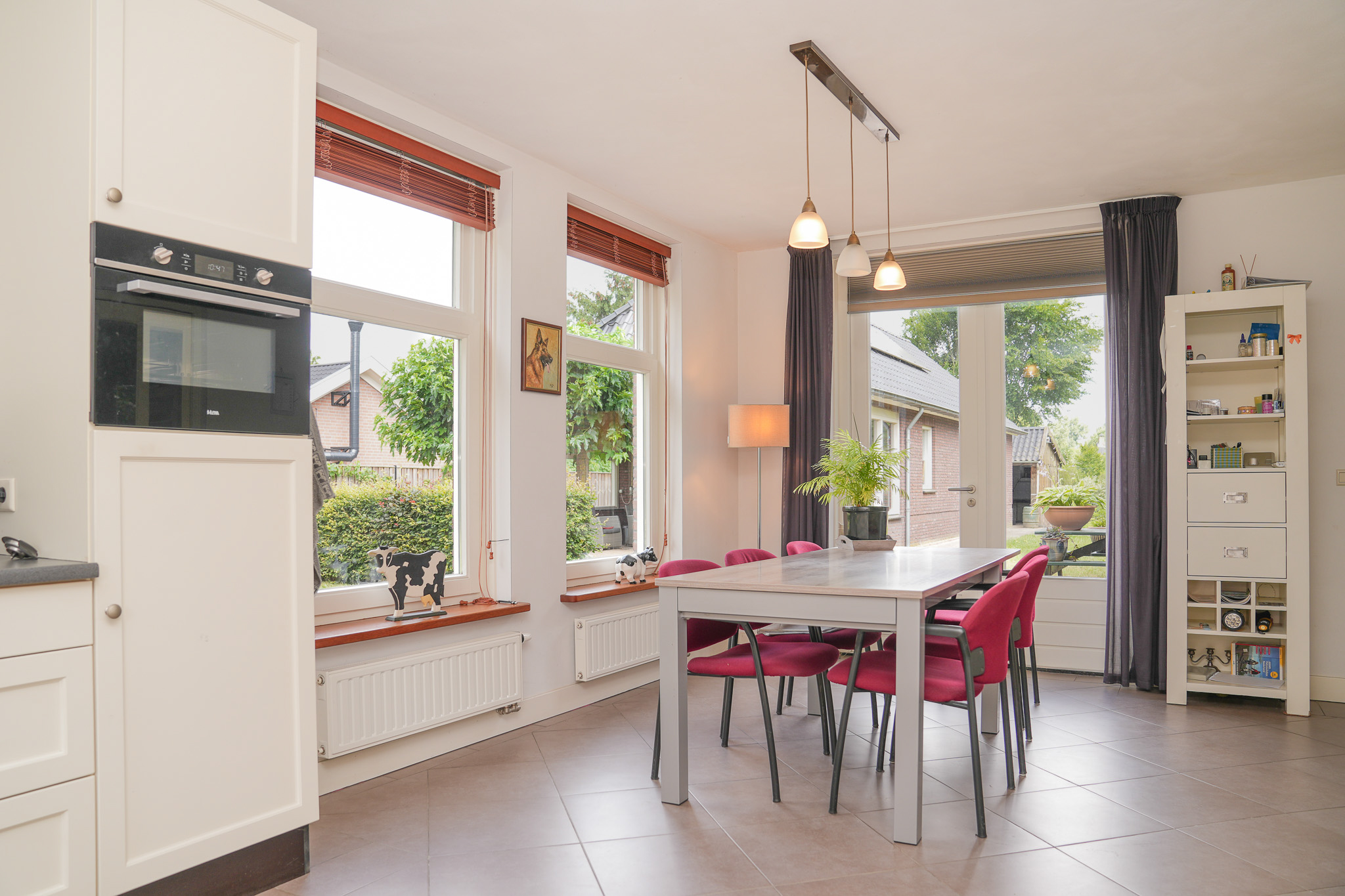 Begane grond: U betreedt de woning via de ruime hal, voorzien van een meterkast, garderobenis en trapopgang. De afwerking is strak en stijlvol met gestucte wanden, een plafond en een mooie tegelvloer met comfortabele vloerverwarming die doorloopt in de keuken. De aparte keuken is opgesteld in een praktische U-vorm en biedt veel werk- en kastruimte. Voorzien van inbouwapparatuur zoals een koelkast, inductiekookplaat, afzuigkap, combi-oven/magnetron, dubbele spoelbak en vaatwasser. De handige trapkast biedt extra bergruimte voor proviand of keukengerei. De ruime woonkamer is licht en sfeervol, met grote raampartijen die uitzicht bieden op de tuin en zorgen voor een fijne natuurlijke lichtinval. Er is een aansluiting voor een haard, wat zorgt voor extra warmte en sfeer. Aan de achterzijde van de woning bevindt zich een tussenportaal met de achterom, een toiletruimte met inbouwcloset en fonteintje en de bijkeuken met een wastafel en de aansluitingen voor wasmachine en droger. Daarnaast is er op de begane grond een multifunctionele ruimte die bereikbaar is vanuit de woonkamer. Deze kamer is uitstekend geschikt als speelkamer, thuiskantoor of slaapkamer. Dankzij de aanwezigheid van een badkamer met douche en wastafel is deze woning ook levensloopbestendig.
