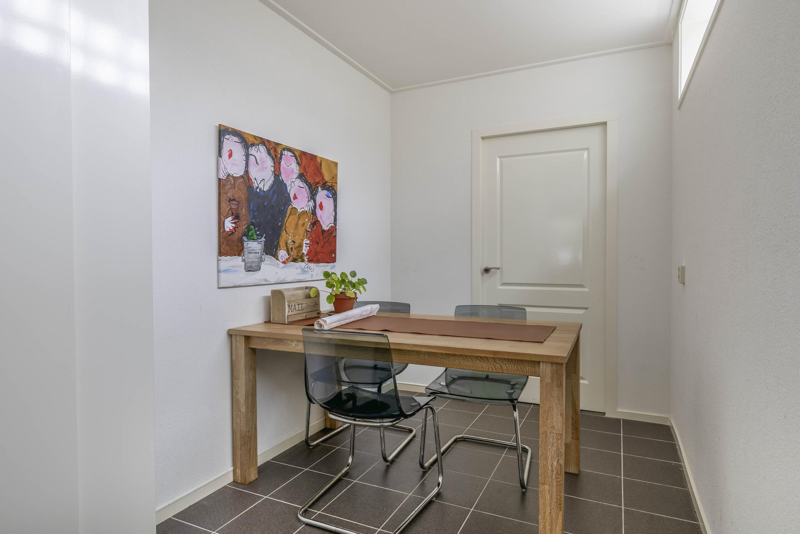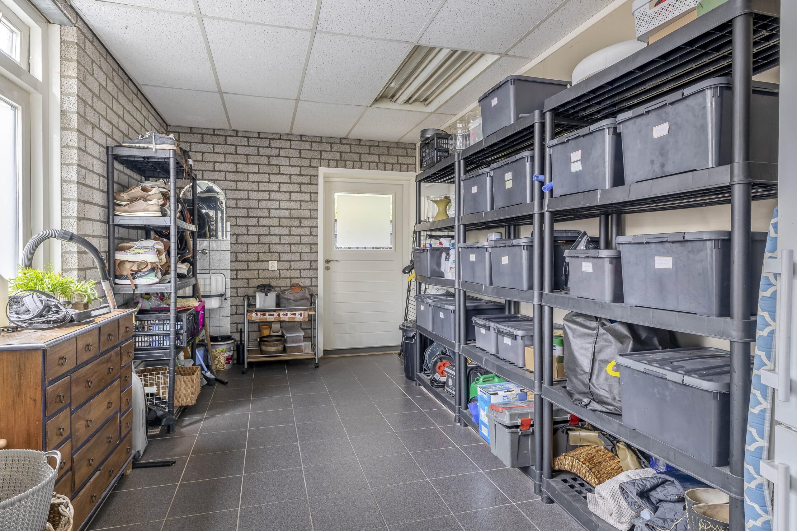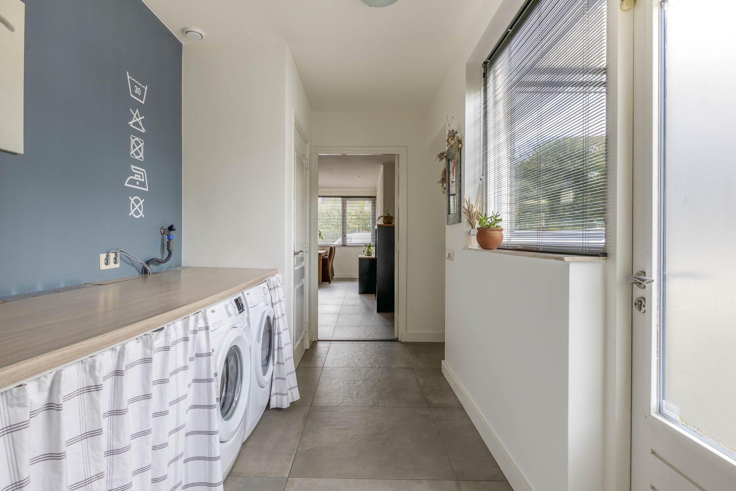 Begane grond: Via het overdekte entree komt u binnen in de hal. Hier bevinden zich de uitgebreide meterkast, een garderobenis en de moderne toiletruimte met inbouwcloset en fonteintje. De gehele begane grond is keurig afgewerkt met stucwerk wanden en plafonds en voorzien van een mooie tegelvloer met comfortabele vloerverwarming. De royale woonkamer biedt ruimte voor zowel een fijne zithoek als een ruime eethoek. Grote raampartijen van vloer tot plafond aan de voorzijde zorgen voor een prettige lichtinval. Een sfeervolle gashaard maakt het geheel compleet. Via openslaande deuren heeft u toegang tot de achtertuin. De aparte woonkeuken is ingericht met een groot, in hoekopgesteld keukenmeubel in lichte kleurstelling en biedt veel werkruimte. De keuken is uitgerust met een 1½ spoelbak, inductiekookplaat, afzuigkap, combi-oven/magnetron, koelkast en vaatwasser. Aansluitend vindt u de bijkeuken met aansluitingen voor wasmachine en droger en toegang tot een berging met gootsteen en loopdeur naar de tuin en een multifunctionele ruimte. Deze kamer is eveneens bereikbaar vanuit de hal én via een aparte entree vanaf de oprit. De kamer is bijzonder ruim met een oppervlakte van maar liefst 28 m² en is voorzien van een gootsteen, airconditioning en veel bergruimte. Deze ruimte leent zich uitstekend als kantoor, salon, thuiswerkplek of speelkamer. Aangrenzend bevindt zich een extra ruimte, waarin zich in een aparte kast de opstelling van de cv-installatie bevindt (Intergas HRE, 2025).