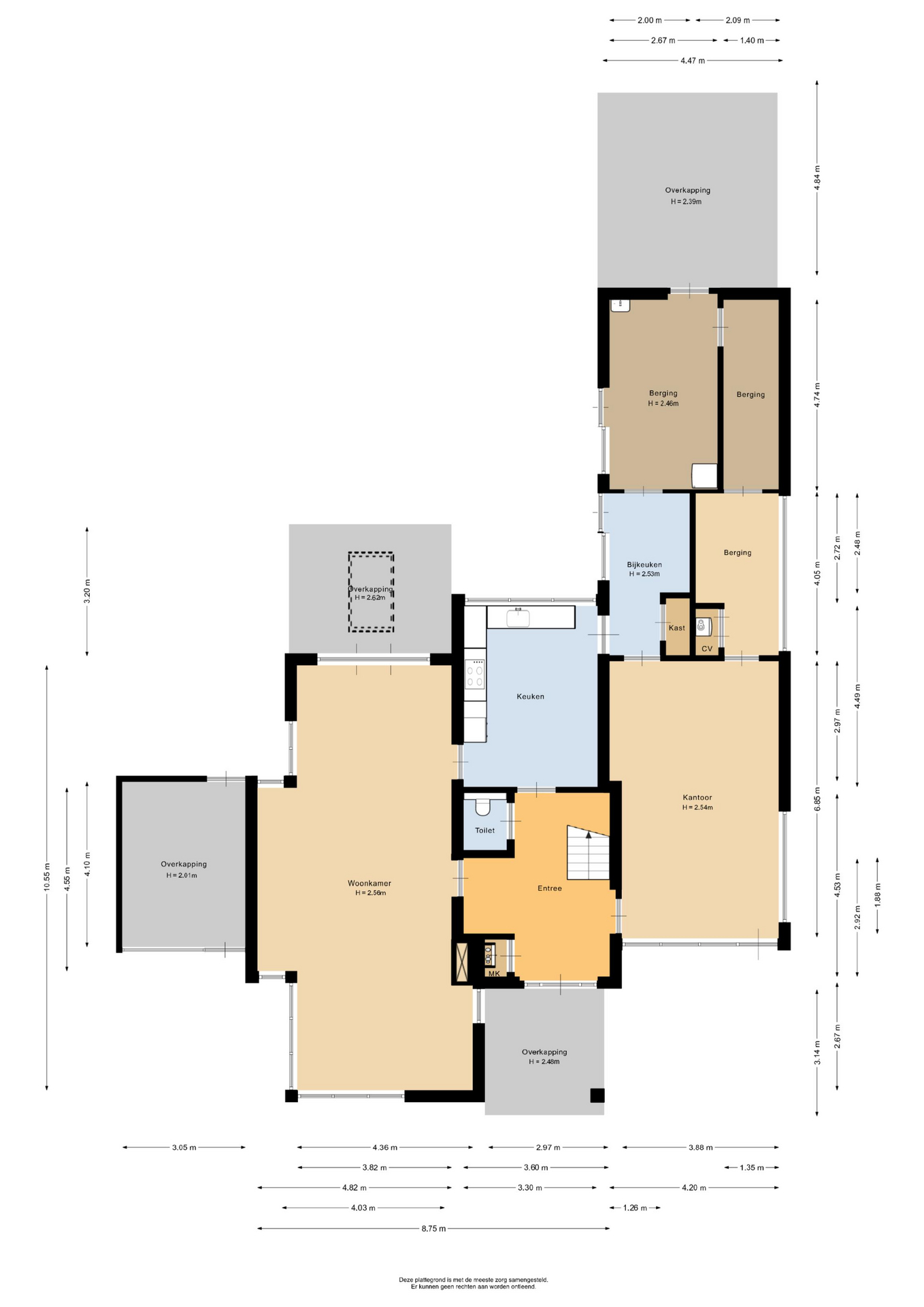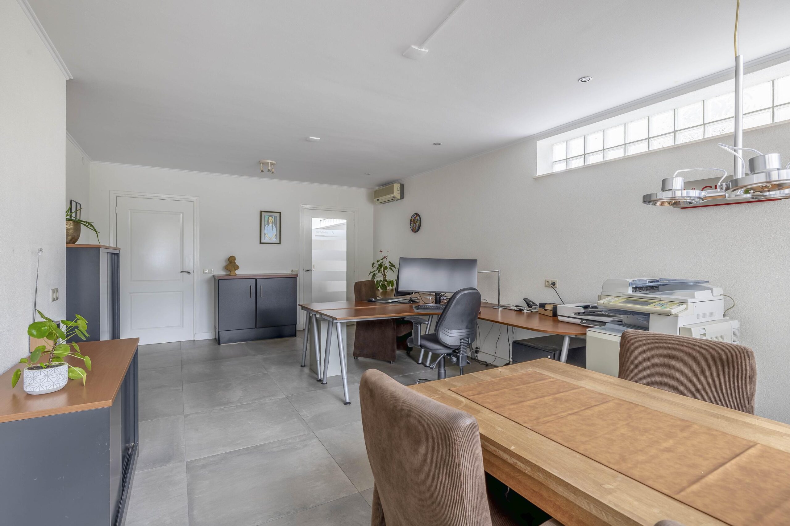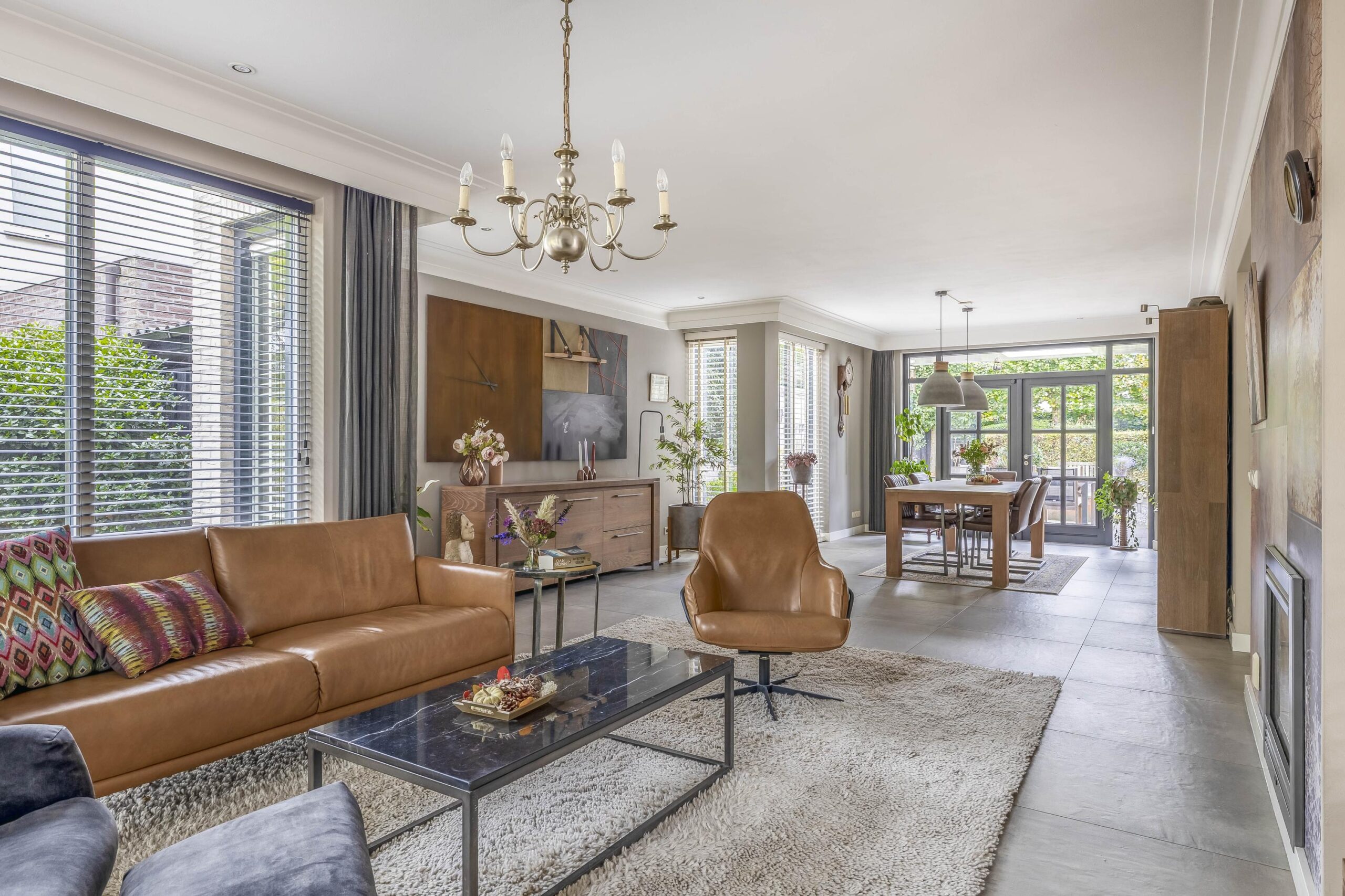 Begane grond: Via het overdekte entree komt u binnen in de hal. Hier bevinden zich de uitgebreide meterkast, een garderobenis en de moderne toiletruimte met inbouwcloset en fonteintje. De gehele begane grond is keurig afgewerkt met stucwerk wanden en plafonds en voorzien van een mooie tegelvloer met comfortabele vloerverwarming. De royale woonkamer biedt ruimte voor zowel een fijne zithoek als een ruime eethoek. Grote raampartijen van vloer tot plafond aan de voorzijde zorgen voor een prettige lichtinval. Een sfeervolle gashaard maakt het geheel compleet. Via openslaande deuren heeft u toegang tot de achtertuin. De aparte woonkeuken is ingericht met een groot, in hoekopgesteld keukenmeubel in lichte kleurstelling en biedt veel werkruimte. De keuken is uitgerust met een 1½ spoelbak, inductiekookplaat, afzuigkap, combi-oven/magnetron, koelkast en vaatwasser. Aansluitend vindt u de bijkeuken met aansluitingen voor wasmachine en droger en toegang tot een berging met gootsteen en loopdeur naar de tuin en een multifunctionele ruimte. Deze kamer is eveneens bereikbaar vanuit de hal én via een aparte entree vanaf de oprit. De kamer is bijzonder ruim met een oppervlakte van maar liefst 28 m² en is voorzien van een gootsteen, airconditioning en veel bergruimte. Deze ruimte leent zich uitstekend als kantoor, salon, thuiswerkplek of speelkamer. Aangrenzend bevindt zich een extra ruimte, waarin zich in een aparte kast de opstelling van de cv-installatie bevindt (Intergas HRE, 2025).