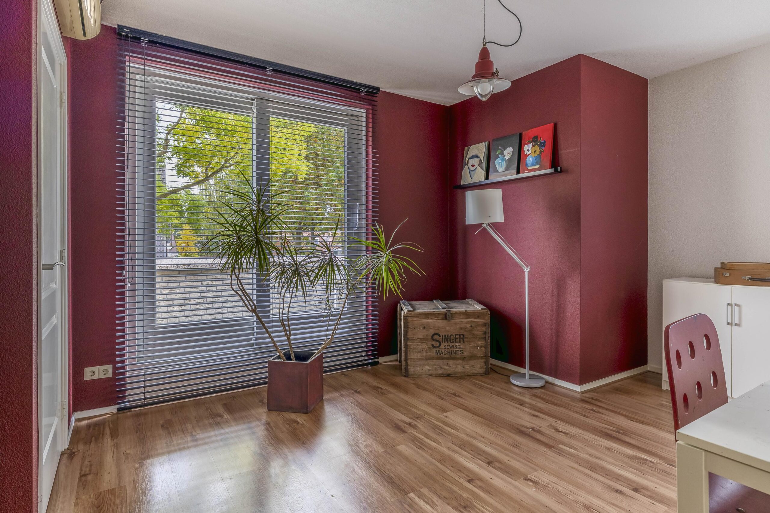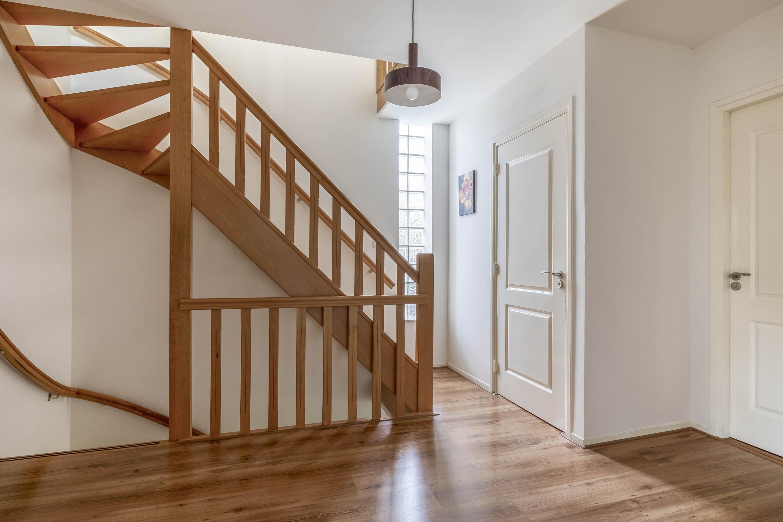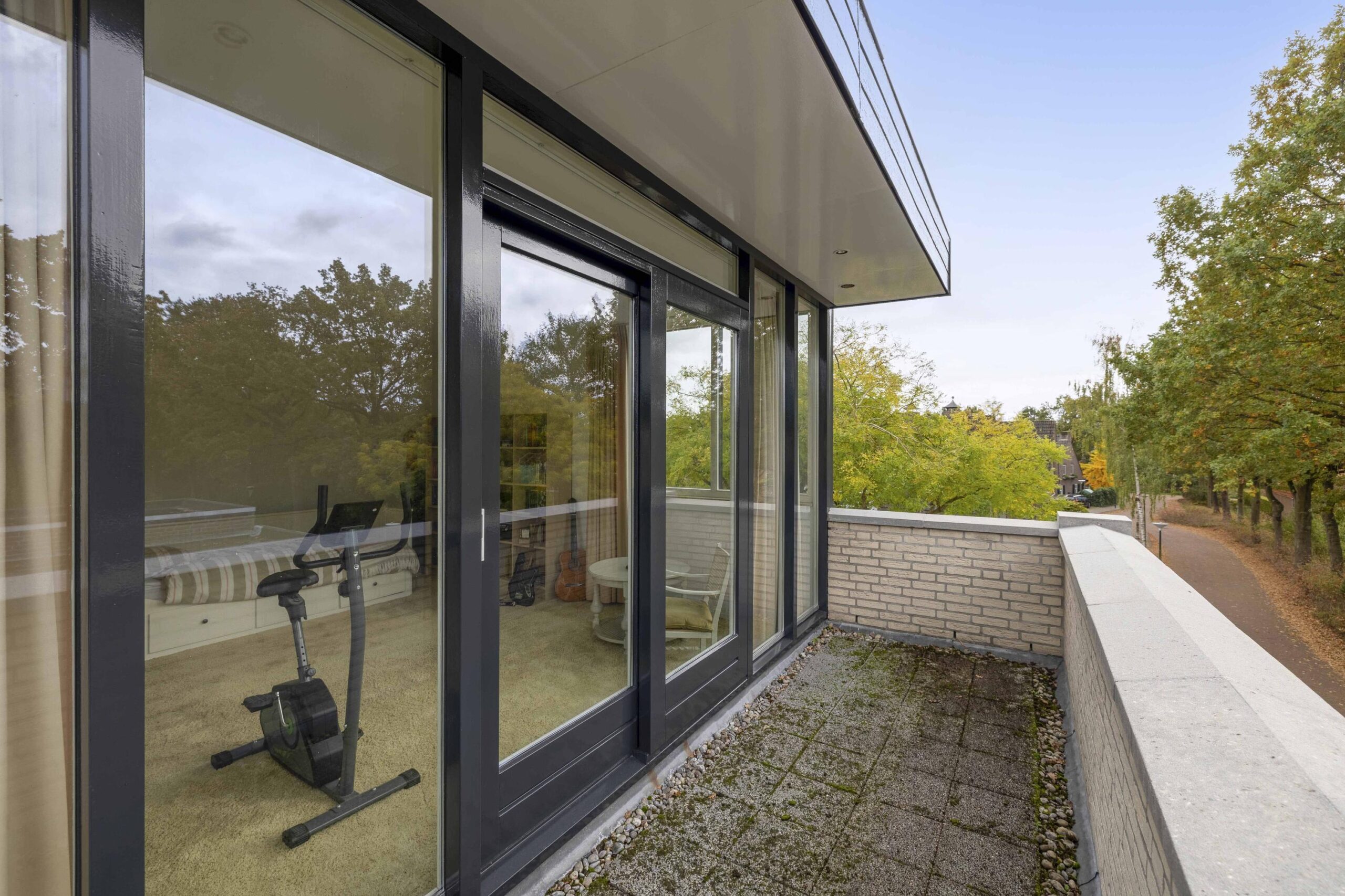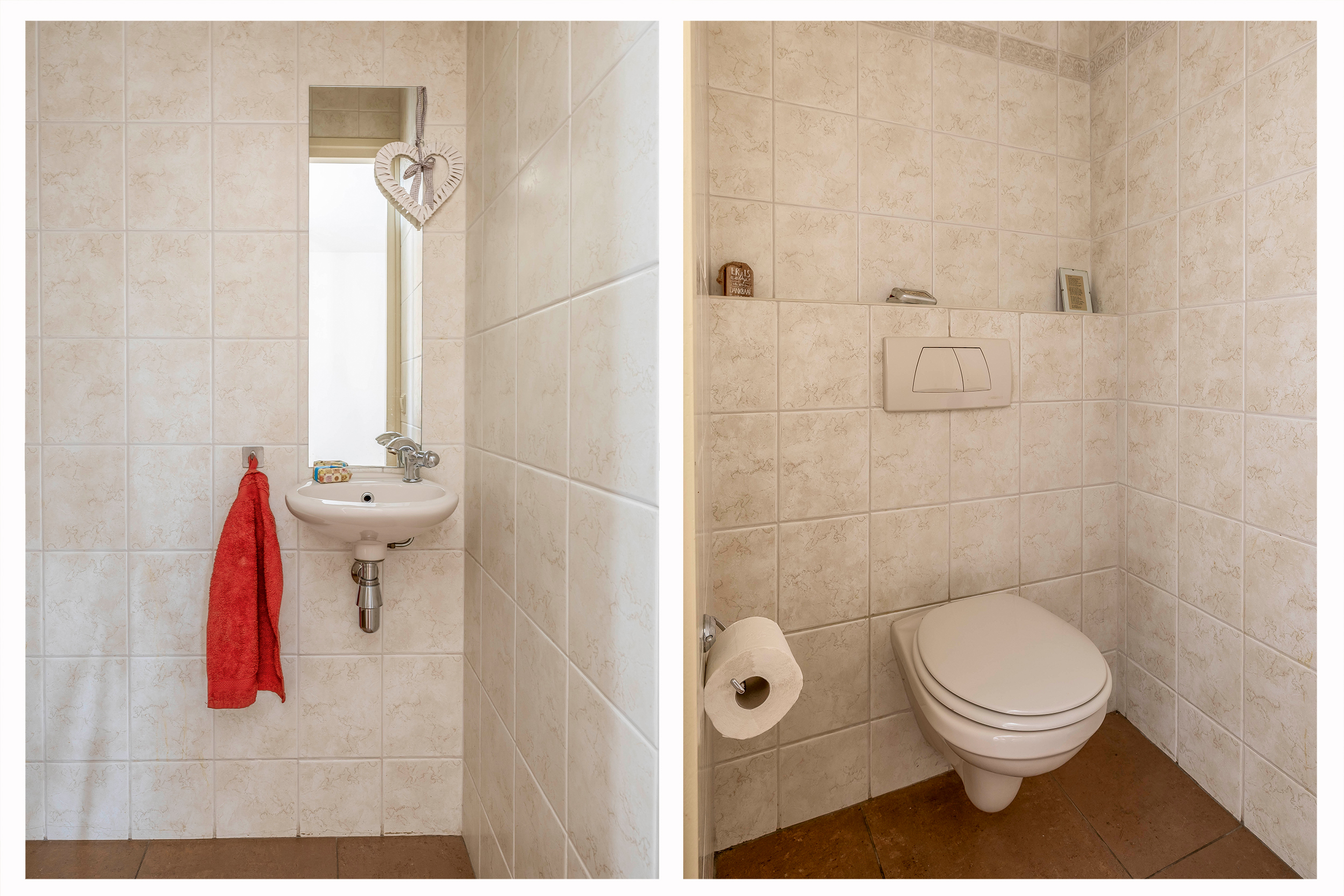 Eerste verdieping: De overloop biedt toegang tot drie ruime slaapkamers, de badkamer en een separaat toilet. De twee grootste slaapkamers beschikken over toegang tot een balkon aan zowel de voor- als achterzijde. De kamers zijn voorzien van een laminaatvloer en draai-/kiepramen. Twee slaapkamers beschikken over een bergkast en twee kamers zijn uitgerust met airconditioning. De volledig betegelde badkamer is afgewerkt met beige wandtegels en mozaïektegels. De ruimte is ingericht met een ligbad, een douche (beide voorzien van thermostaatkranen), een badkamermeubel met wastafel, een designradiator, vloerverwarming en een te openen raam voor natuurlijke ventilatie.