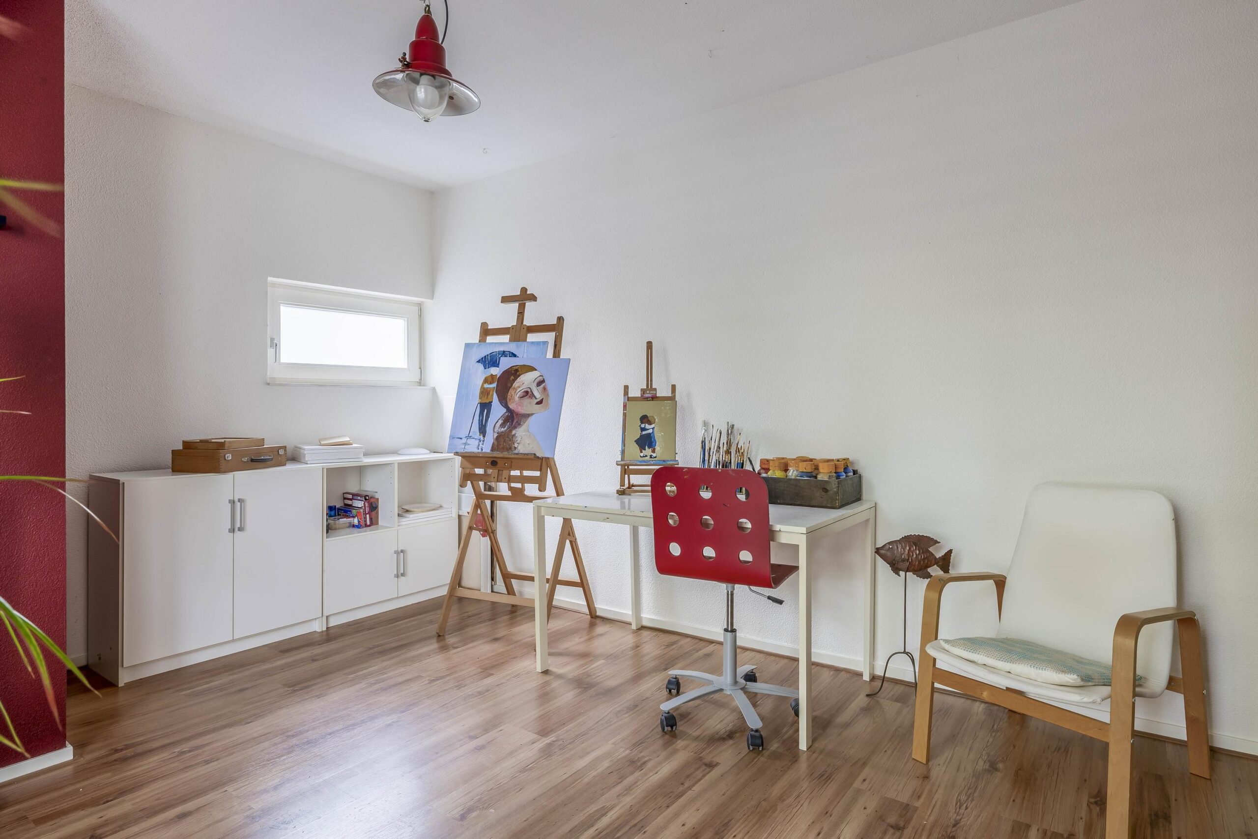 Tweede verdieping: Via een vaste trap bereikt u de tweede verdieping. In een aparte ruimte vindt u de pomp voor de vloerverwarming, witgoedaansluitingen en veel bergruimte. De ruime vierde slaapkamer is afgewerkt met stucwerk wanden en vloerbedekking en biedt via een schuifpui toegang tot een groot balkon.