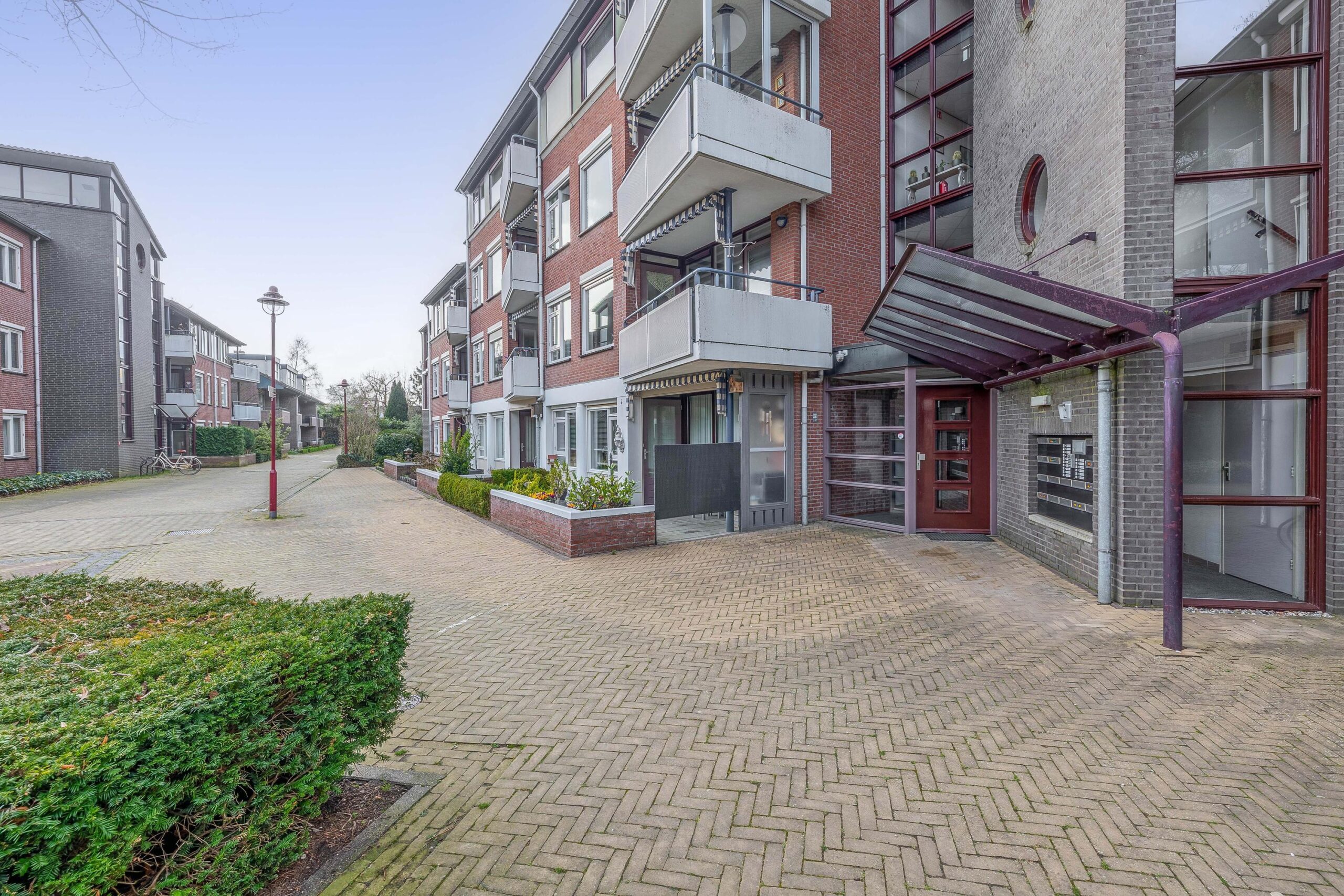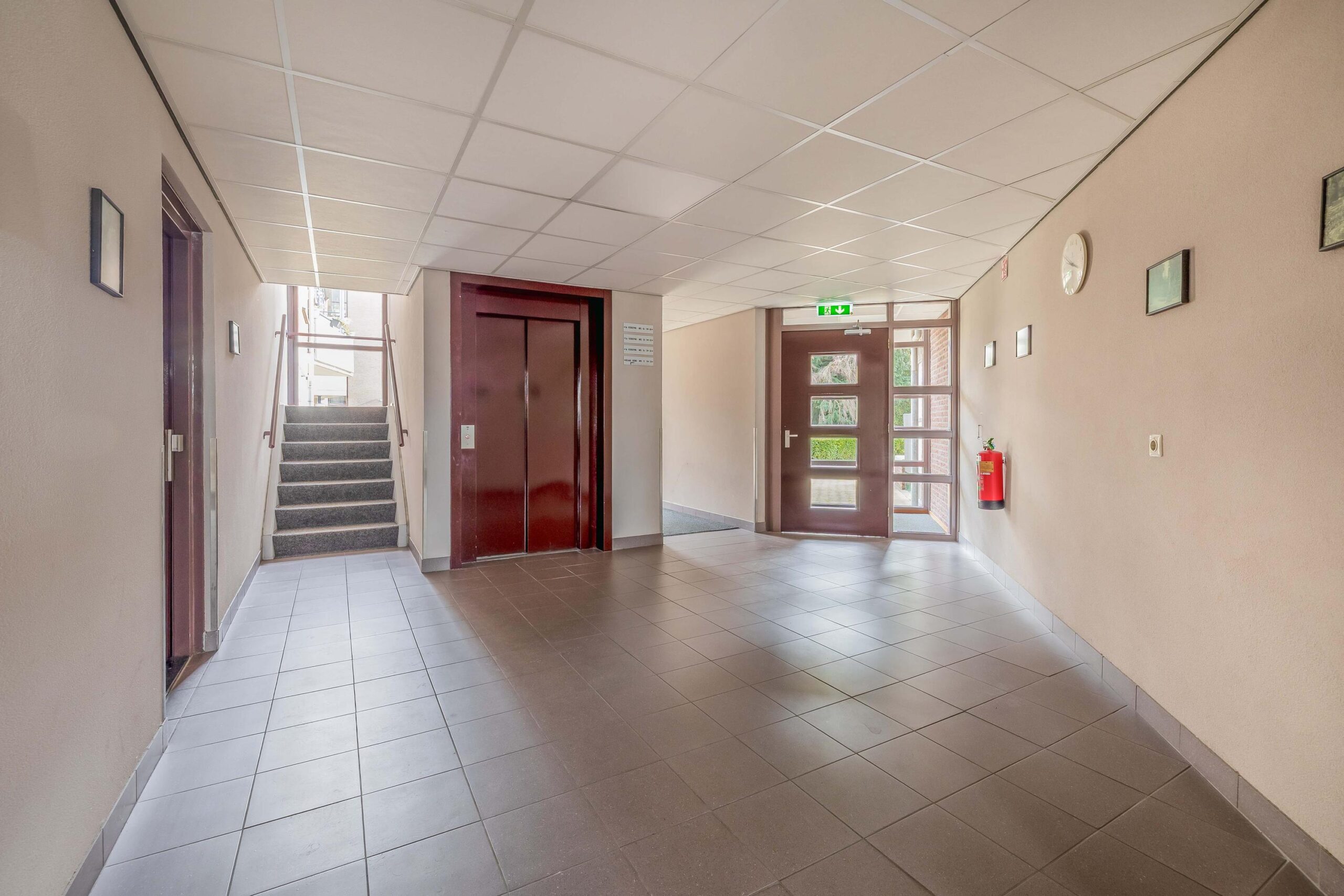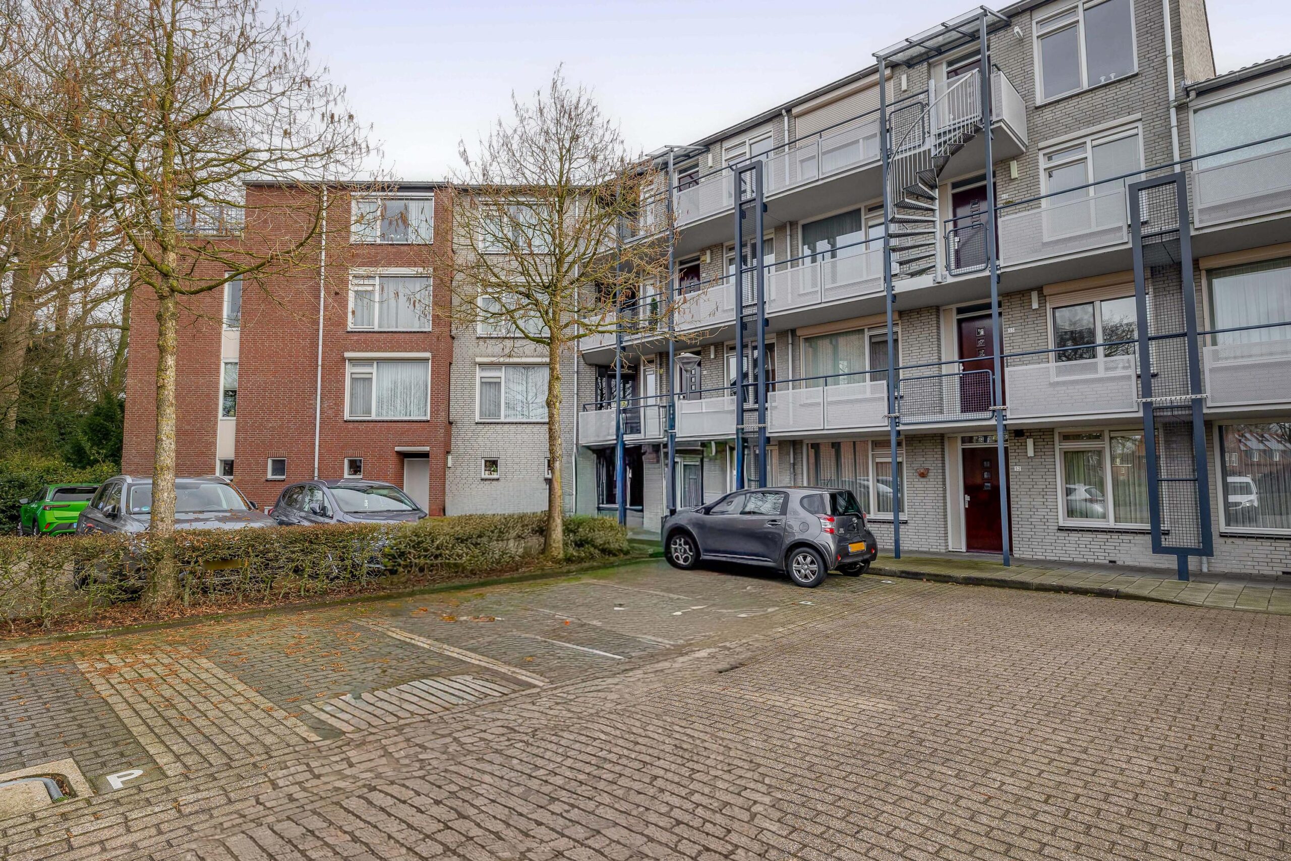 In de centrale hal bevinden zich de brievenbussen, video-intercominstallatie en een trapopgang en lift naar de verdiepingen. Elk appartement beschikt over een eigen berging op de begane grond. Achter het appartementencomplex is een algemene parkeerplaats waar de auto geparkeerd kan worden.