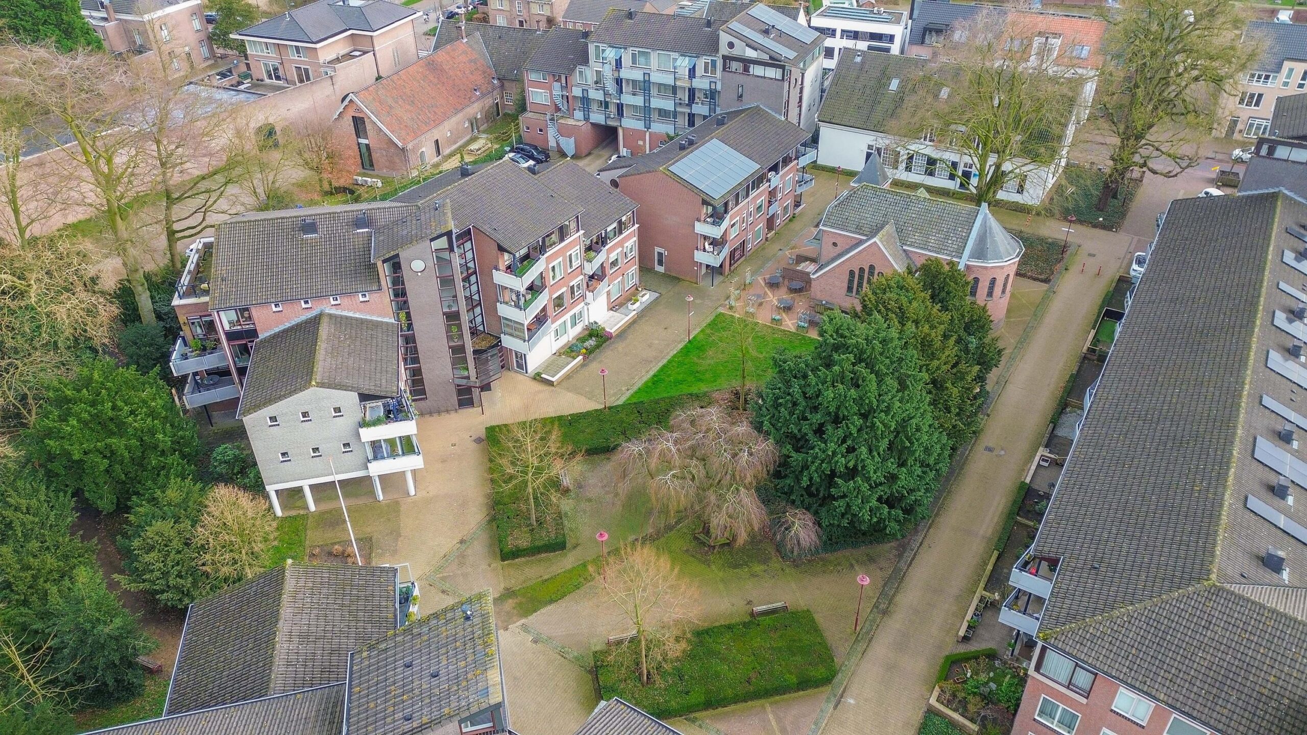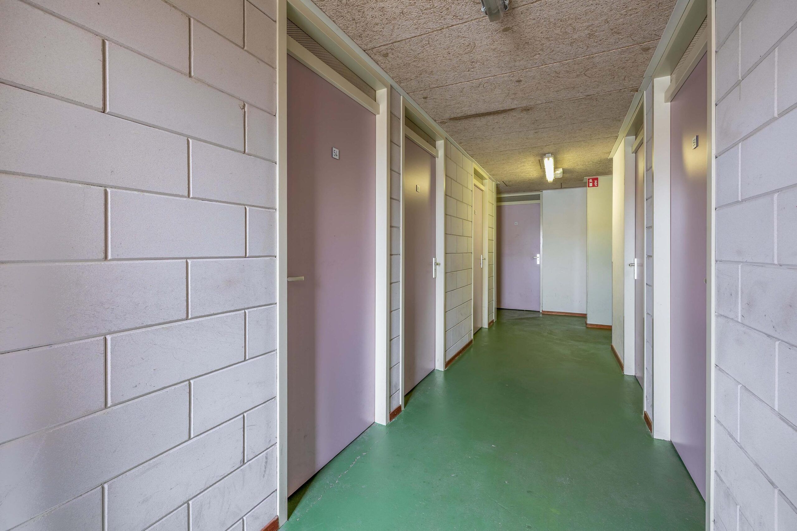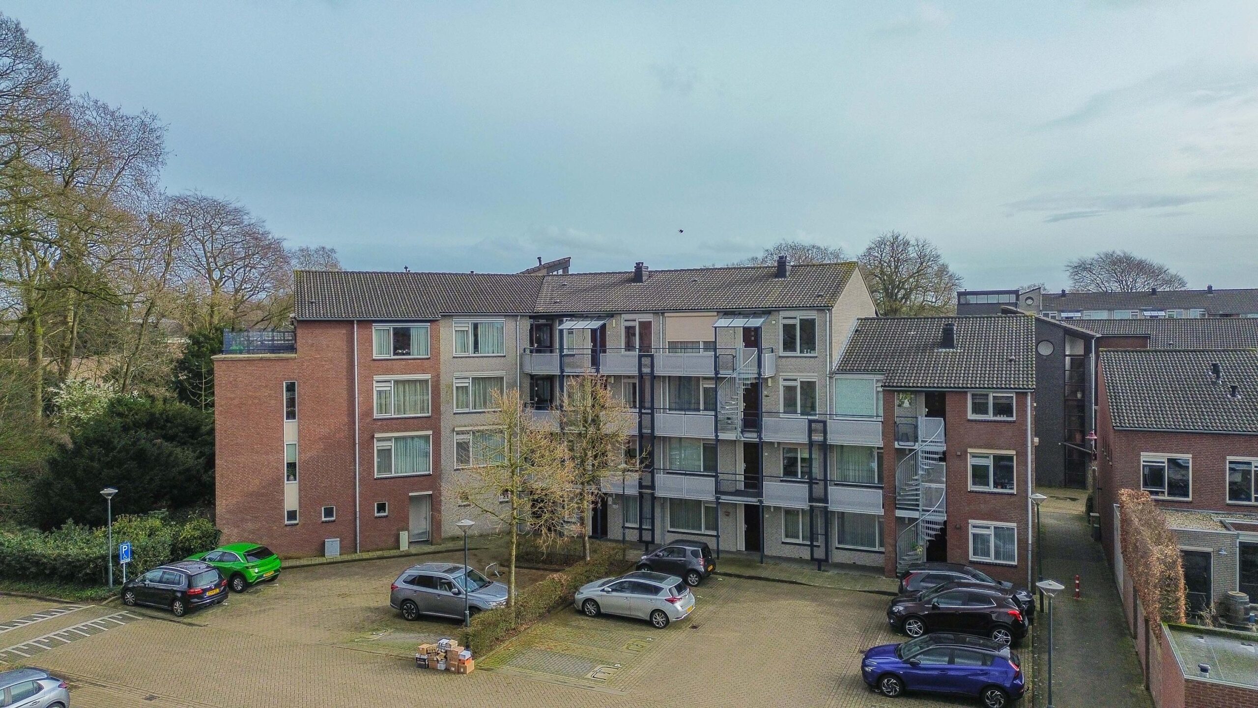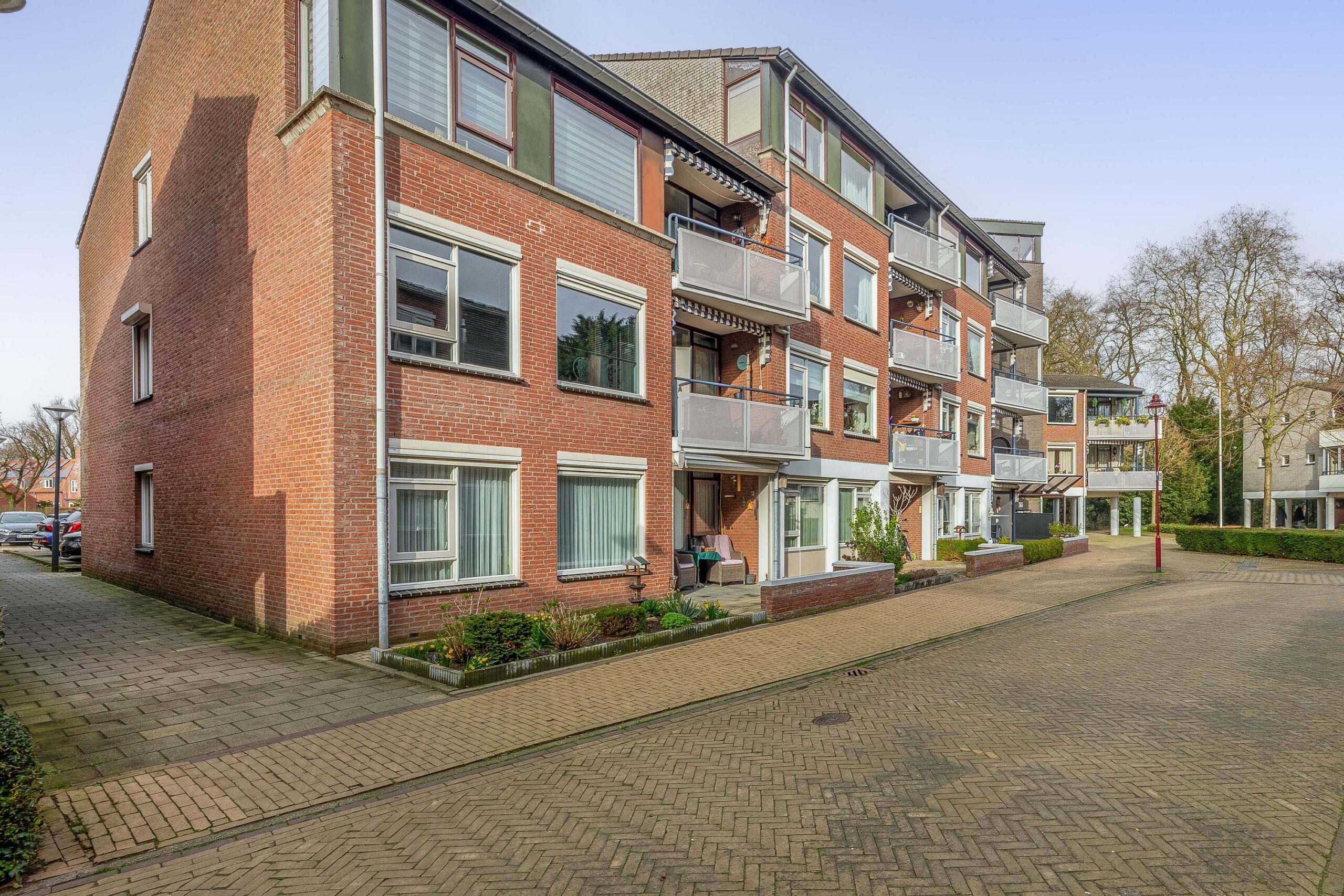 In de centrale hal bevinden zich de brievenbussen, video-intercominstallatie en een trapopgang en lift naar de verdiepingen. Elk appartement beschikt over een eigen berging op de begane grond. Achter het appartementencomplex is een algemene parkeerplaats waar de auto geparkeerd kan worden.