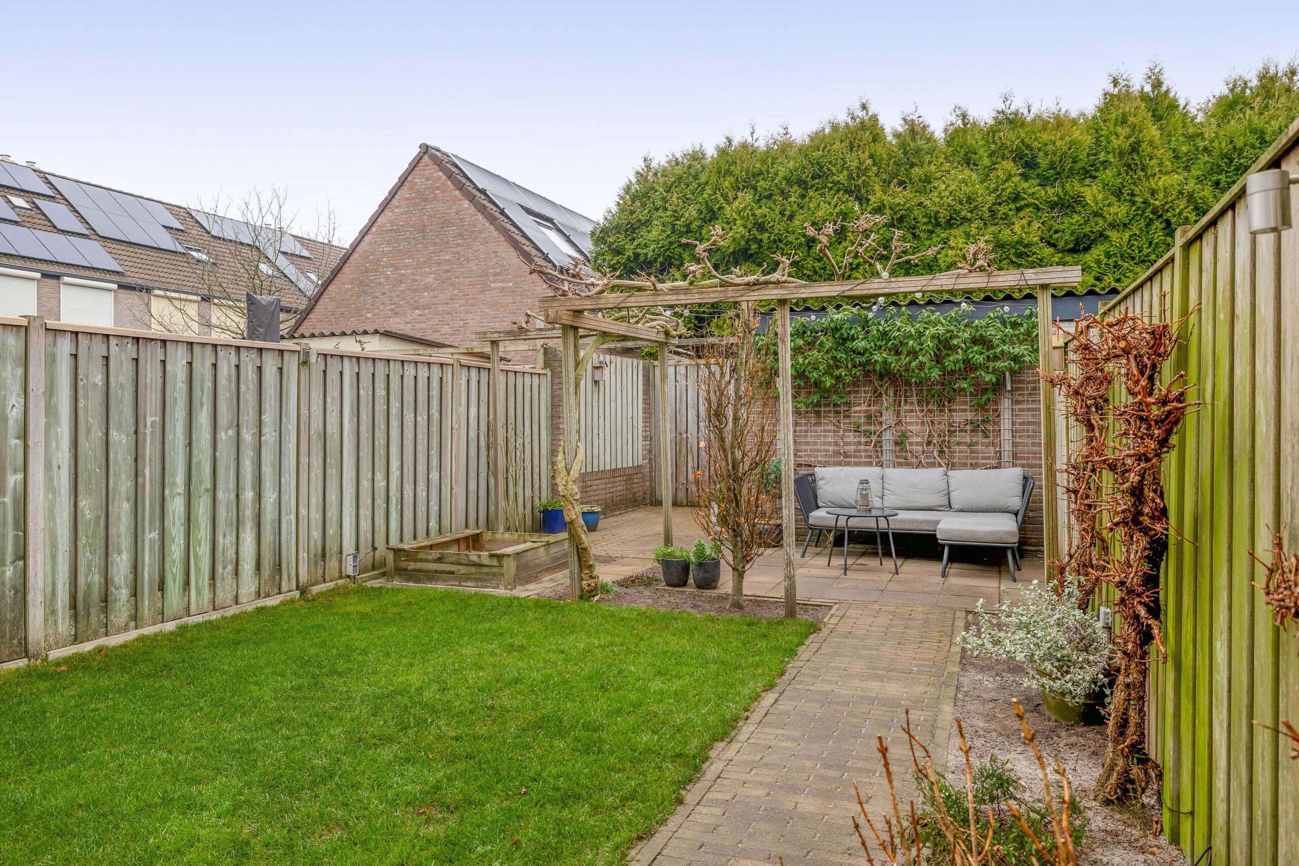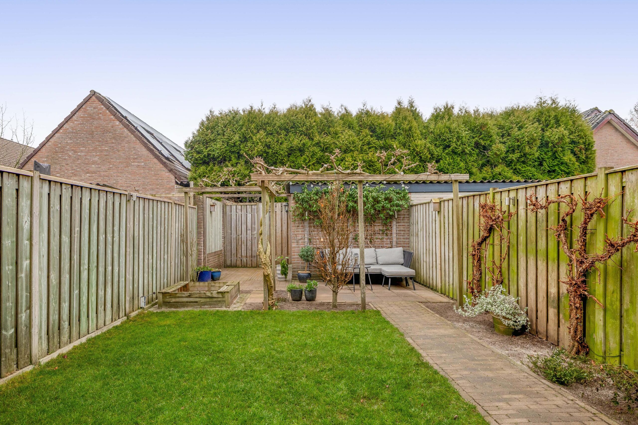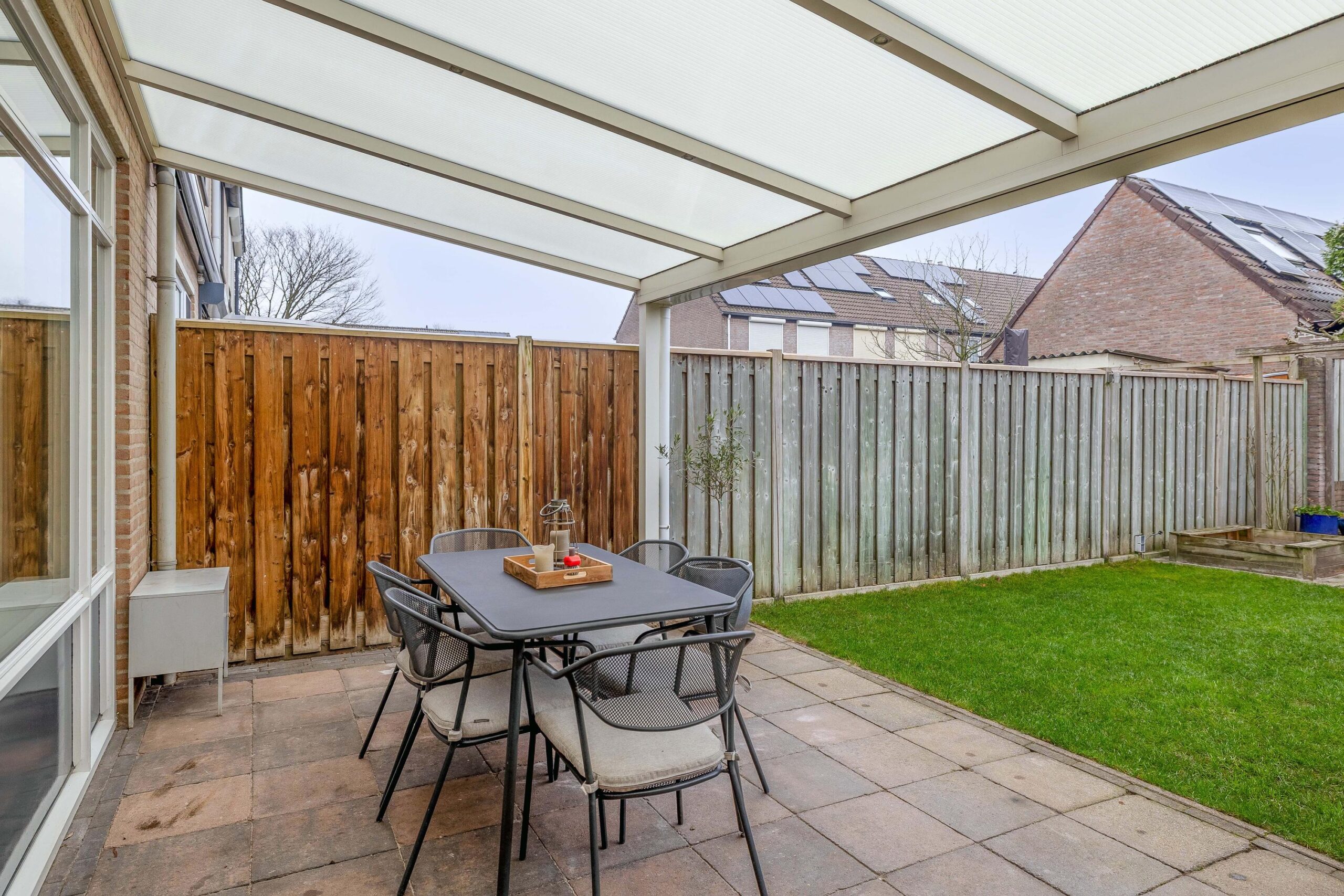 * Achtertuin met achterom en overkapping