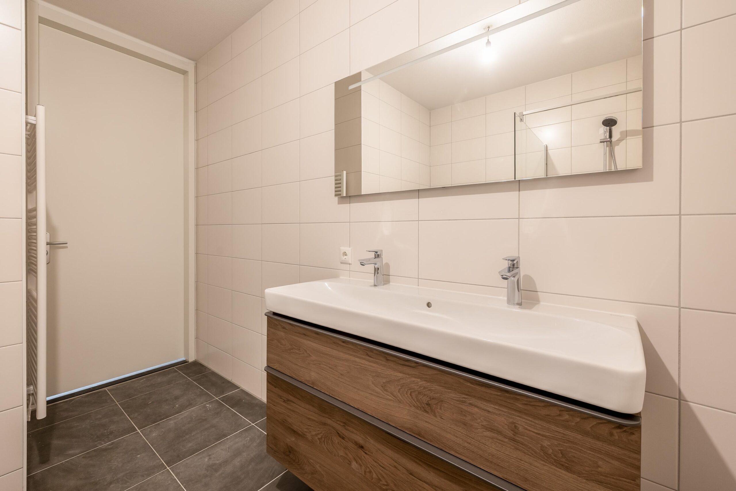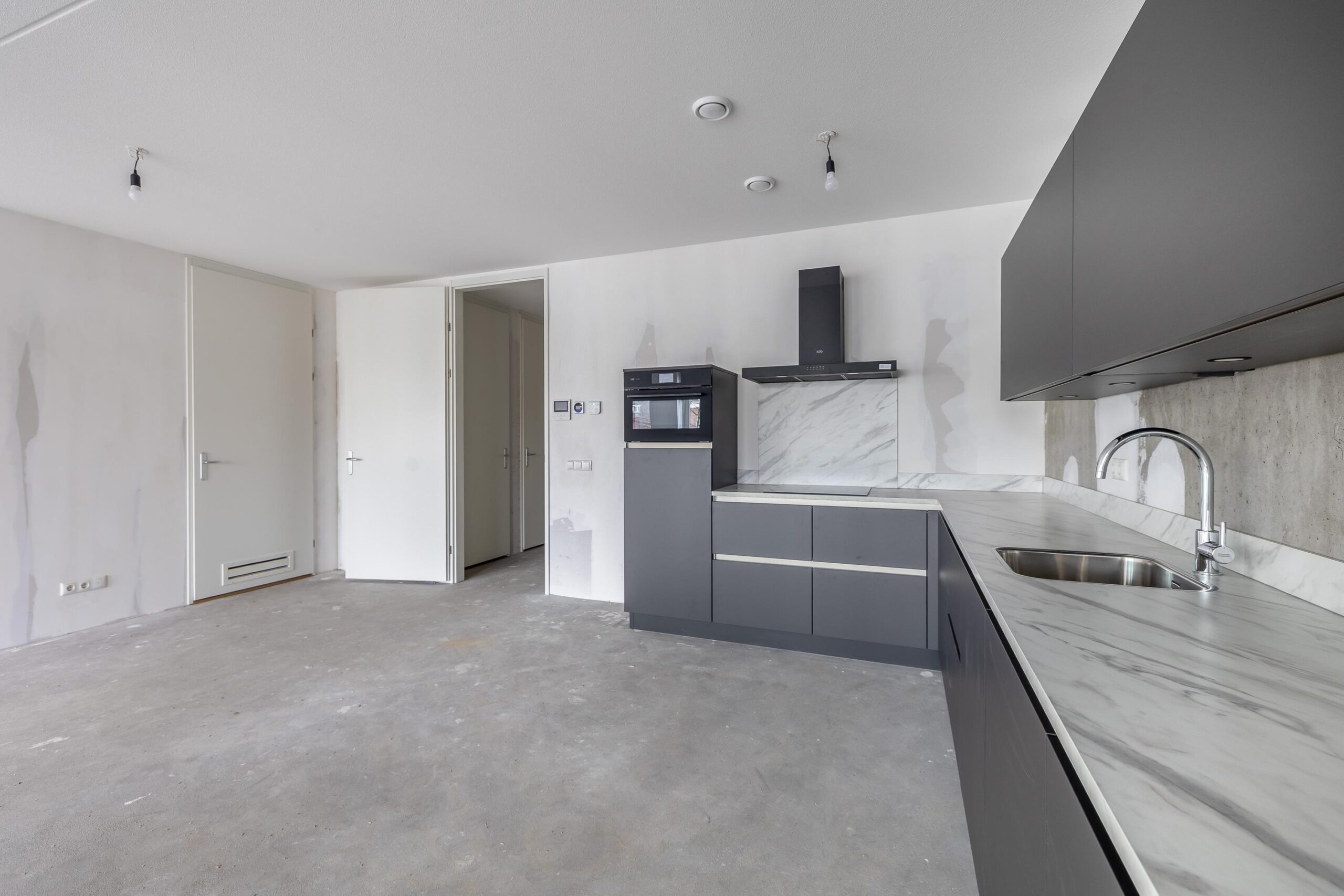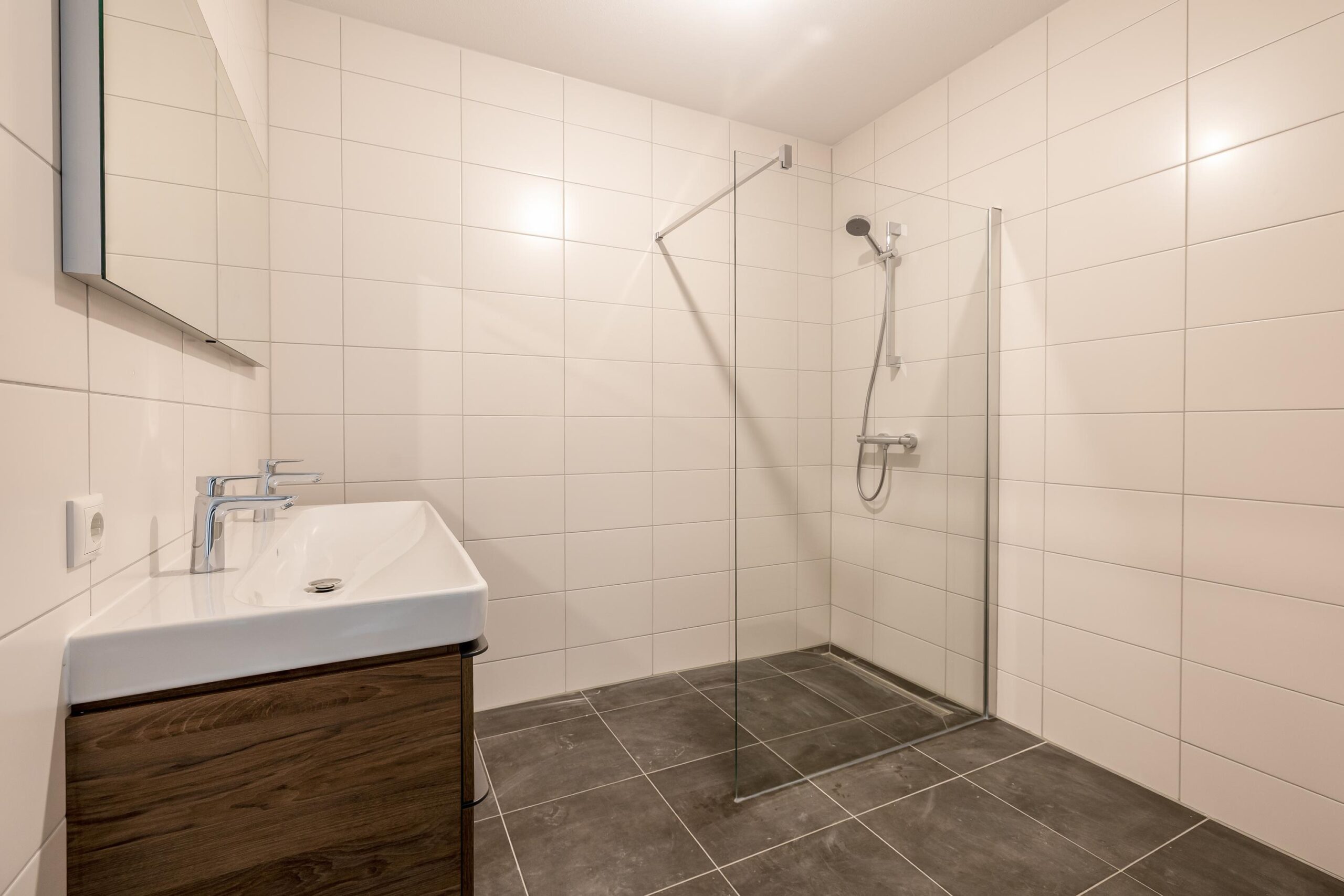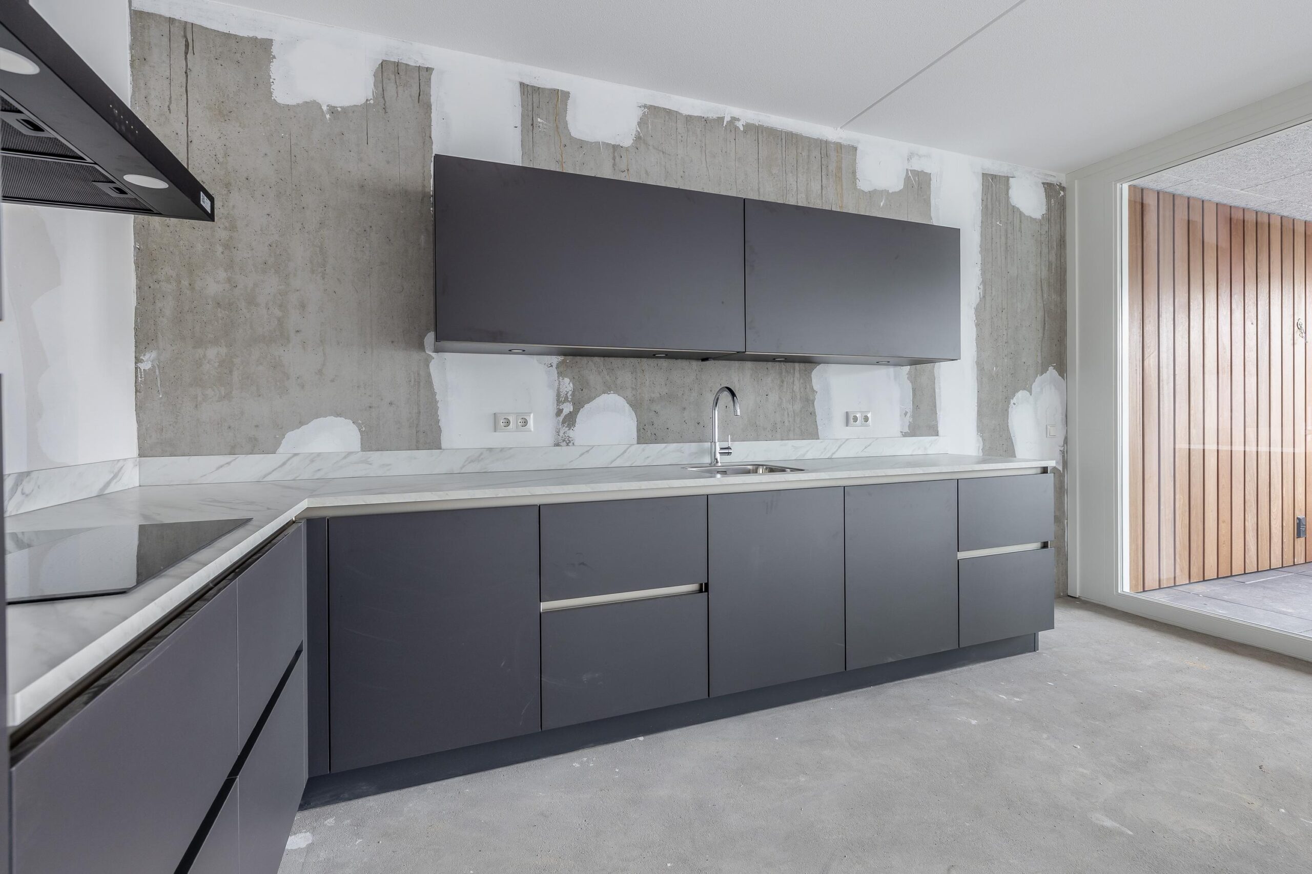 Je stapt binnen in de hal met toegang tot de leefruimte, de slaapkamer, de badkamer en de toiletruimte. De leefruimte is fraai vormgegeven in een Z-vorm met aan de achterzijde de woonkamer. Vanuit de woonkamer heb je een leuk uitzicht op de levendige Markt en het centrum van Veghel. De keuken is uitgevoerd in hoekopstelling met zwarte boven- en onderkasten, een licht werkblad en diverse inbouwapparatuur: een inductiekookplaat, een afzuigkap, een combi-oven/magnetron, een koelkast en een vaatwasser. Vanuit de leefruimte is er toegang tot een grote loggia van 12 m². Een heerlijke plek om buiten te zitten. De badkamer is geheel betegeld en uitgerust met sanitair van Villeroy & Boch en kranen van Hansgrohe. Je beschikt hier over een badkamermeubel met wastafel, een spiegel, een inloopdouche, een radiator en mechanische ventilatie. De slaapkamer is zeer riant en biedt ruimte voor een groot tweepersoonsbed en een grote kast. Het gehele appartement is voorzien van vloerverwarming, thermisch isolerende beglazing en hoogwaardige muur- dak- en vloerisolatie. In de technische ruimte staat de lucht warmtepomp opgesteld, de warmte terugwin installatie en vind je de aansluitingen voor de wasmachine en droger.