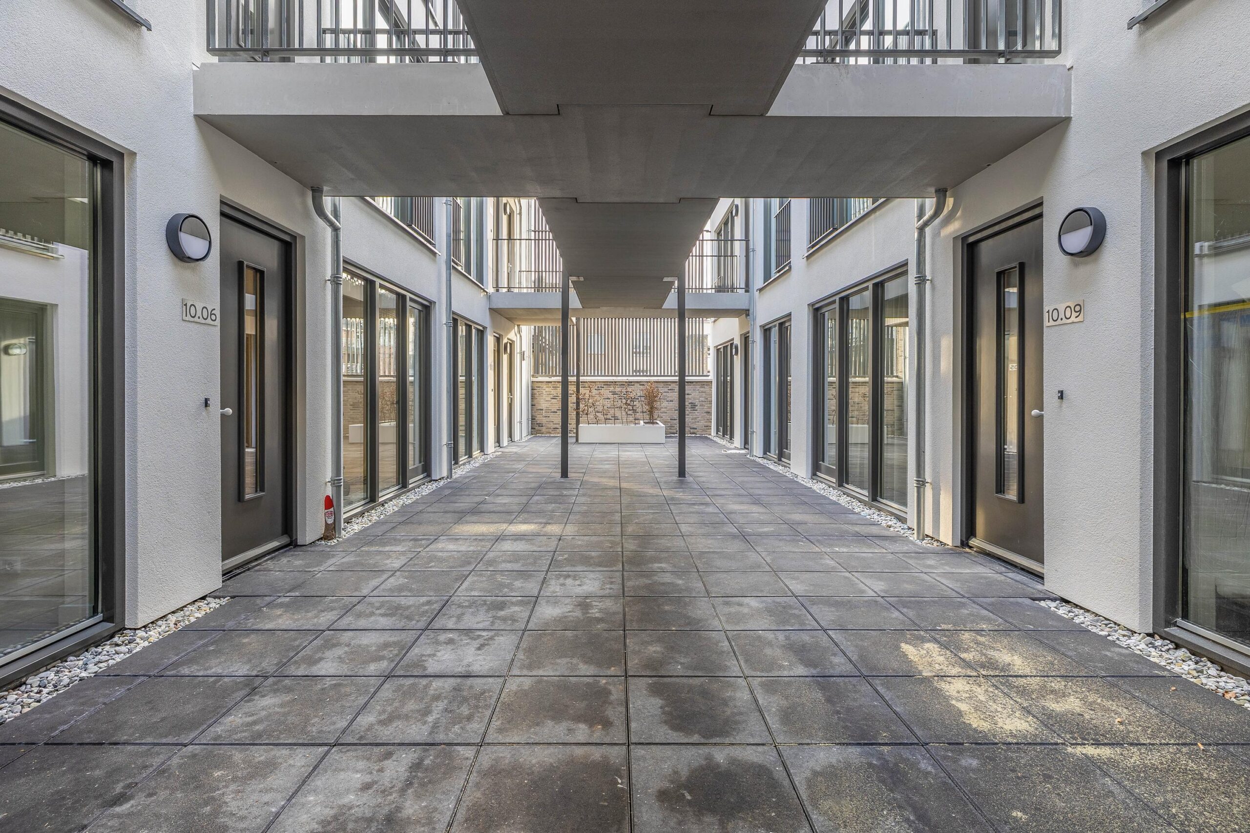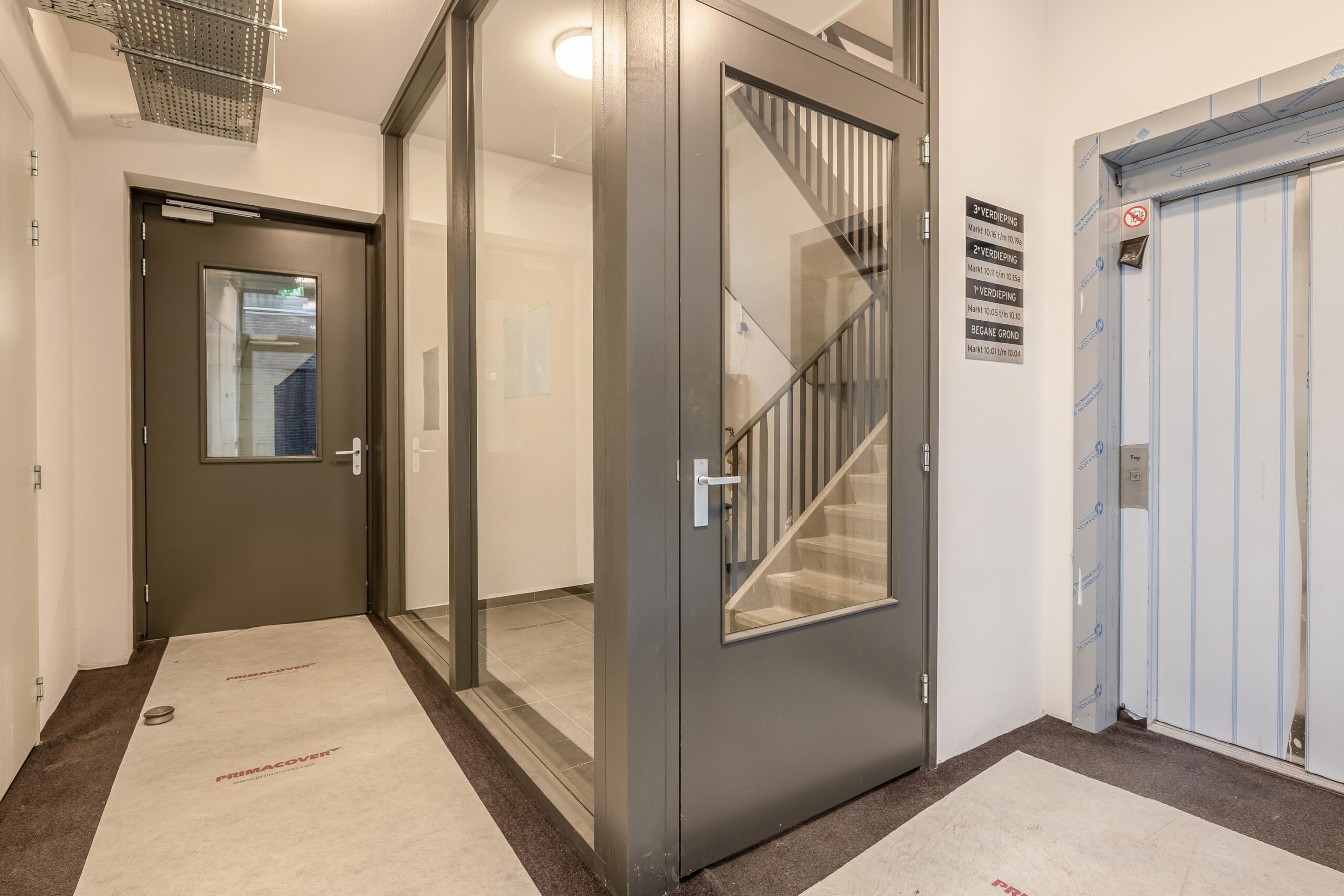 Je komt binnen via de centrale entree met brievenbussen en het bellentableau met videofoon. In de centrale hal vind je zowel de trap als de lift naar het appartement. Op de begane grond beschik je tevens over een eigen parkeerplaats en een eigen berging van 5 m².