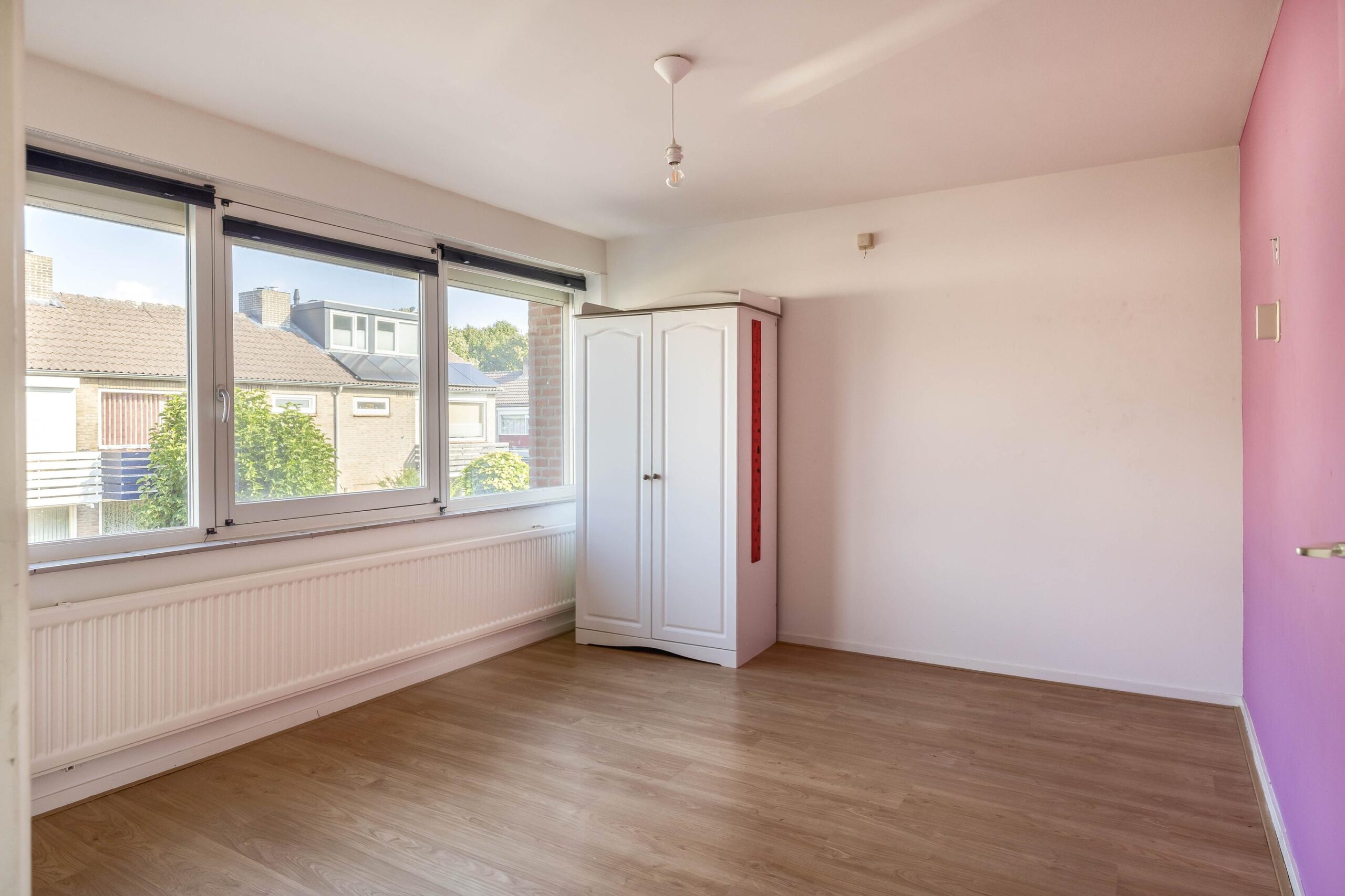 Tweede verdieping: De vaste trap brengt je naar de tweede verdieping. Hier bevindt zich een, dankzij een dakkapel, een ruime vierde slaapkamer. Op de voorzolder staat de cv-installatie opgesteld (Nefit, 2005) en de omvormer voor de 10 zonnepanelen.
